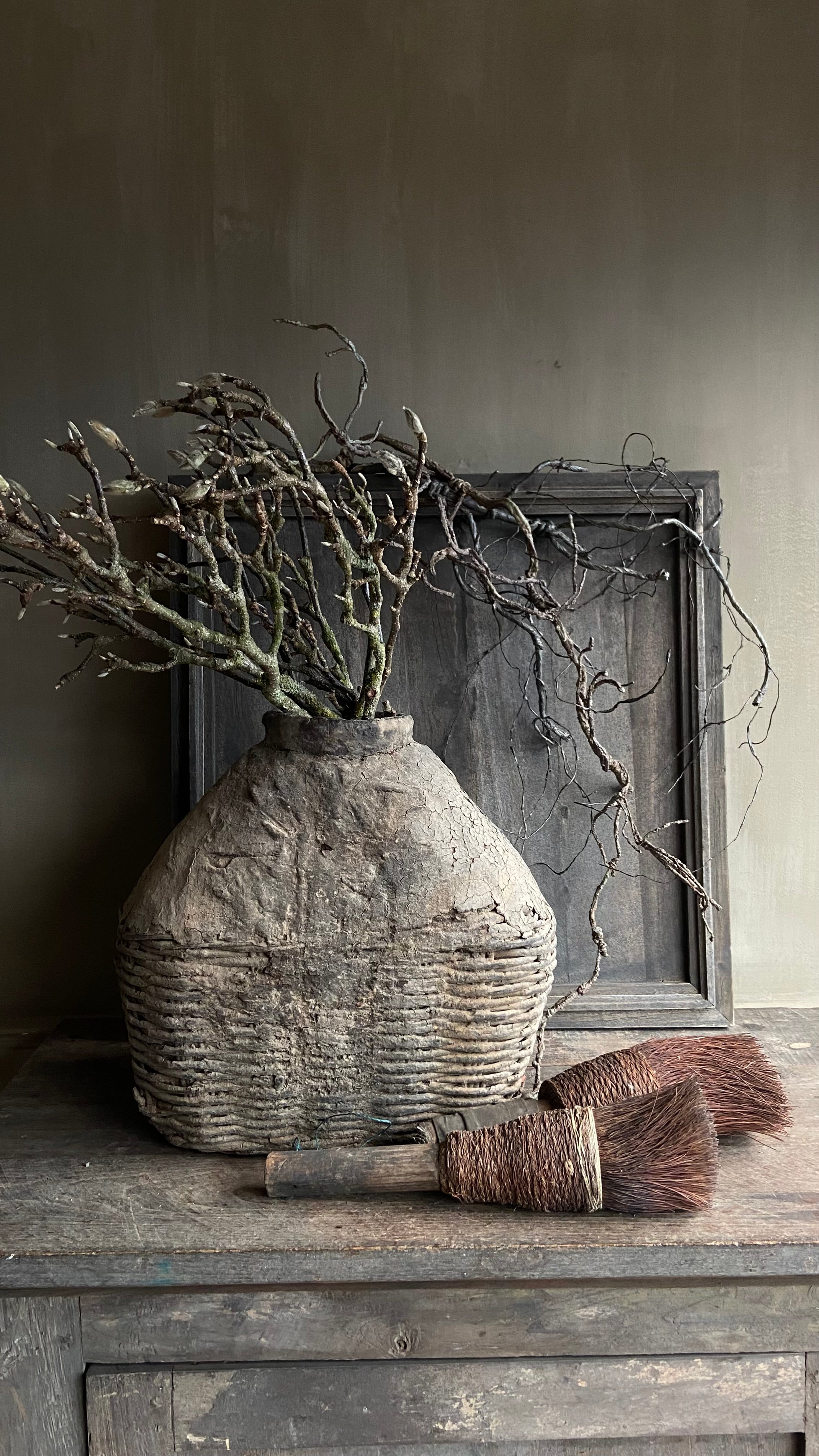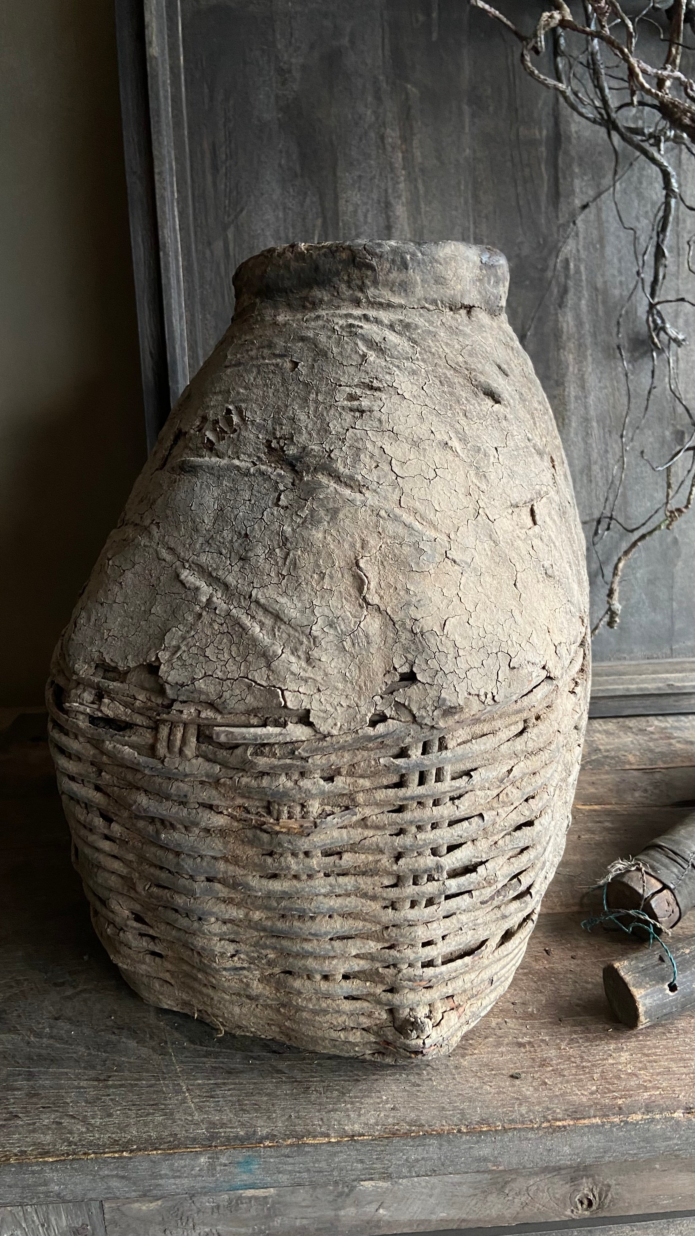 Deze oude leemmand komt uit China en werd jarenlang gebruikt om oogst en voedsel in te bewaren. De mand is met de hand gemaakt van natuurlijke materialen en heeft een prachtige, doorleefde uitstraling. Geen enkele mand is precies hetzelfde, waardoor je altijd een uniek exemplaar in huis haalt.