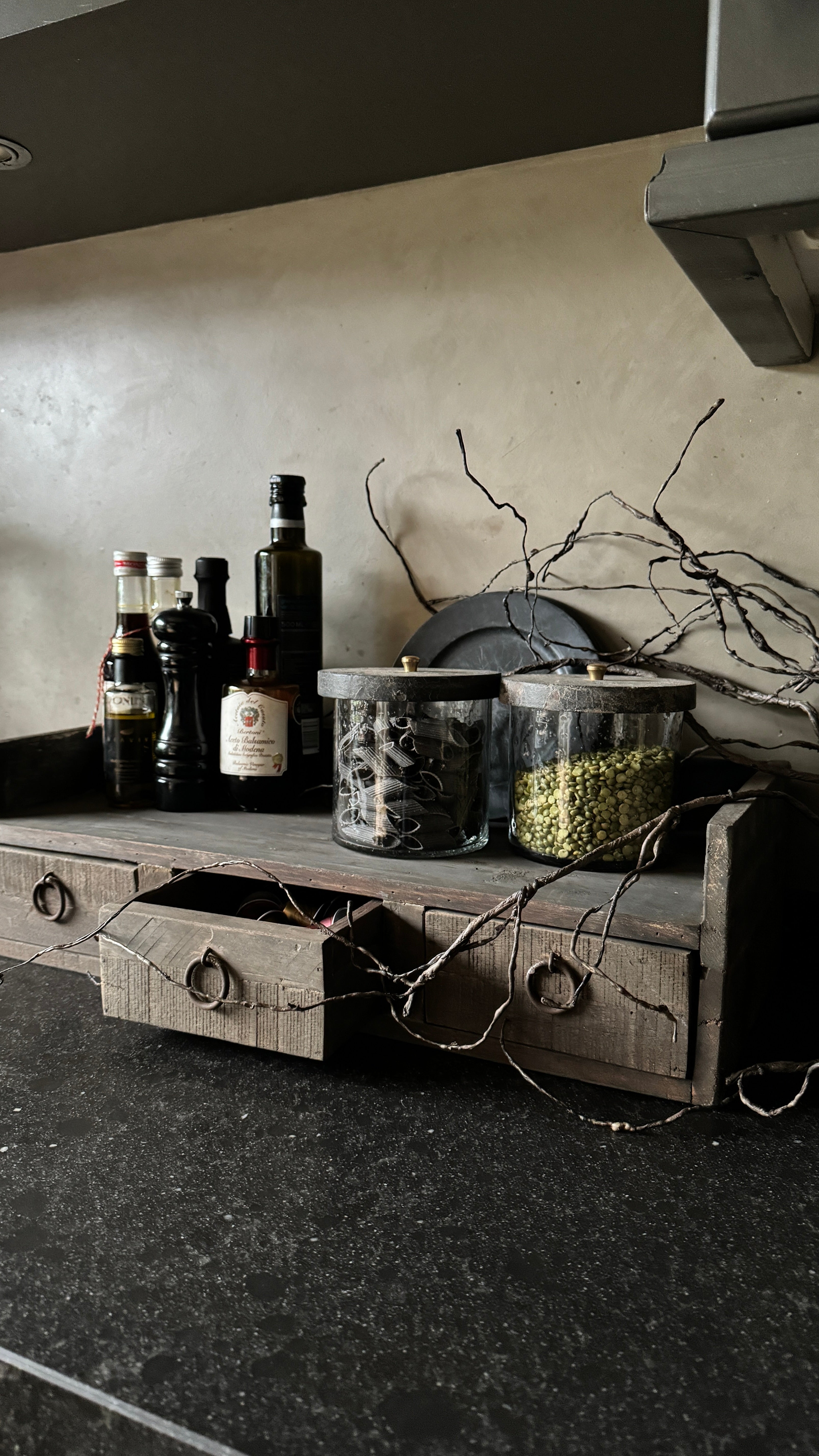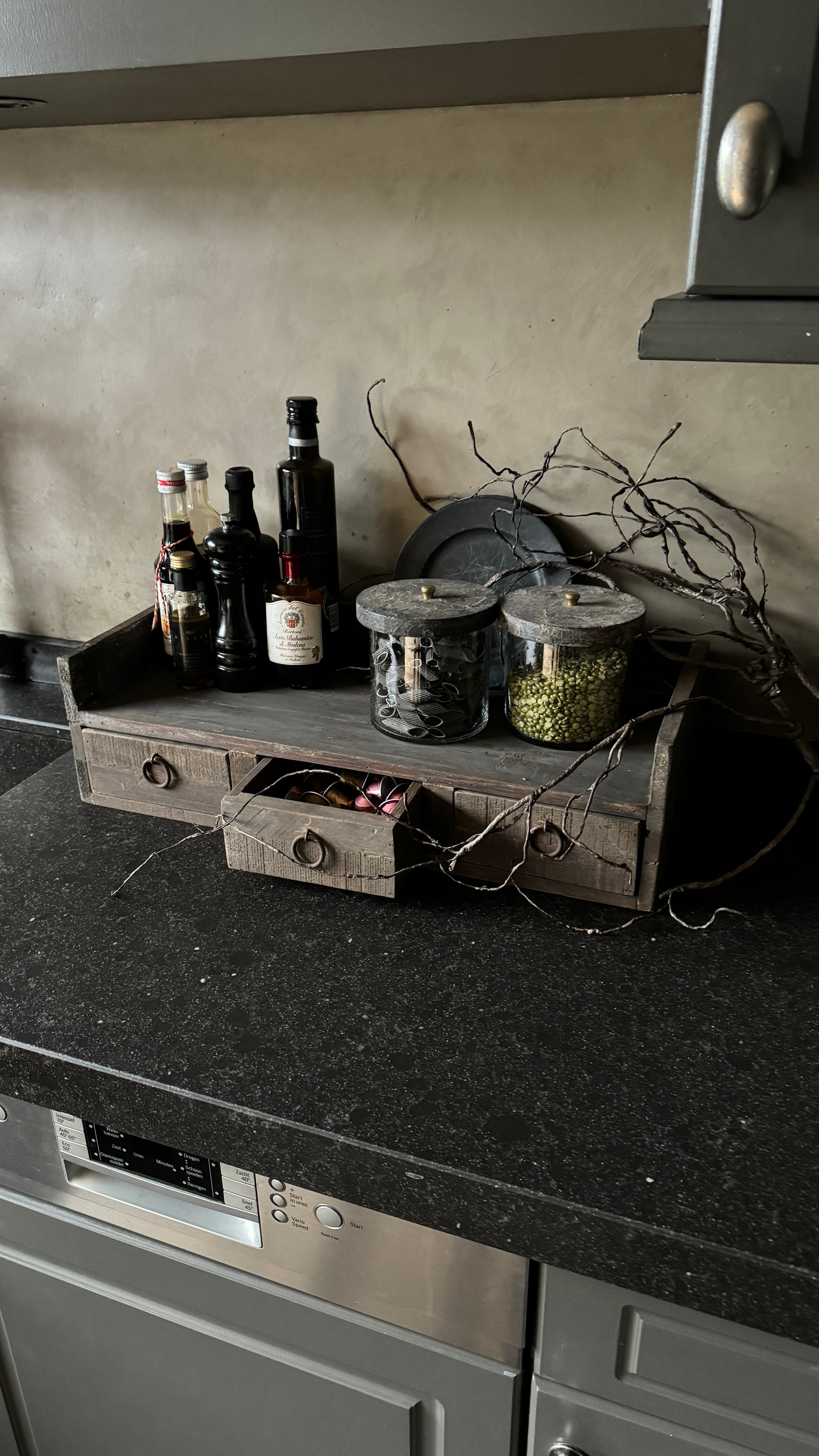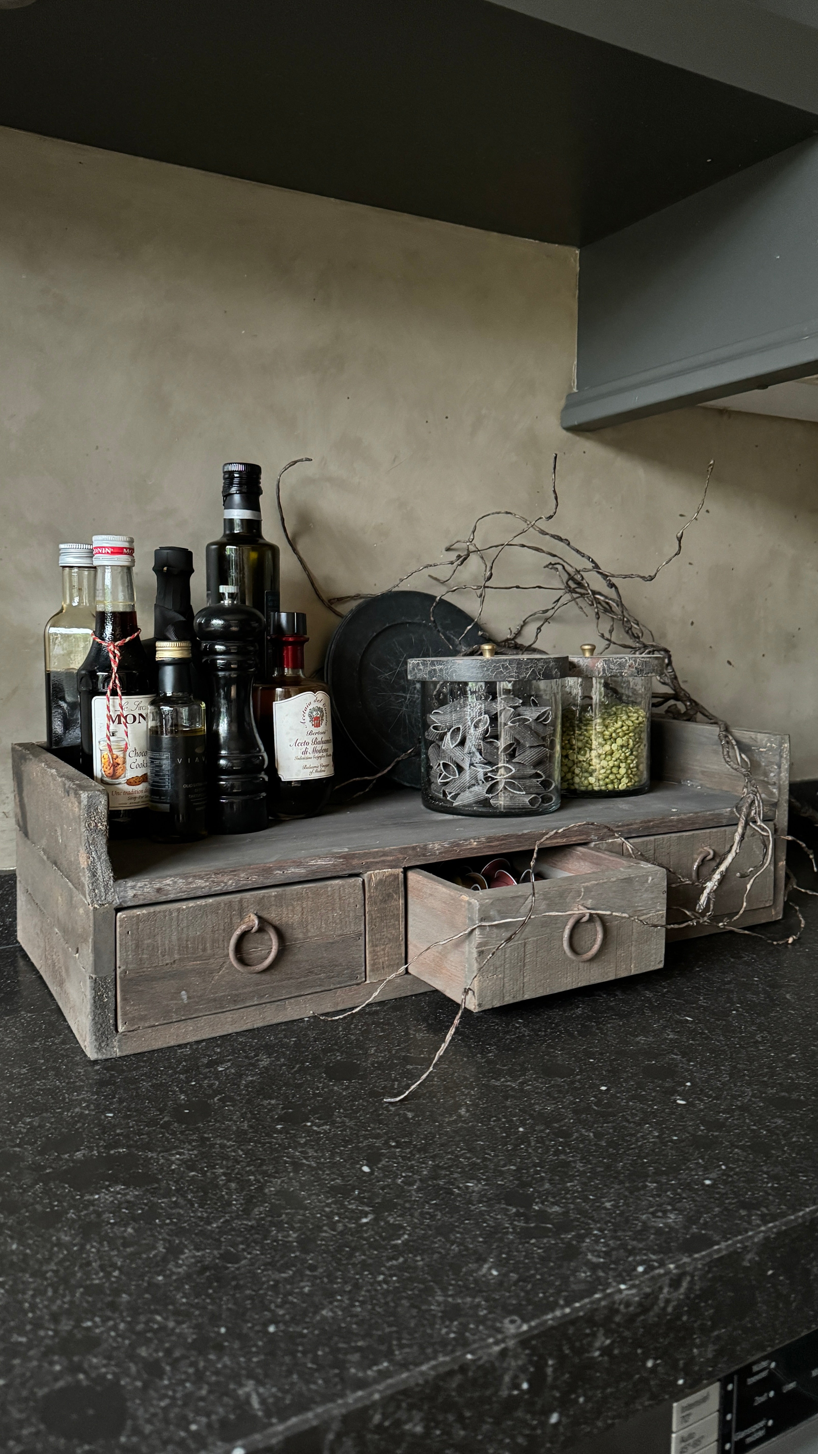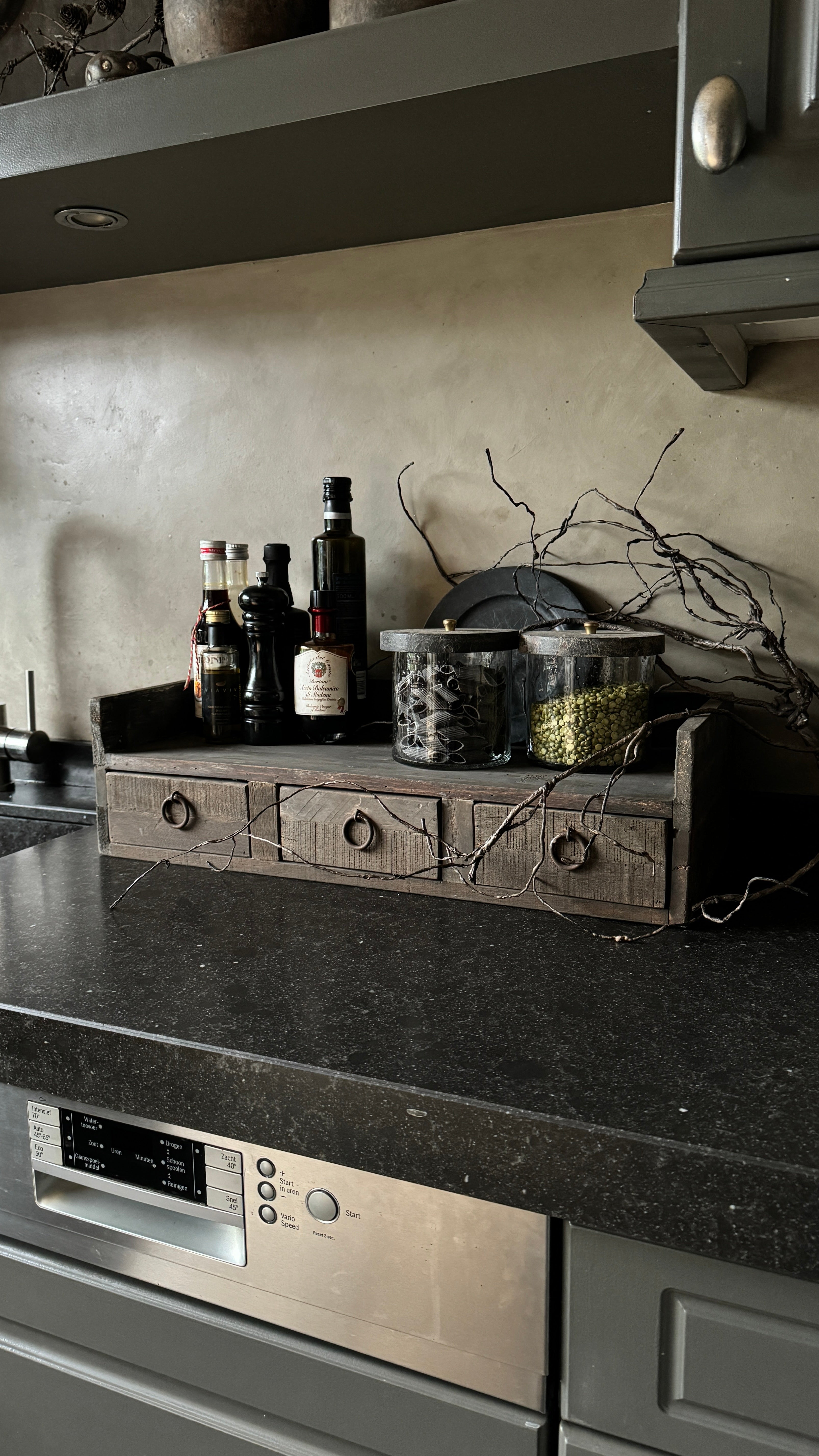 - In lades is voldoende ruimte voor kleine kruidens of oliën, ook kunnen deze op de bak gedecoreerd worden