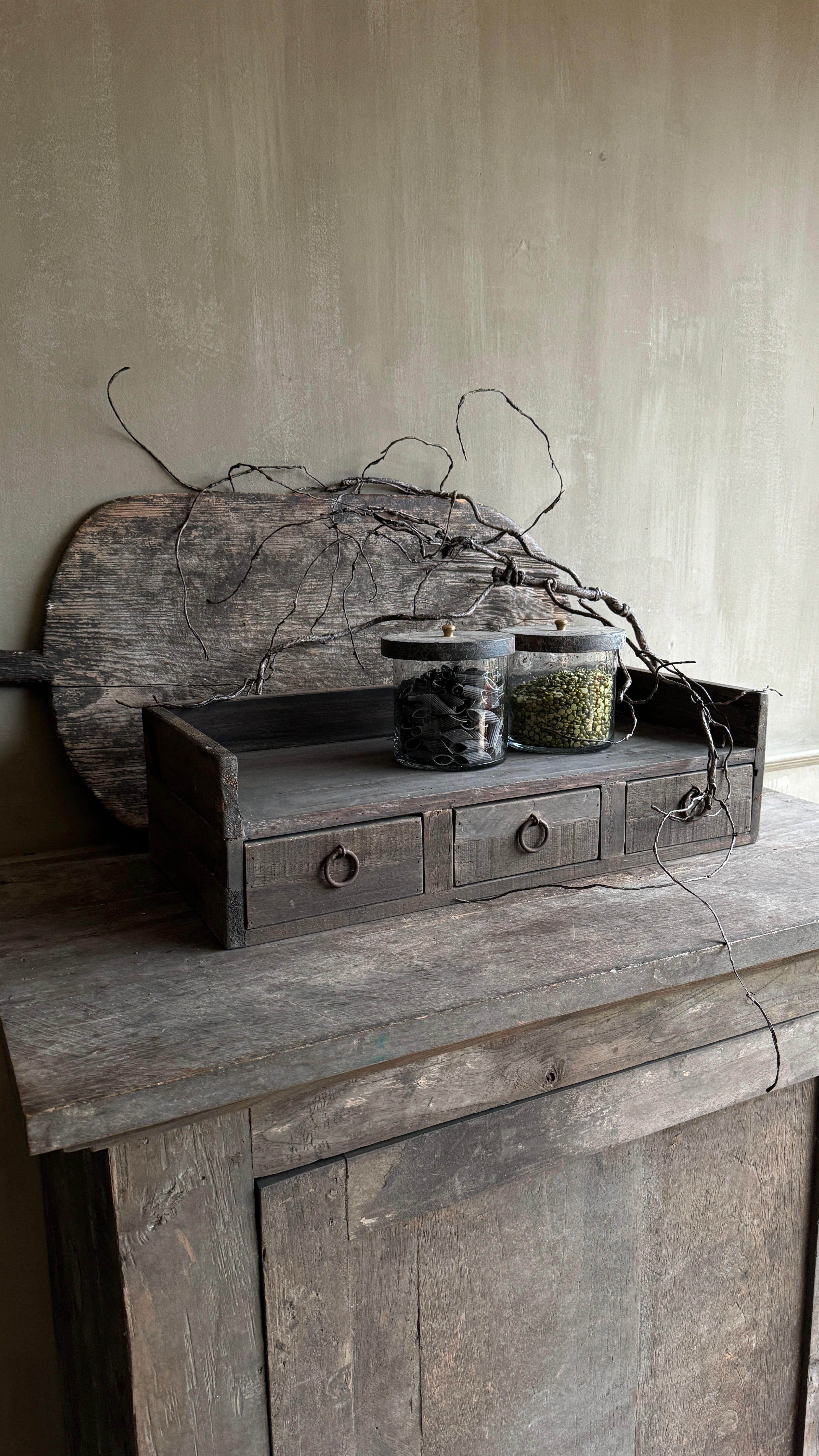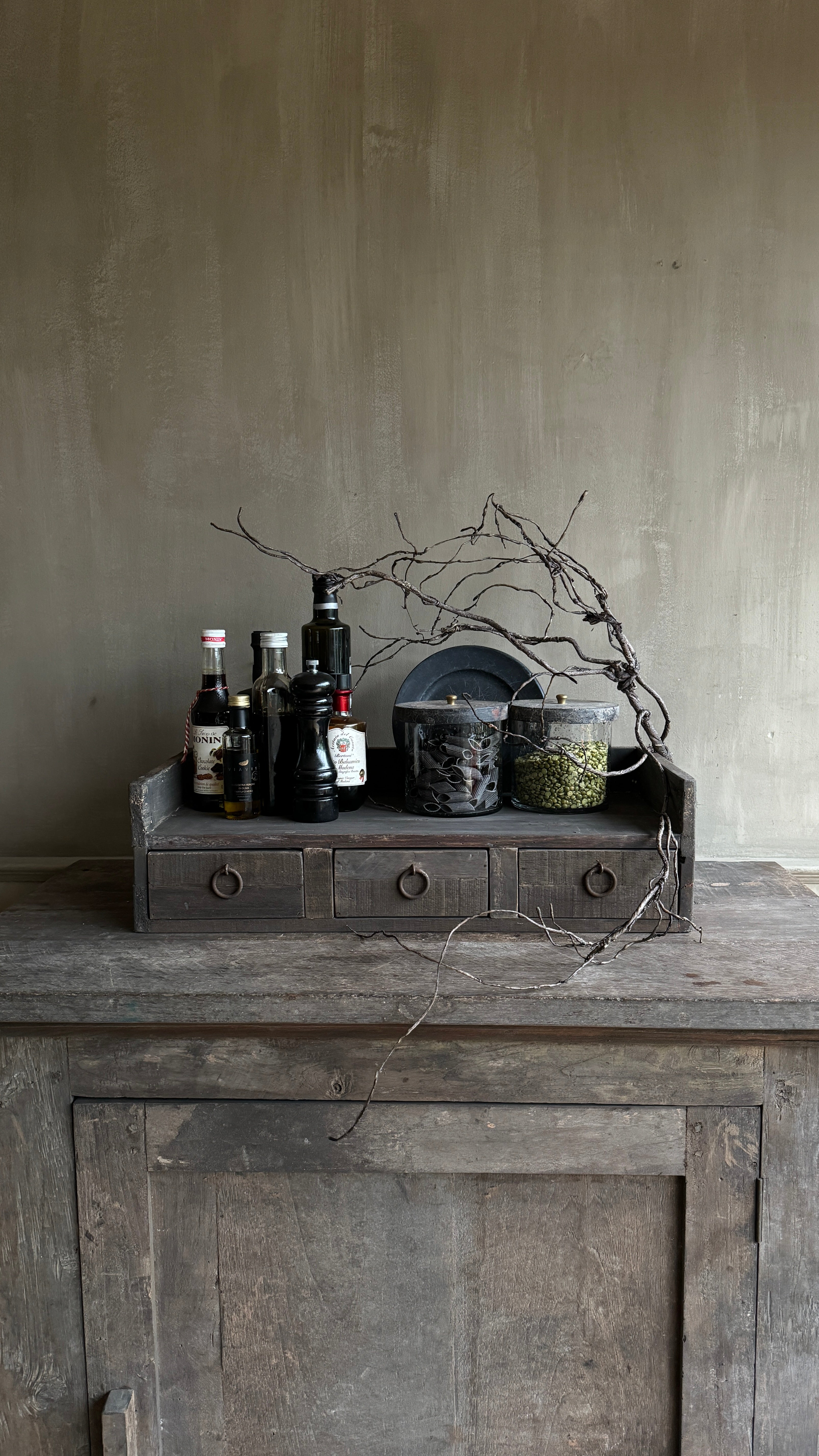 - Deze lage Gruttersbak met 3 lades is gemaakt van hout in de mooie old Barn look