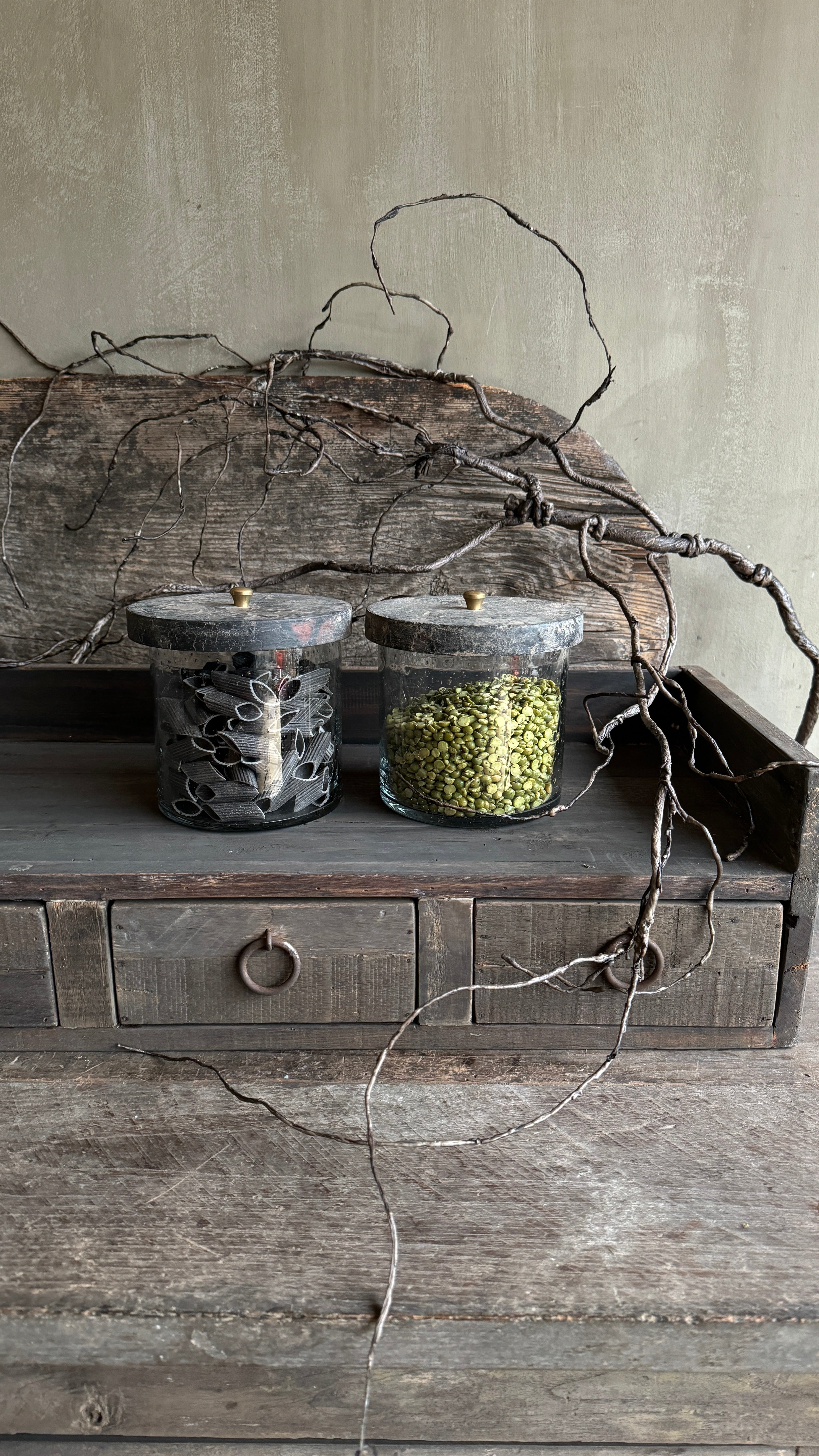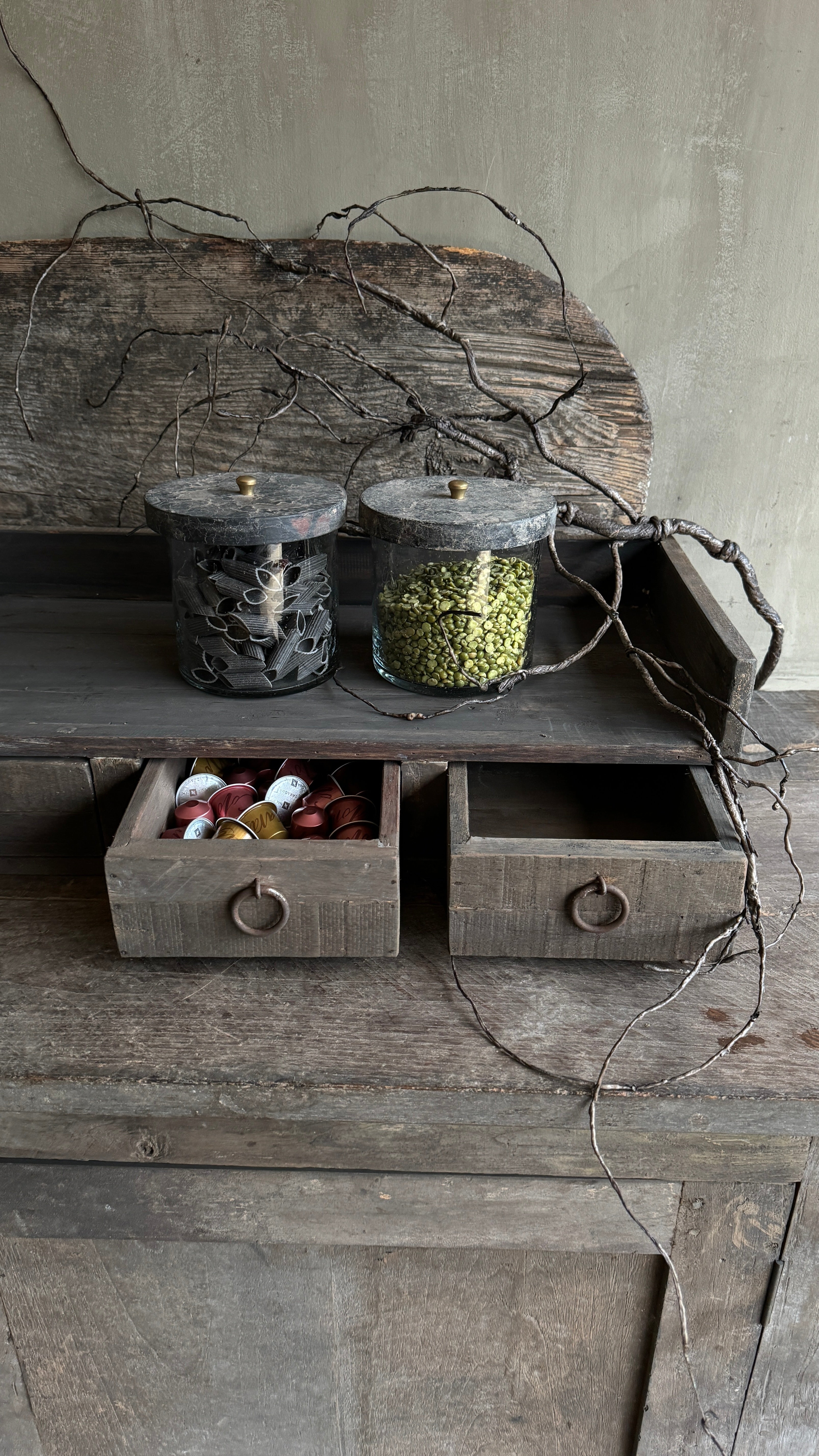 - De bak beschikt over drie lades met daaraan een ijzeren verweerde ring