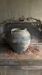 Deze oude Chinese kruik met oor heeft een robuuste uitstraling en past perfect in een sober of landelijk interieur. De verweerde afwerking maakt iedere kruik uniek.
