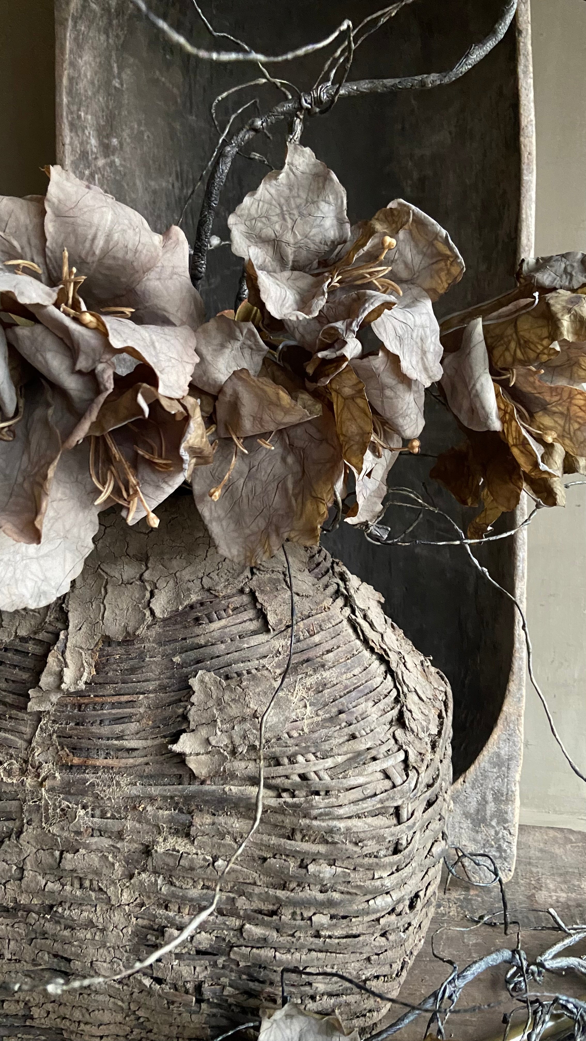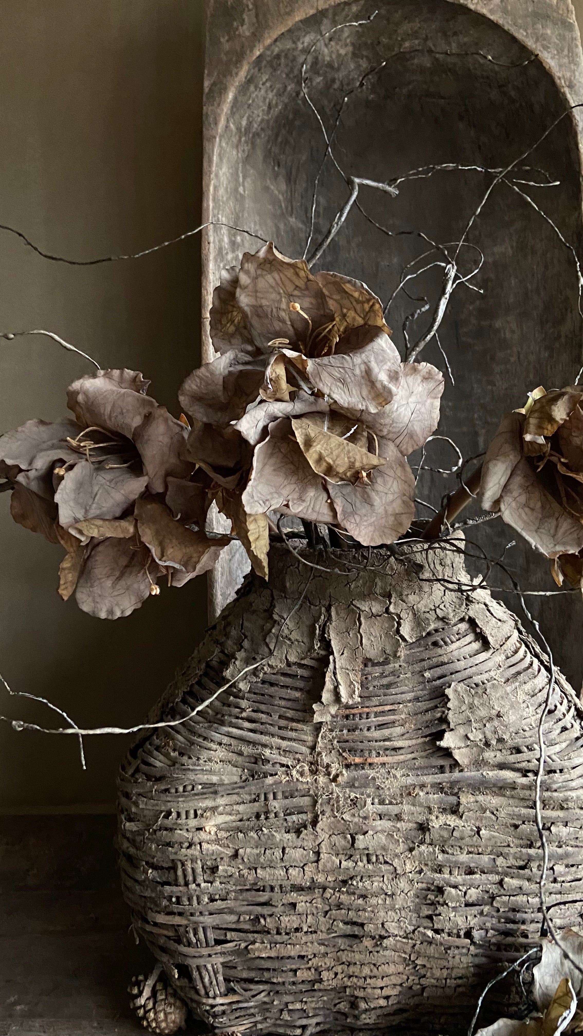 Deze kunstbloem heeft een stoere, natuurlijke uitstraling die in elk interieur tot zijn recht komt. De zachte, vergrijsde tinten geven een warme en rustige sfeer, terwijl de bloem bijna niet van echt te onderscheiden is.