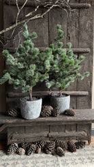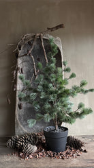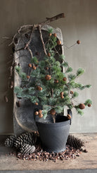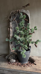 Deze kunstboom heeft de uitstraling van een echte larix, met volle naaldtakken in een natuurlijke groene tint. Hij staat stevig in een zwarte pot, maar is ook verkrijgbaar met een stoere rubberen pot met hengsels of een robuuste stenen pot — zo kies je zelf de combinatie die het beste bij jouw stijl past.