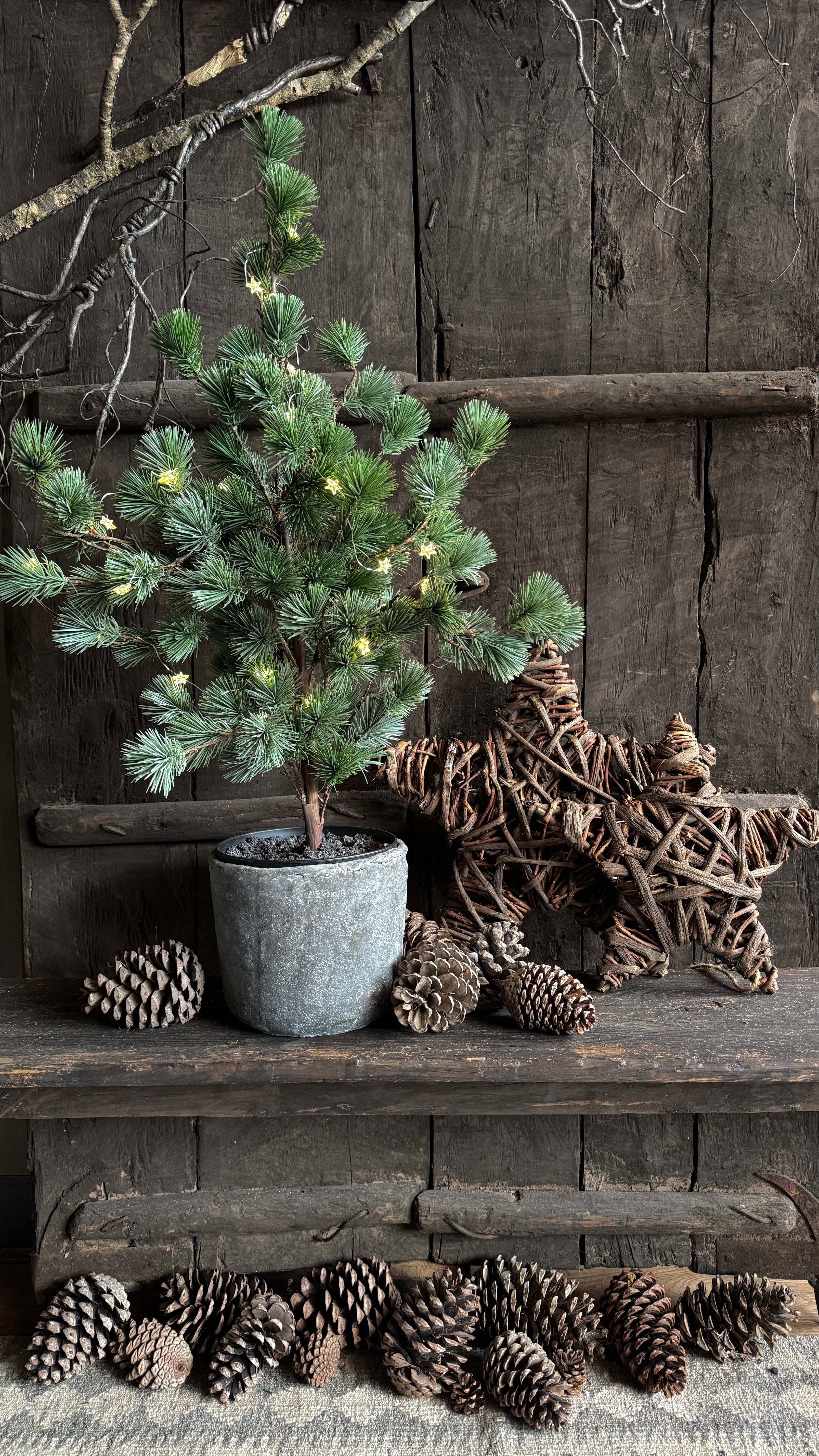 Zet 'm op een sidetable, in de vensterbank of op een dressoir voor een sfeervol winteraccent. Combineer hem met roestige belletjes of een dennenappelkoord voor een warme, natuurlijke touch in huis. Ideaal voor de feestdagen, maar ook daarna prachtig als blijvende, sobere decoratie.