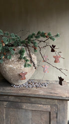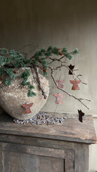 Mooi in een grove kersttak, aan een kastje of leuk voor in de kerstboom. Combineert goed met dennenappels, houten accessoires en naturel tinten.
