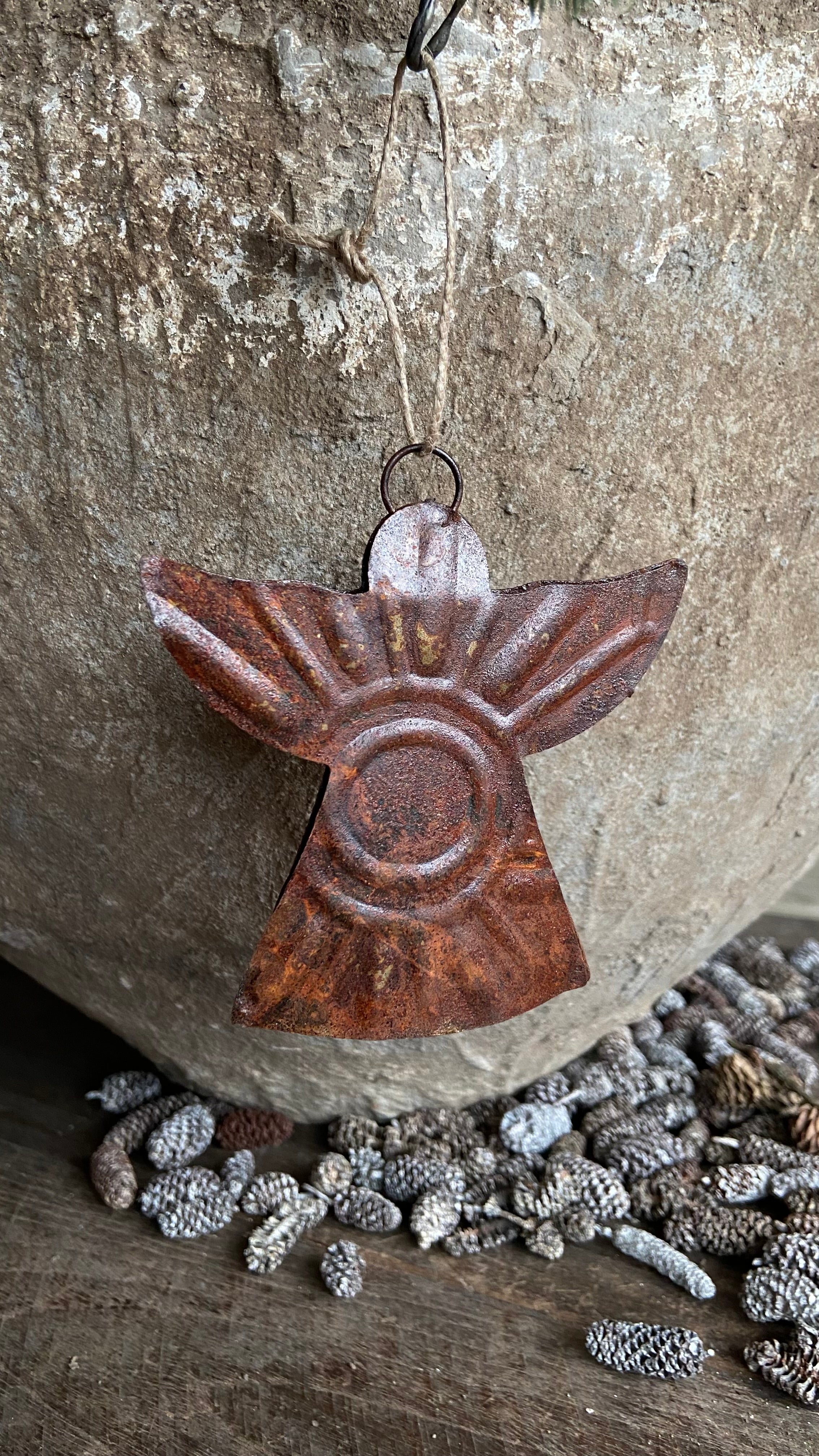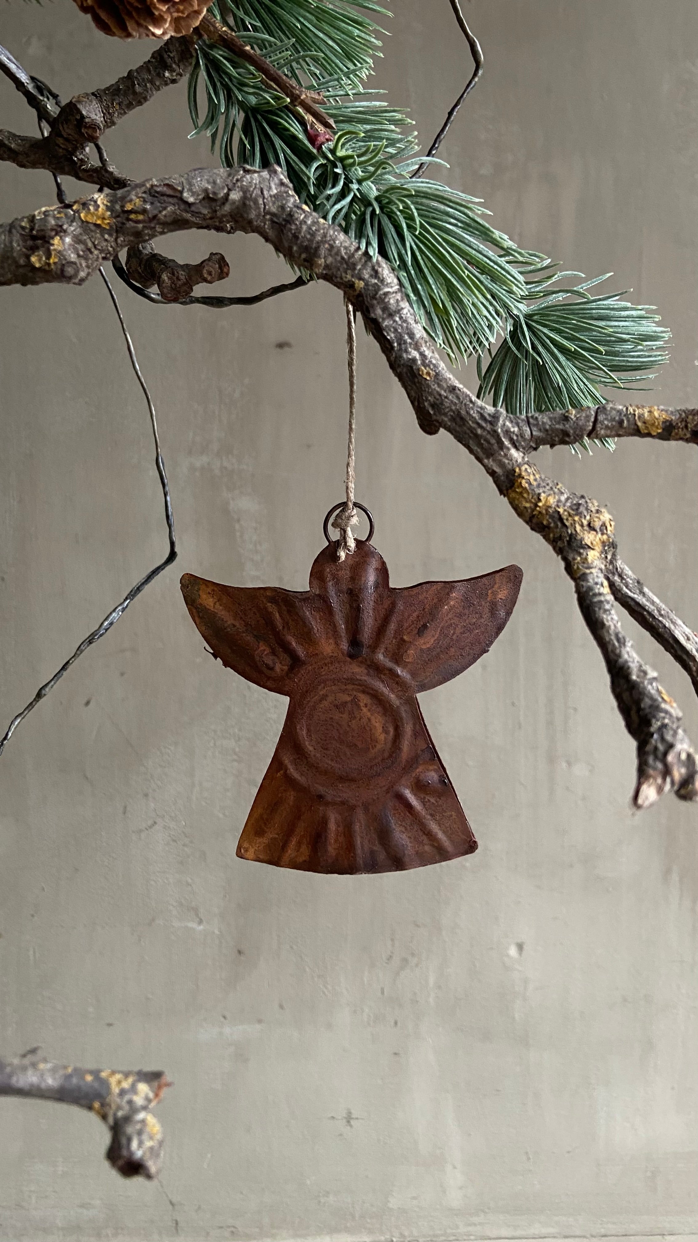Deze roestkleurige hanger in de vorm van een engel brengt meteen een stoere, sobere kerstsfeer in huis.