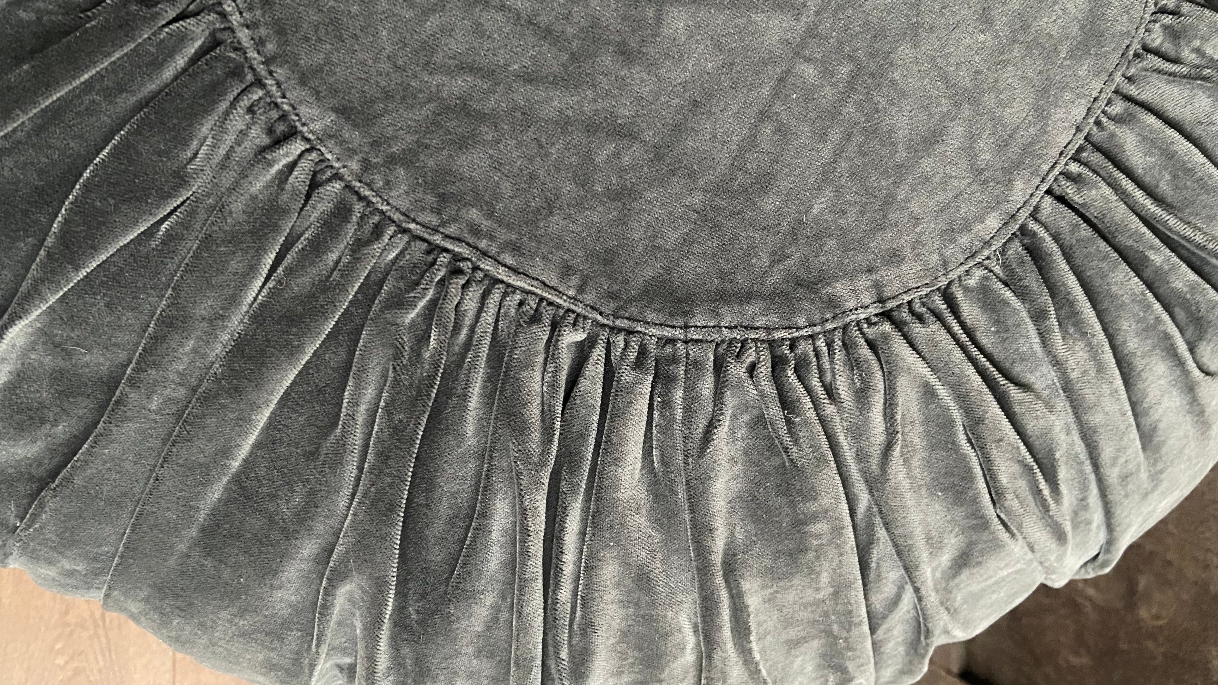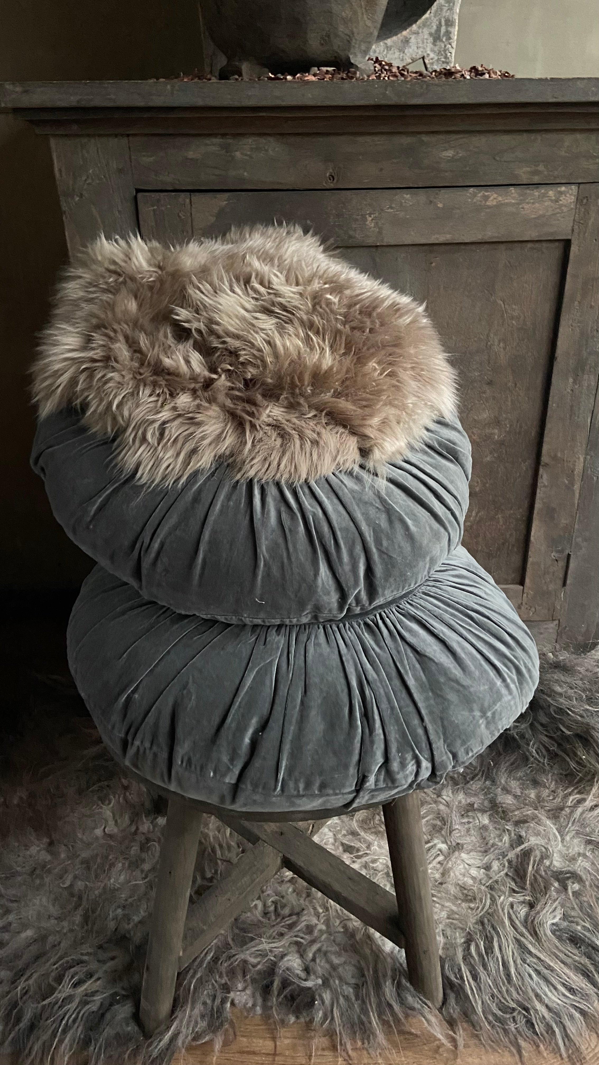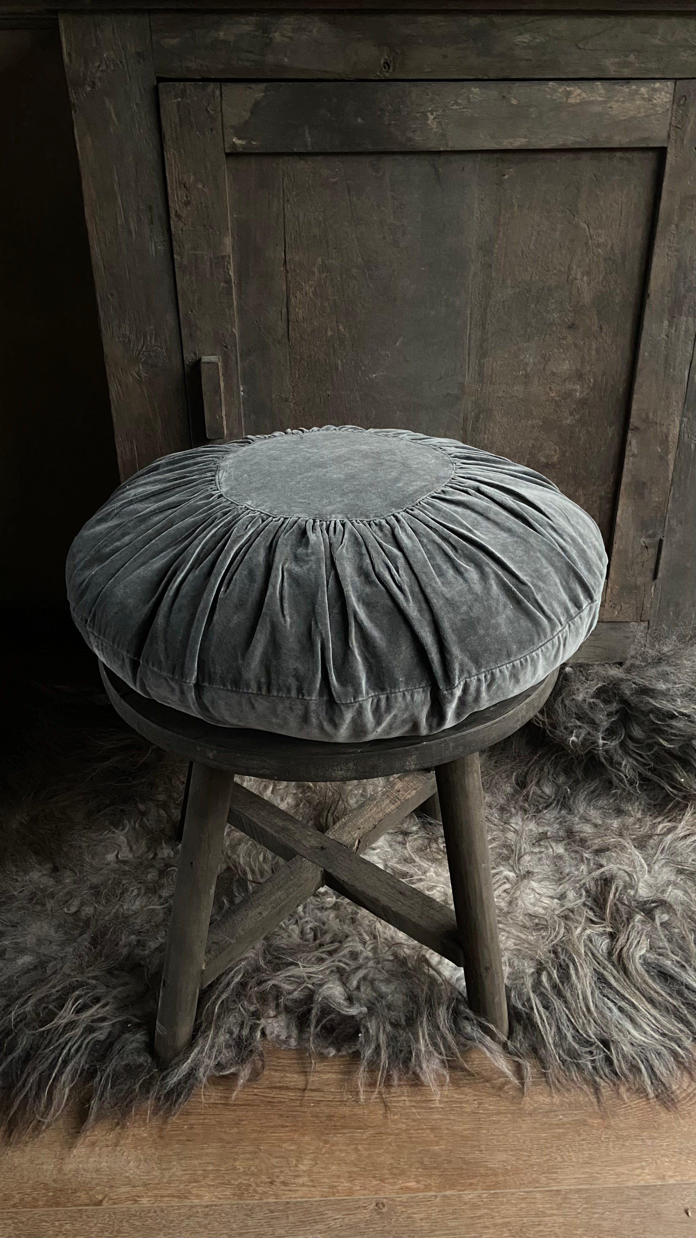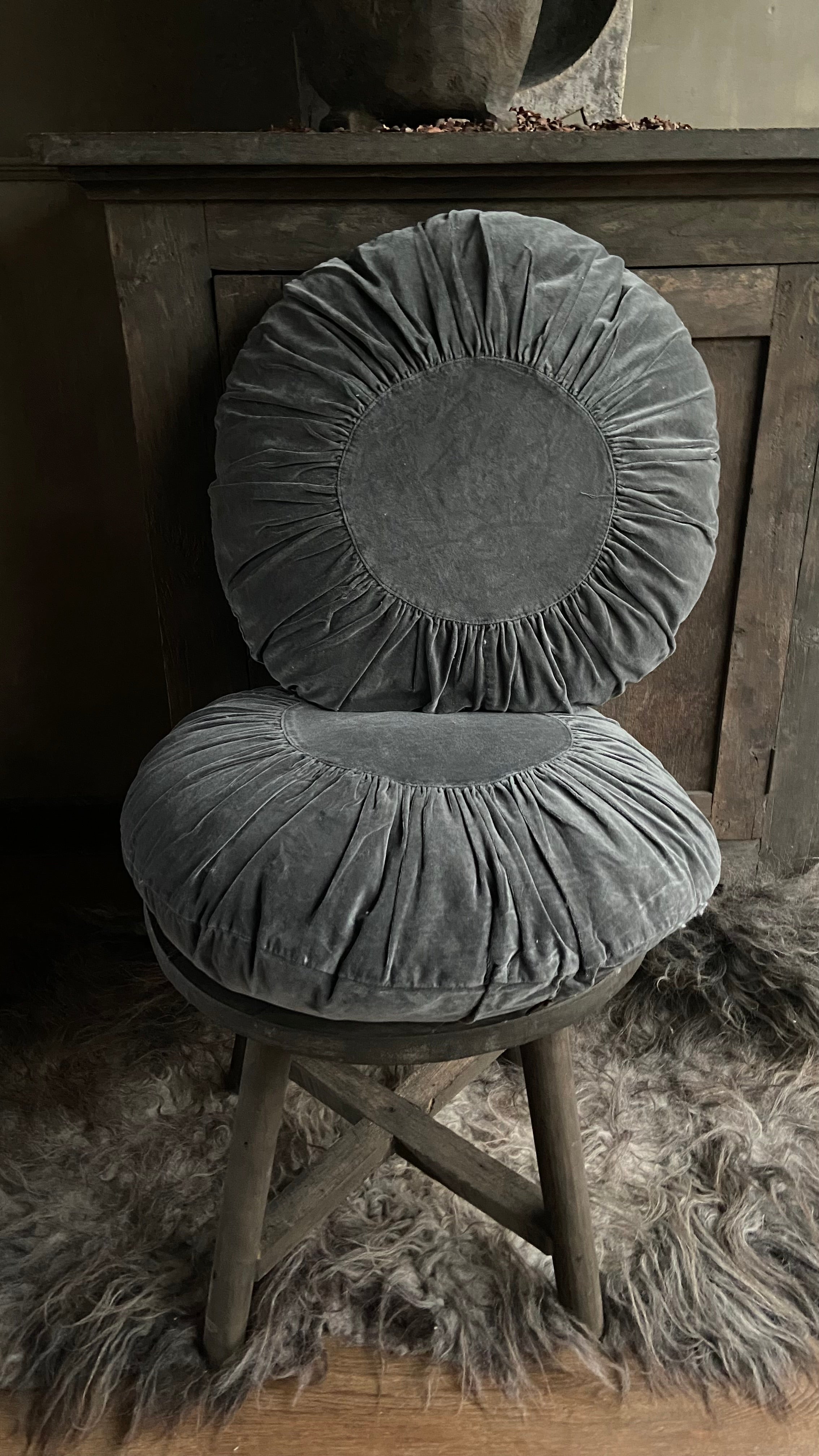 Met een doorsnede van 51 cm en een dikte van 19 cm is dit XL kussen stevig gevuld en aangenaam in gebruik. De diepe grijze kleur combineert mooi met verweerde houttinten en natuurlijke materialen. De ronde vorm en het plooidetail maken het kussen net even anders dan standaard sierkussens.
