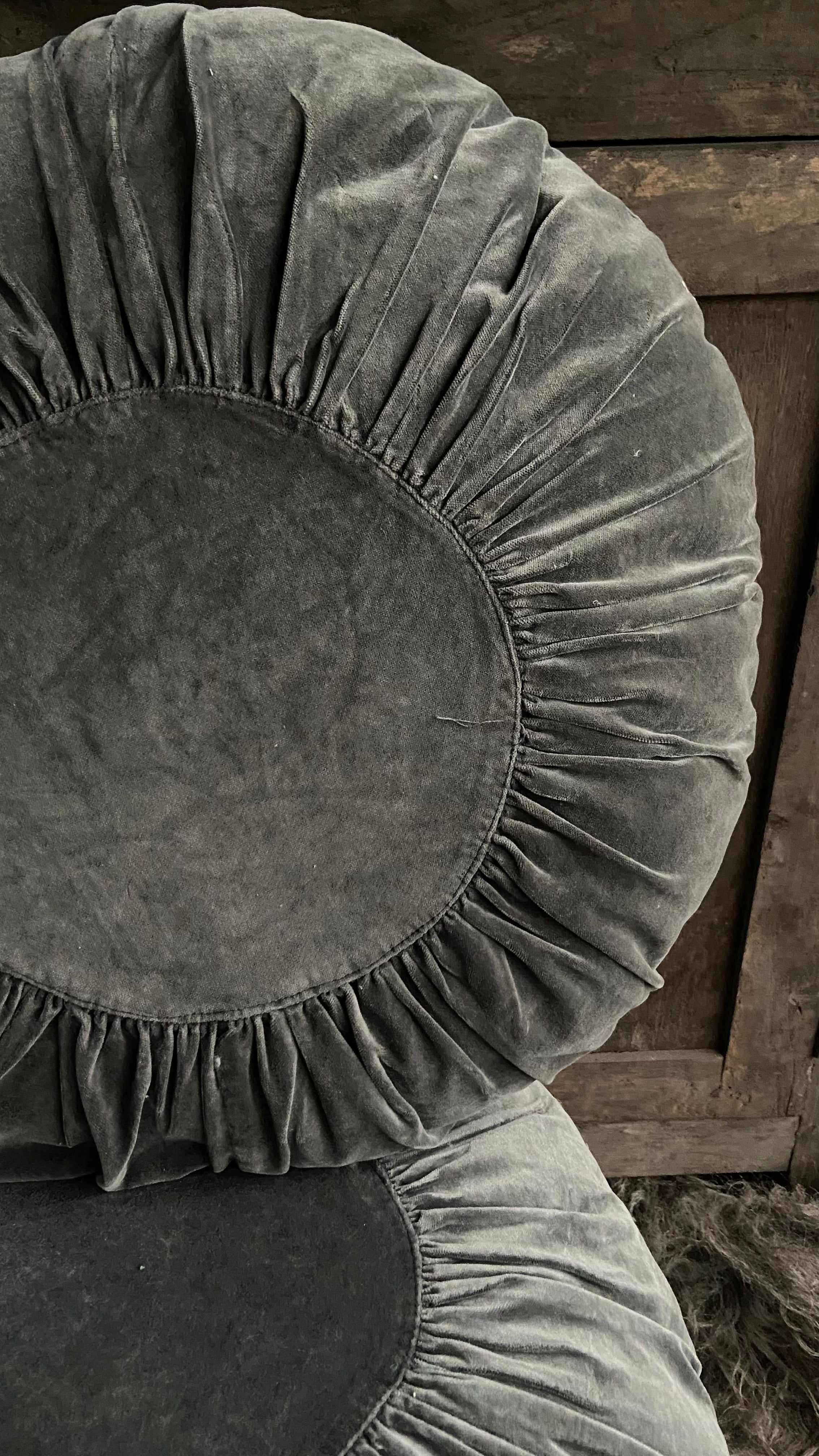Dit royale ronde kussen in dark grey heeft een stijlvolle uitstraling en past perfect in een sober en landelijk interieur. De geplooide afwerking zorgt voor een uniek en rustgevend accent.