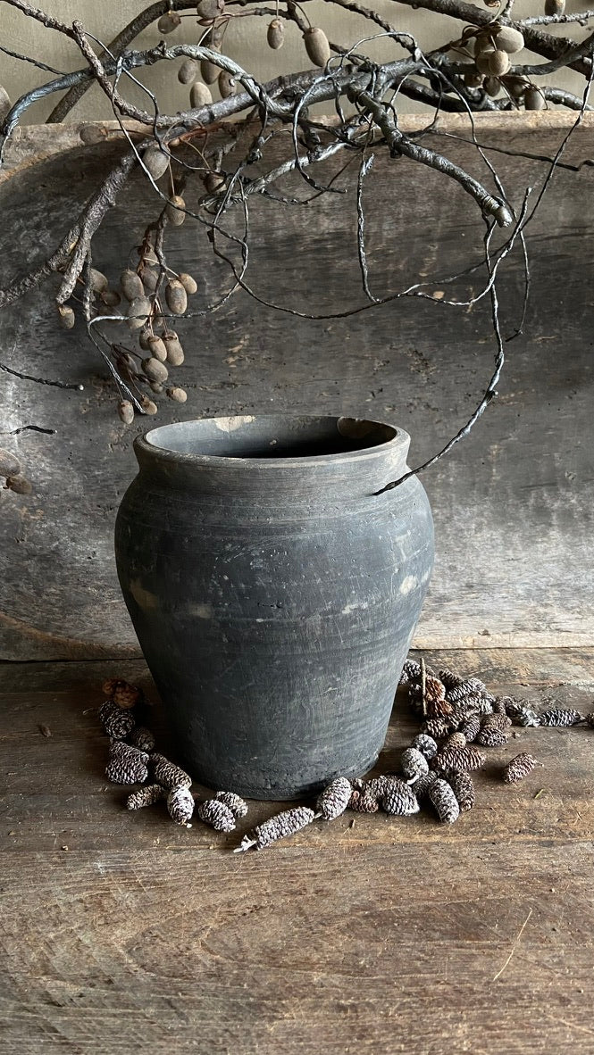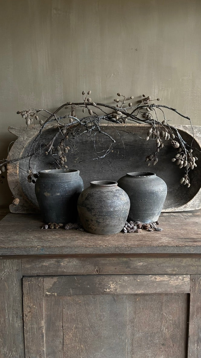 Deze oude Chinese kruik heeft een mooie vergrijsde kleur en geeft direct sfeer aan een sober en landelijk interieur.