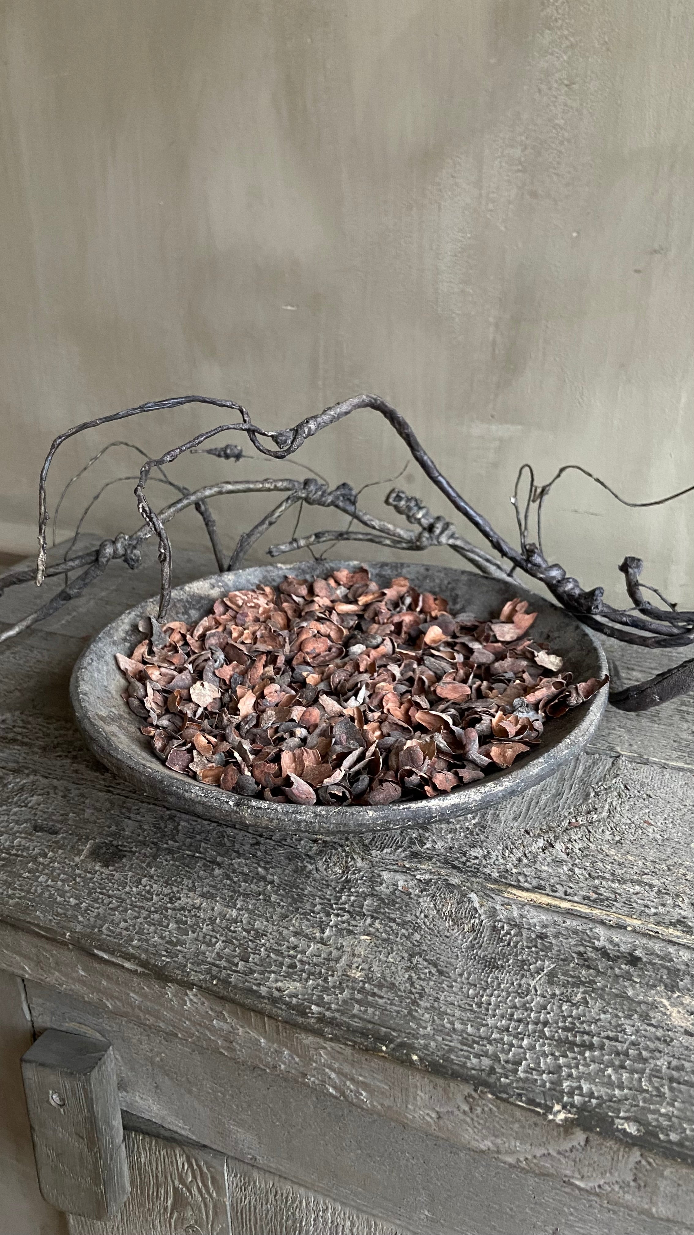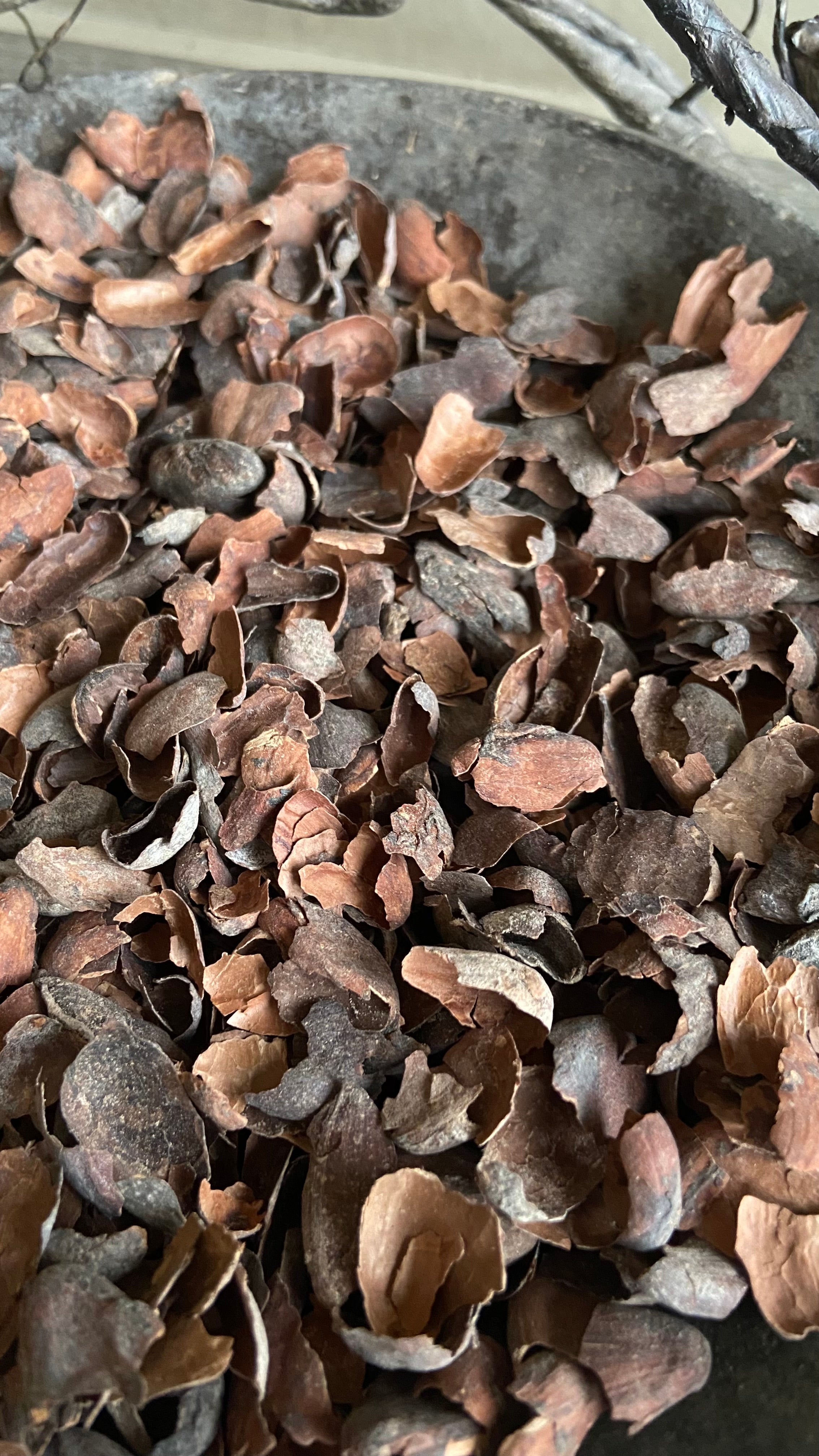- Ein Beutel gefüllt mit dekorativer Rinde