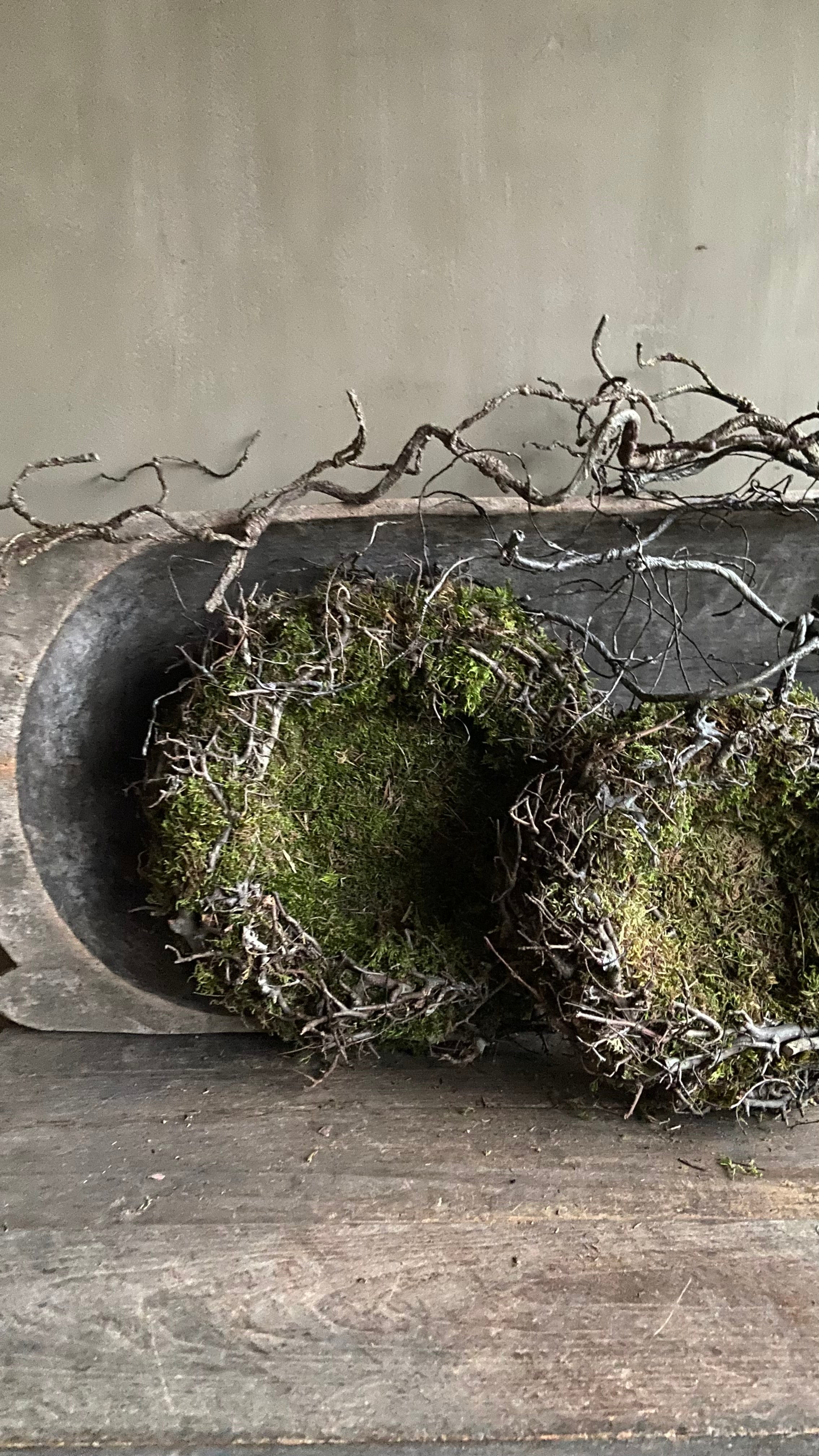 Deze mos nest krans is met de hand gevormd van natuurlijke takken en afgewerkt met echt mos. Door het gebruik van natuurlijke materialen heeft elke krans een eigen uitstraling. De structuur van de takken en het mos geeft een puur en doorleefd effect.
