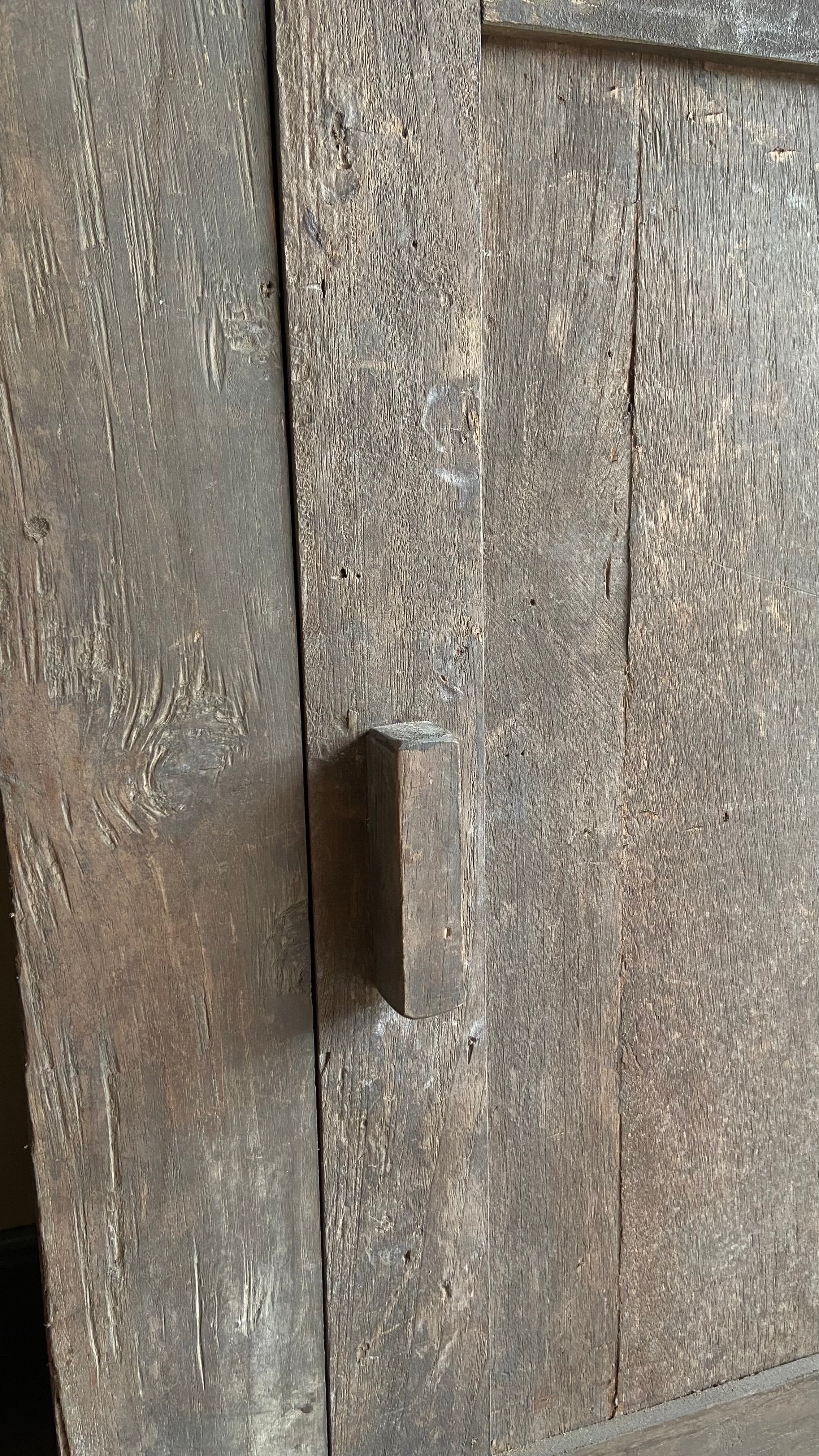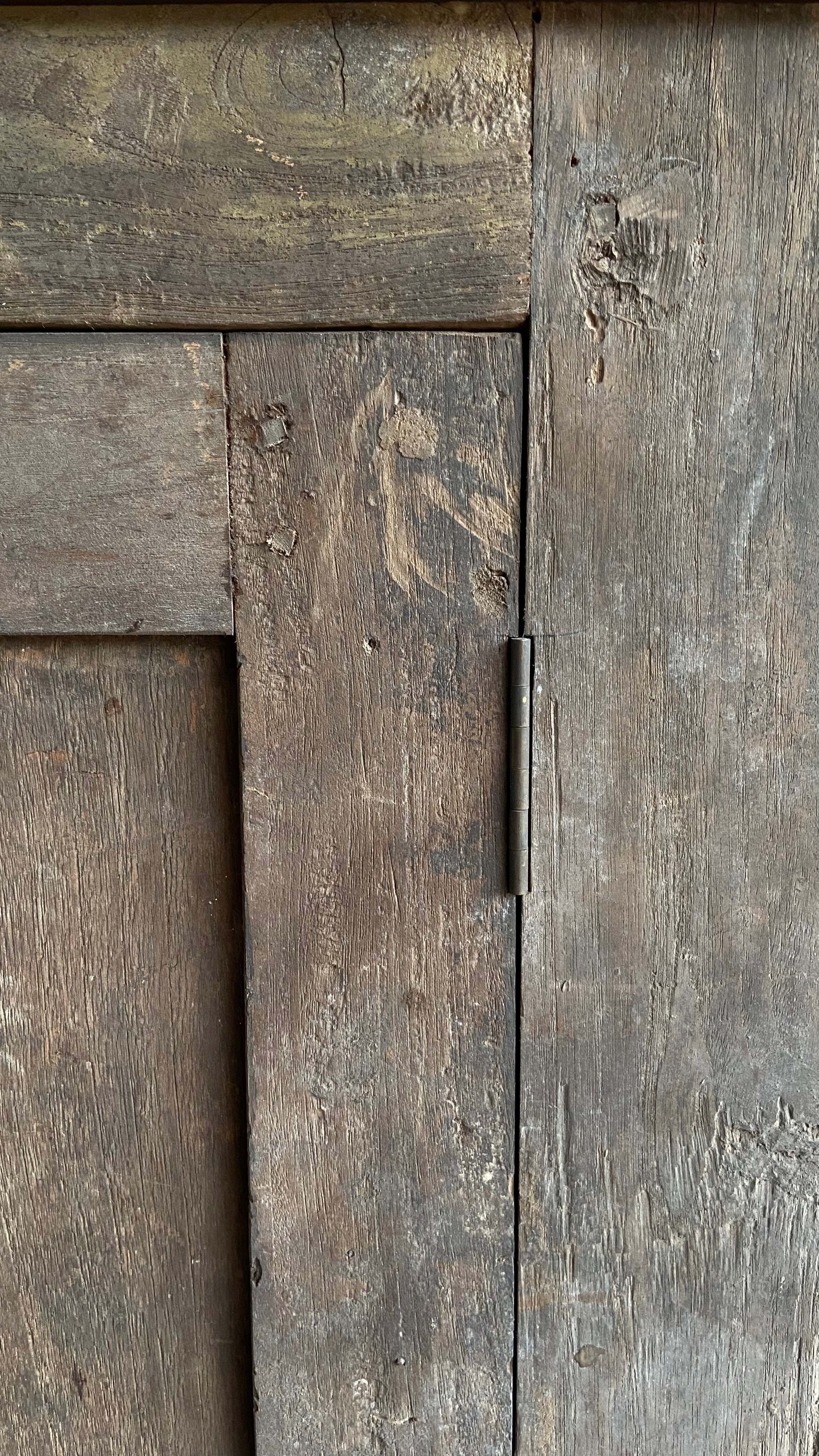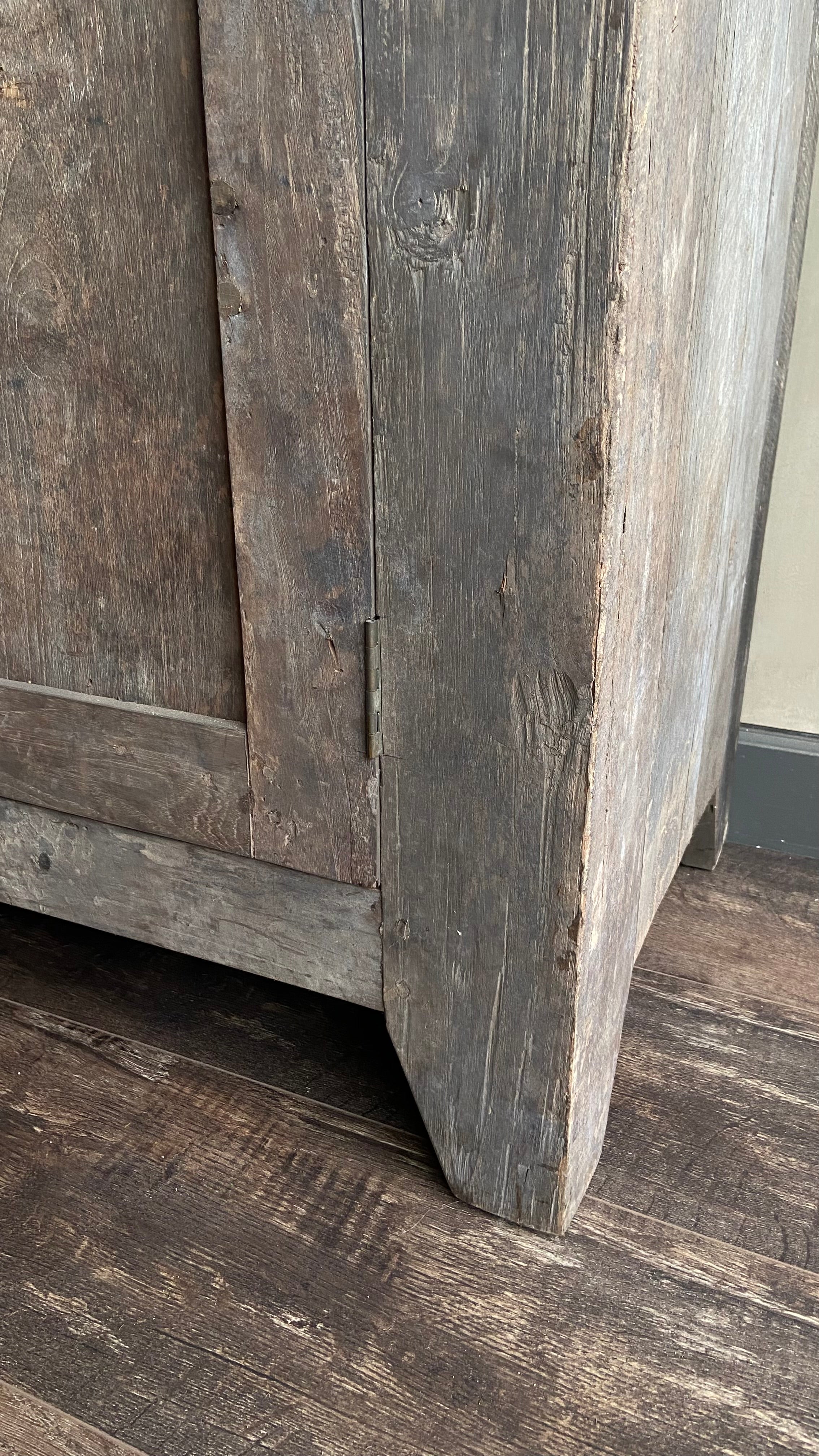- Der Schrank hat verwitterte Braun-/Grautöne