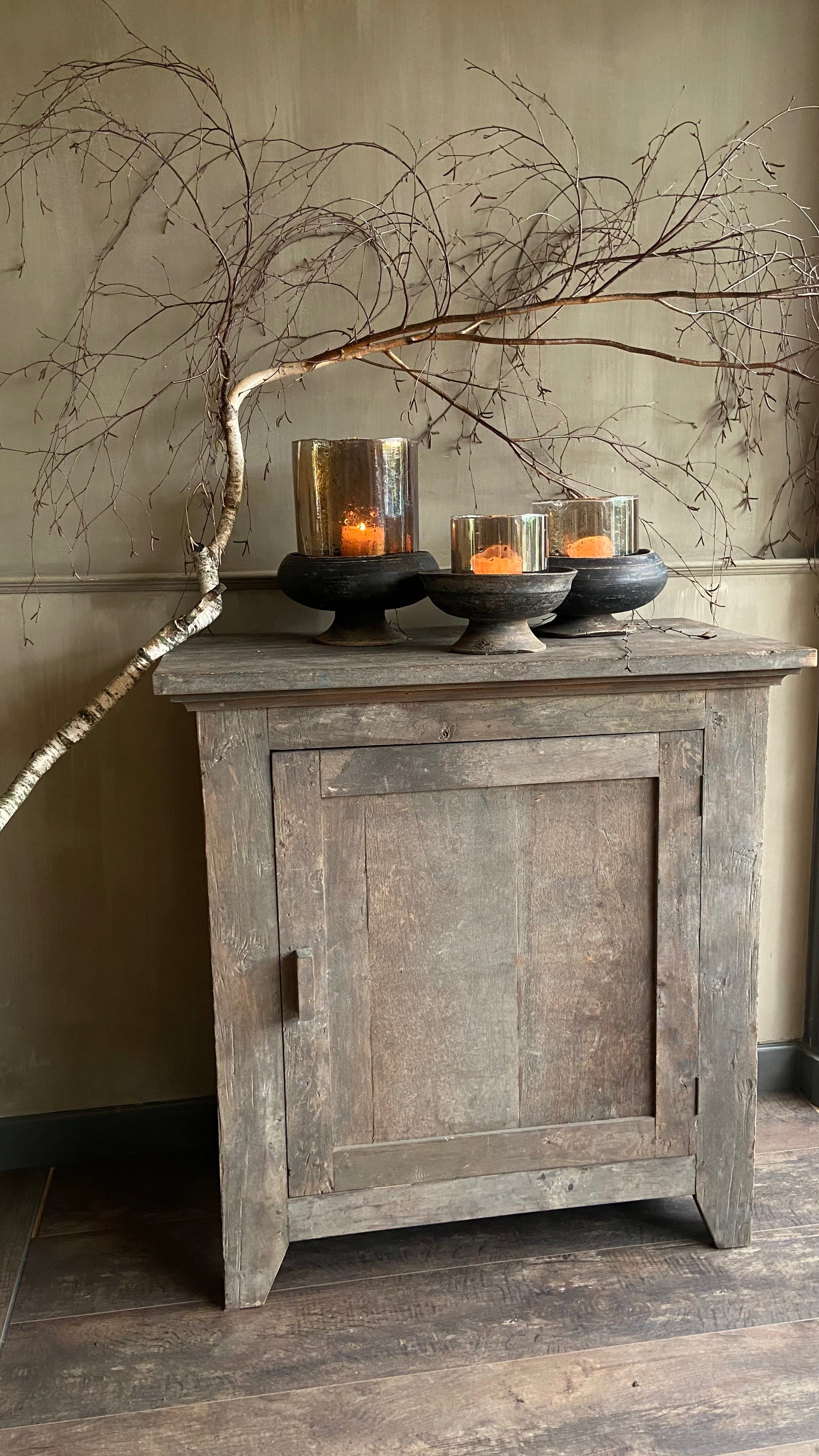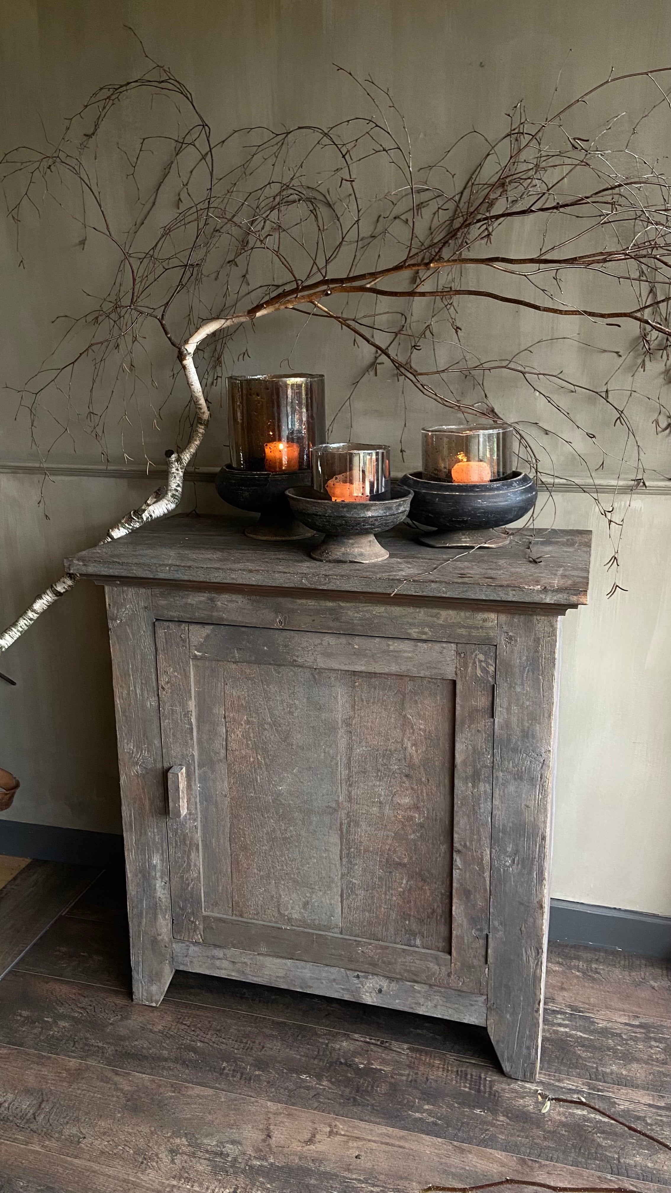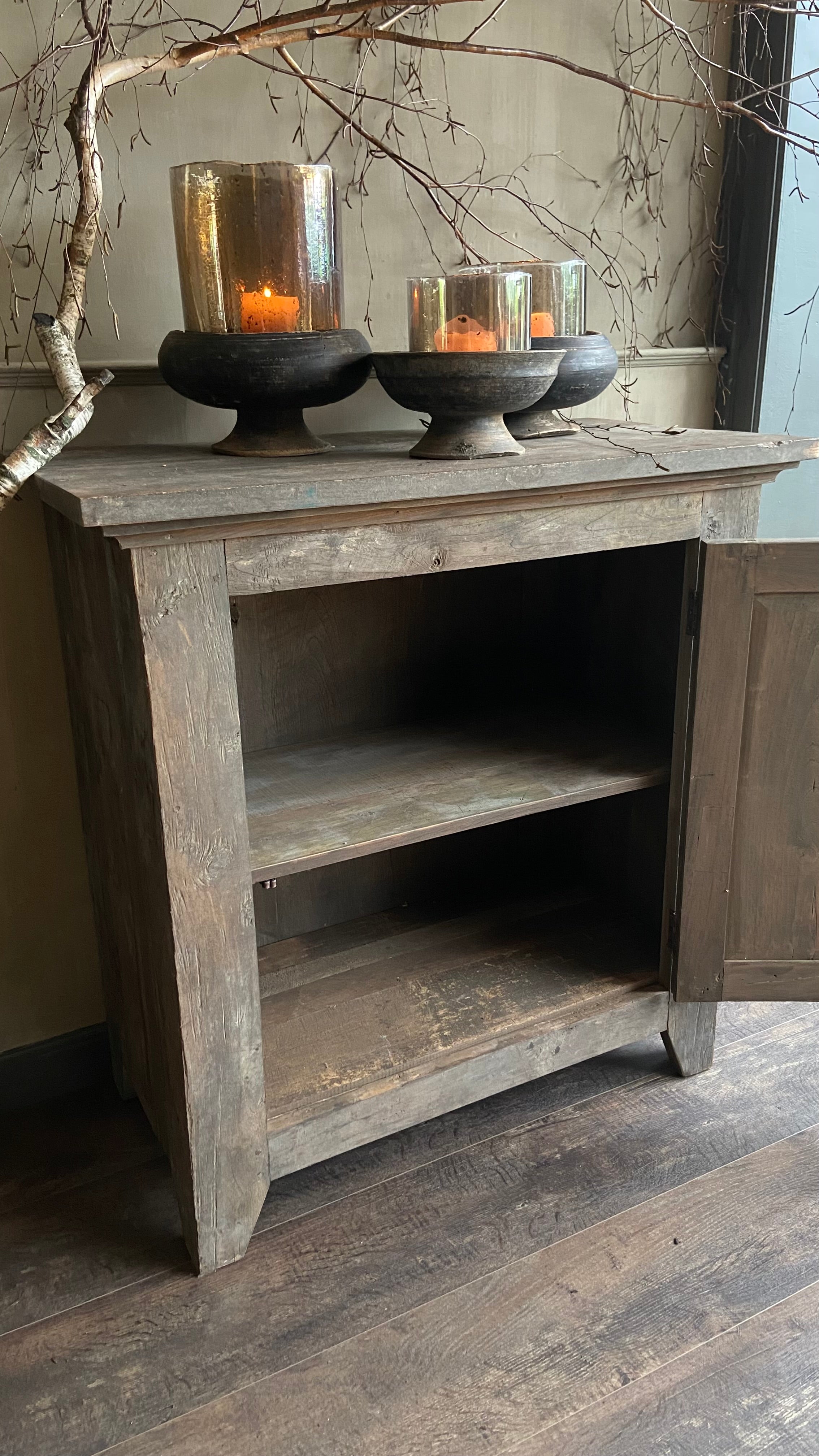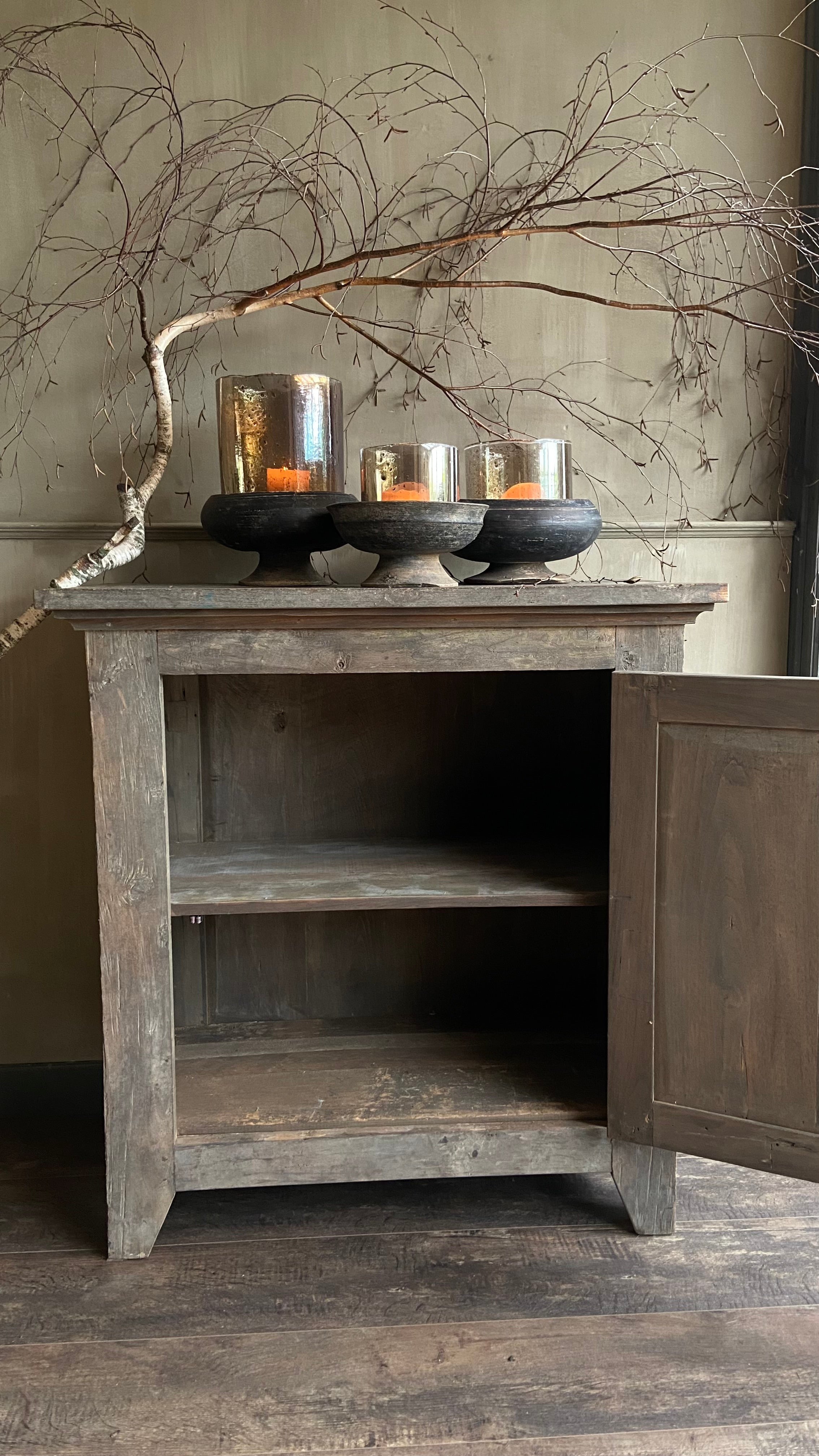 - Der Schrank hat verwitterte Braun-/Grautöne