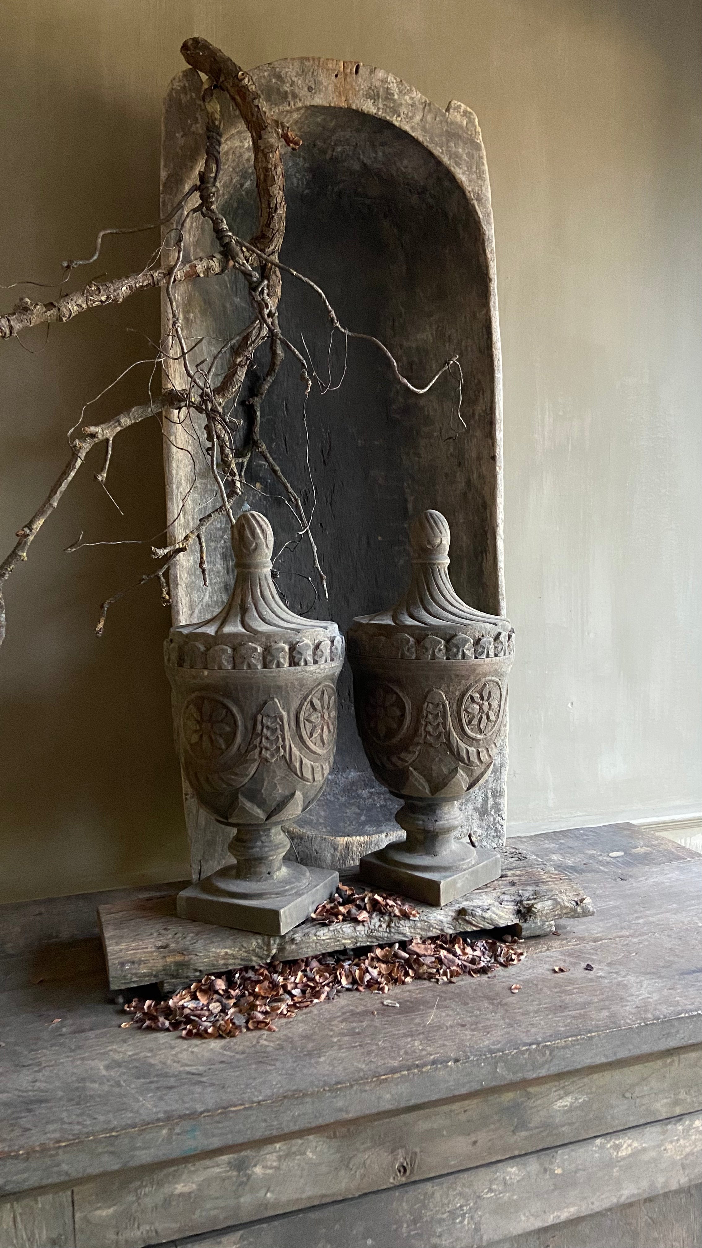 Houten Kelk met Deksel – LUKSA Home Collection – Verweerd Grijs – 40,5 cm