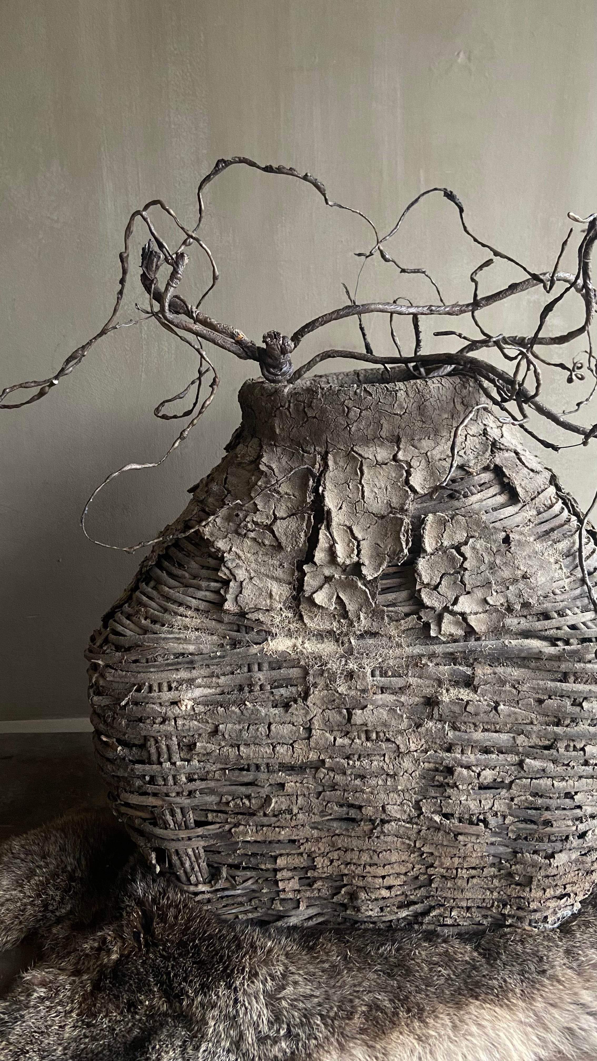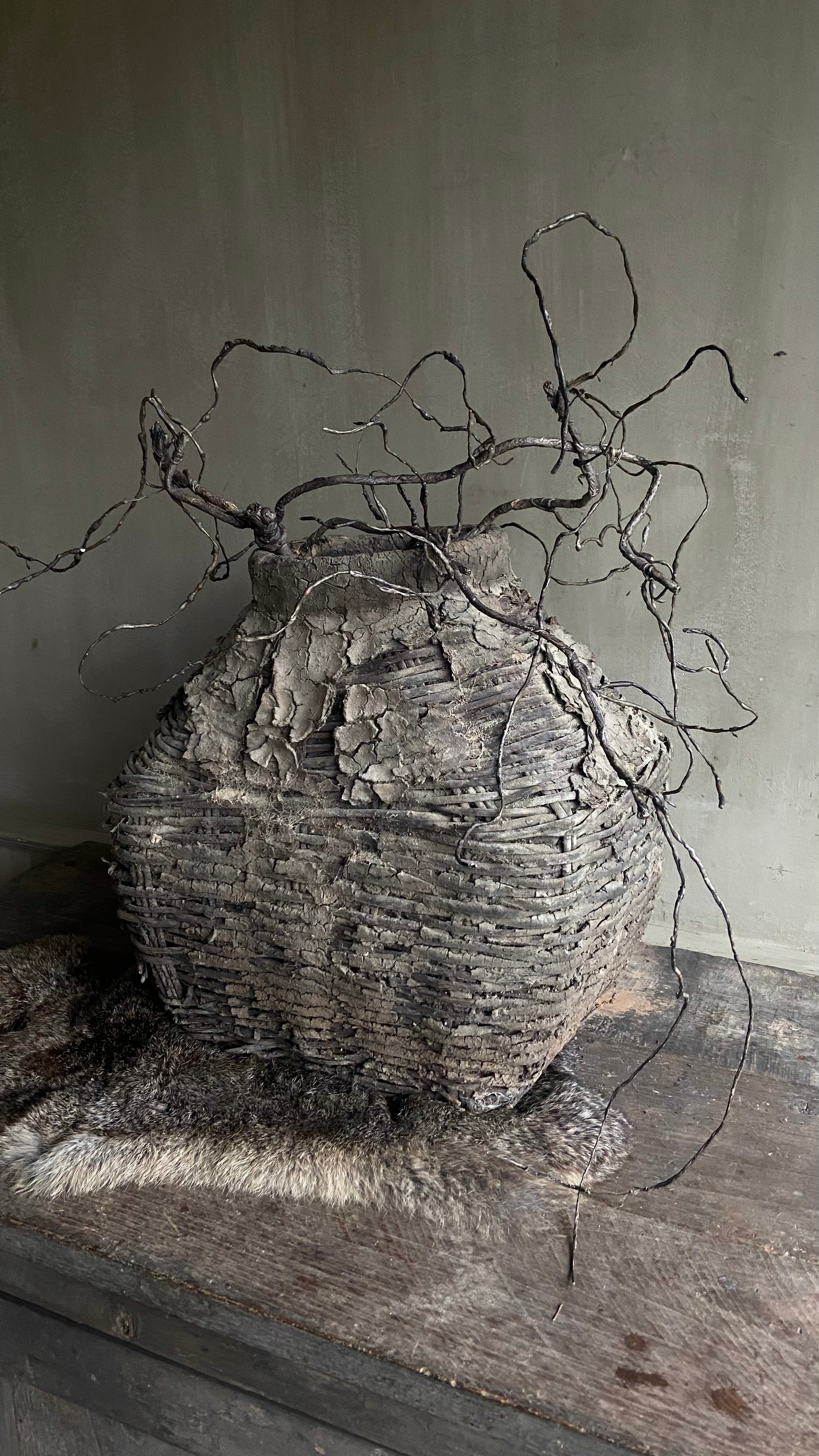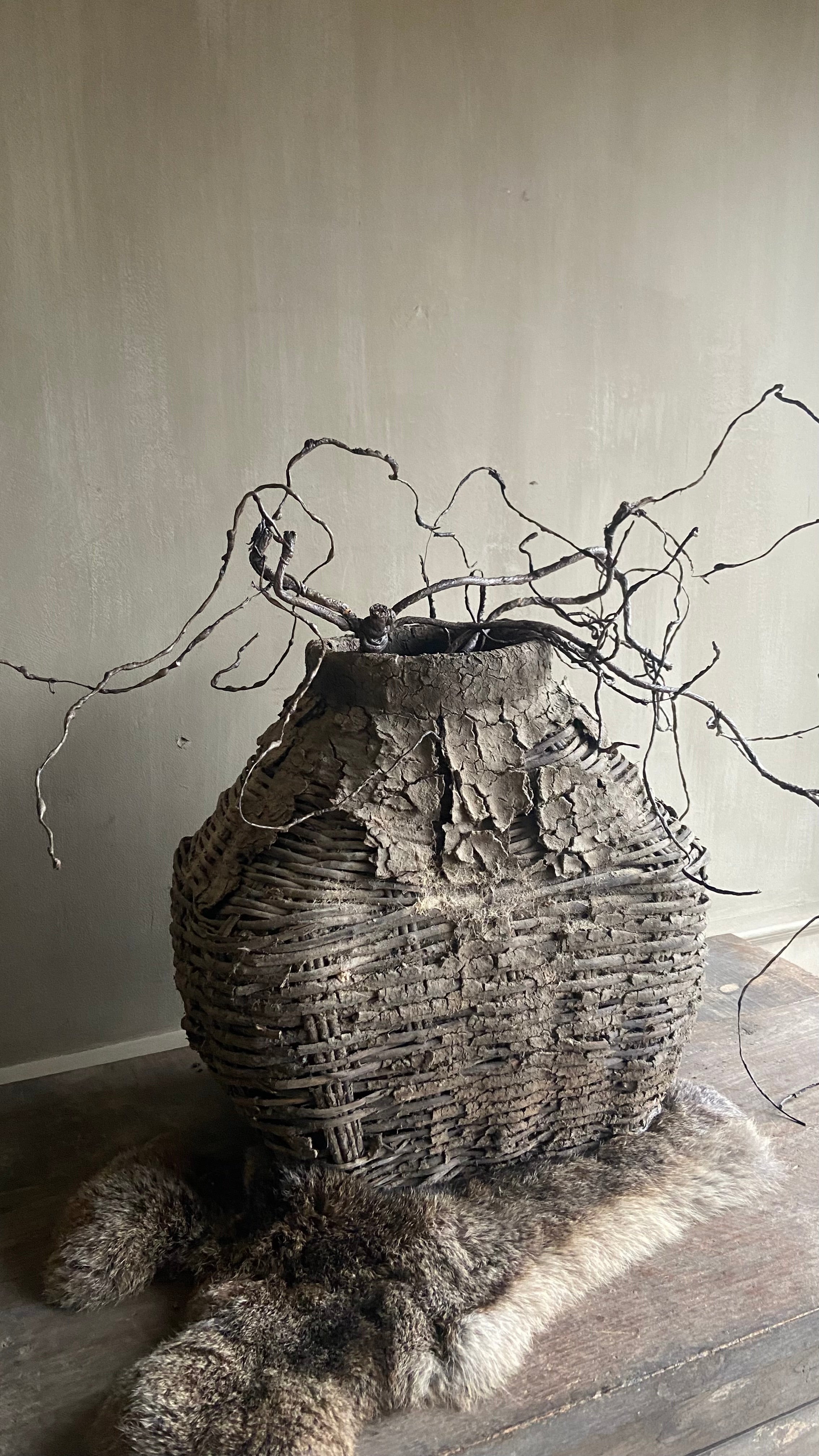 Deze oude leemmand komt uit China en werd jarenlang gebruikt om oogst en voedsel in te bewaren. De mand is met de hand gemaakt van natuurlijke materialen en heeft een prachtige, doorleefde uitstraling. Geen enkele mand is precies hetzelfde, waardoor je altijd een uniek exemplaar in huis haalt.