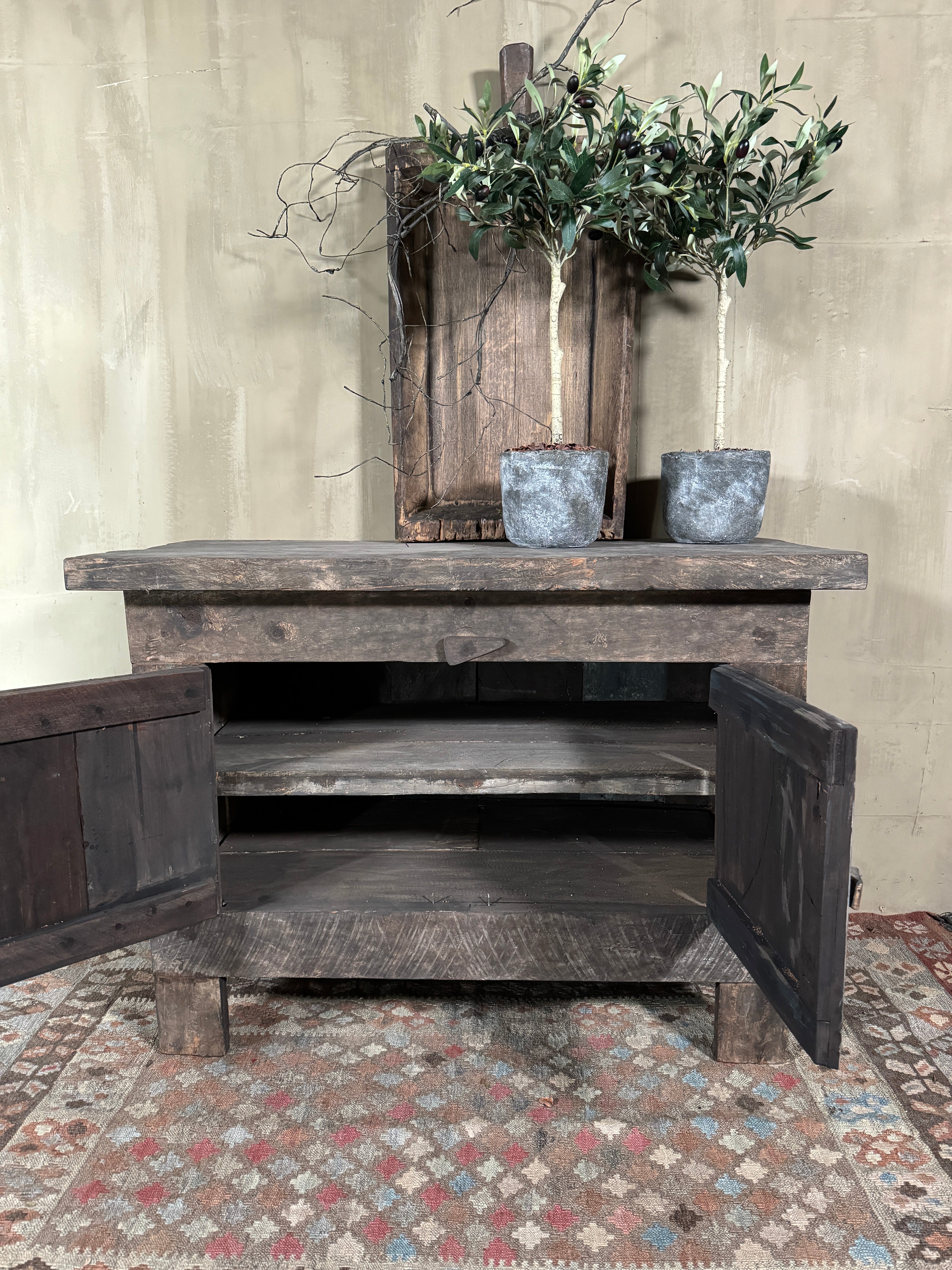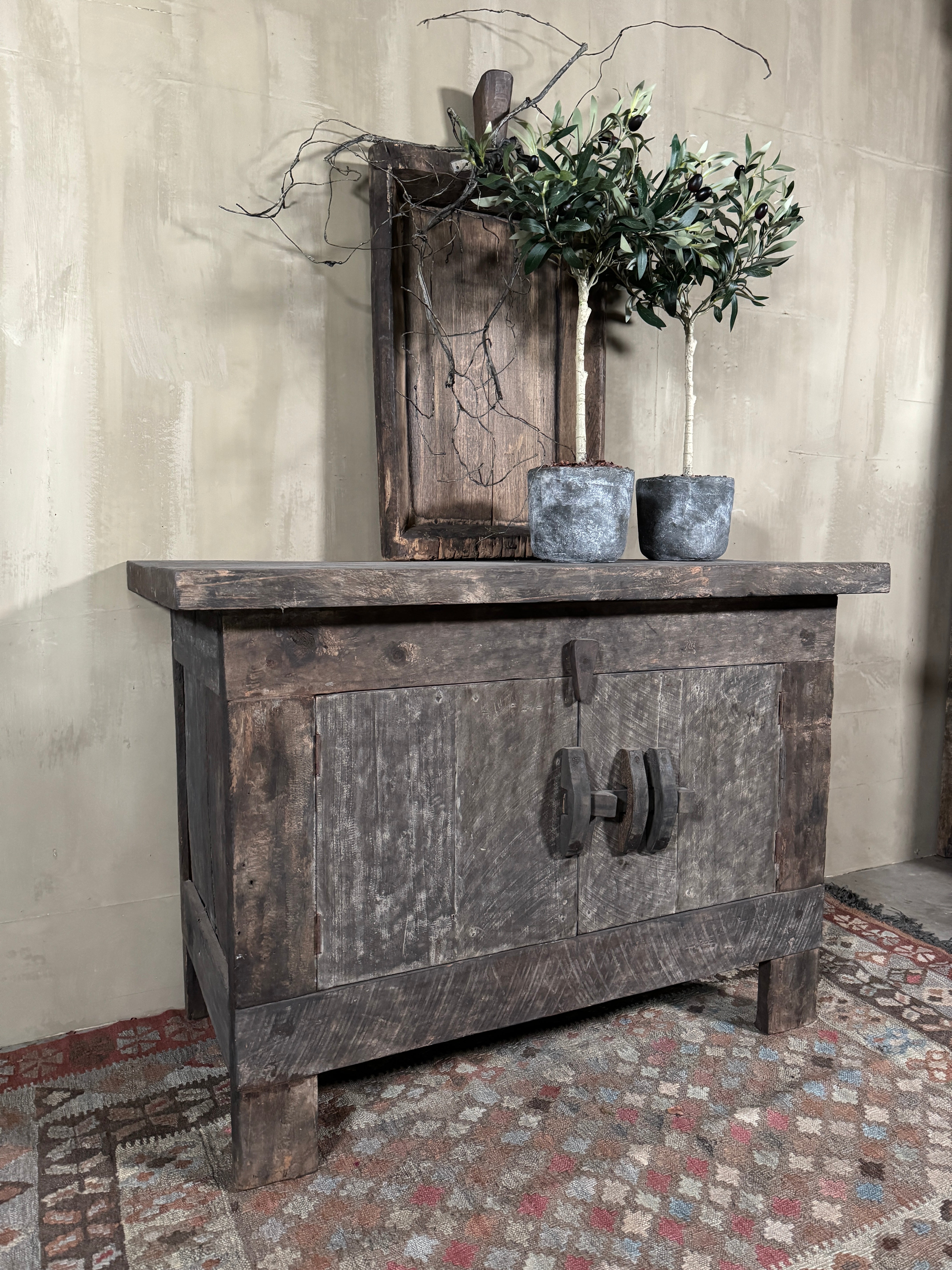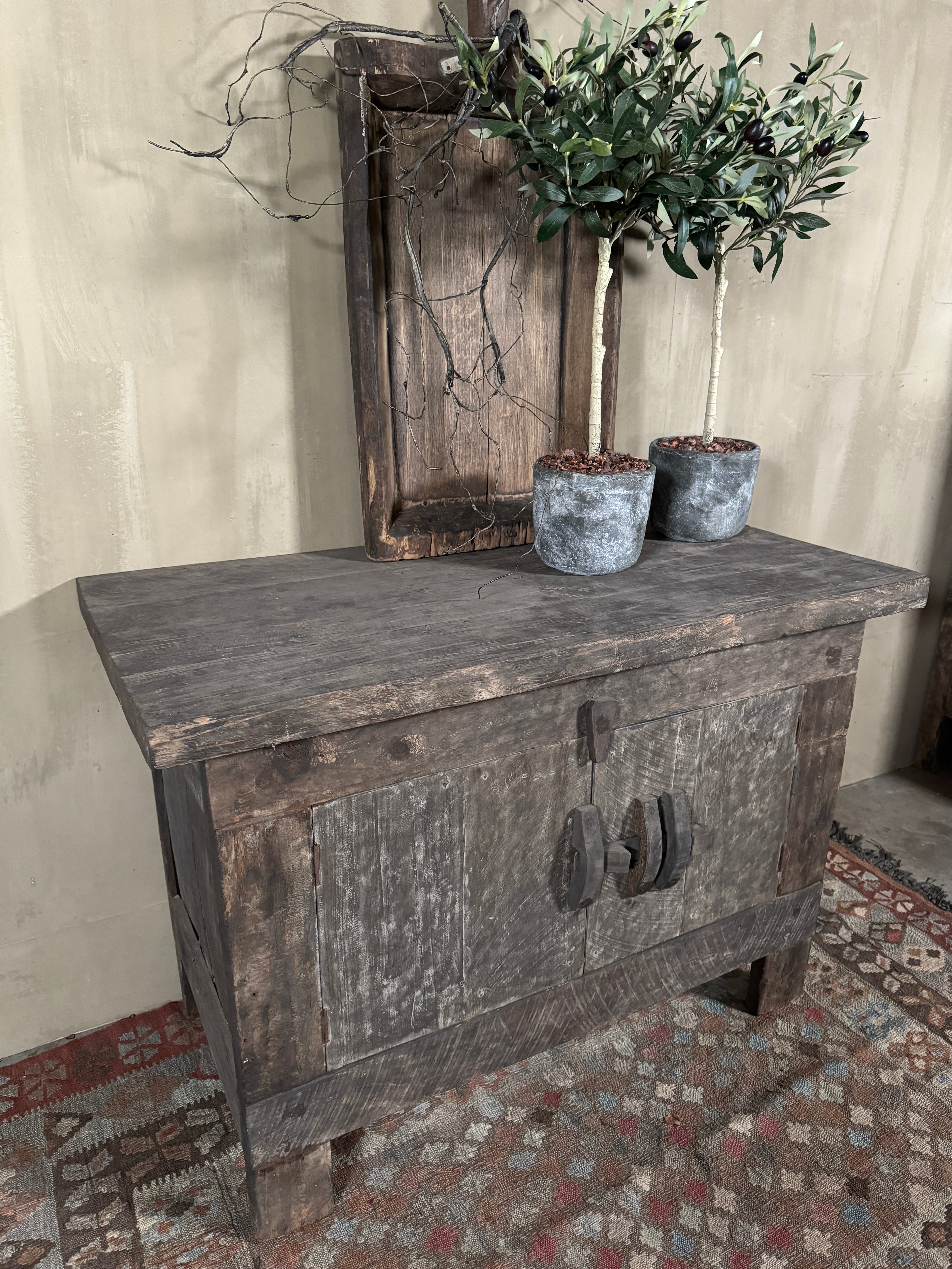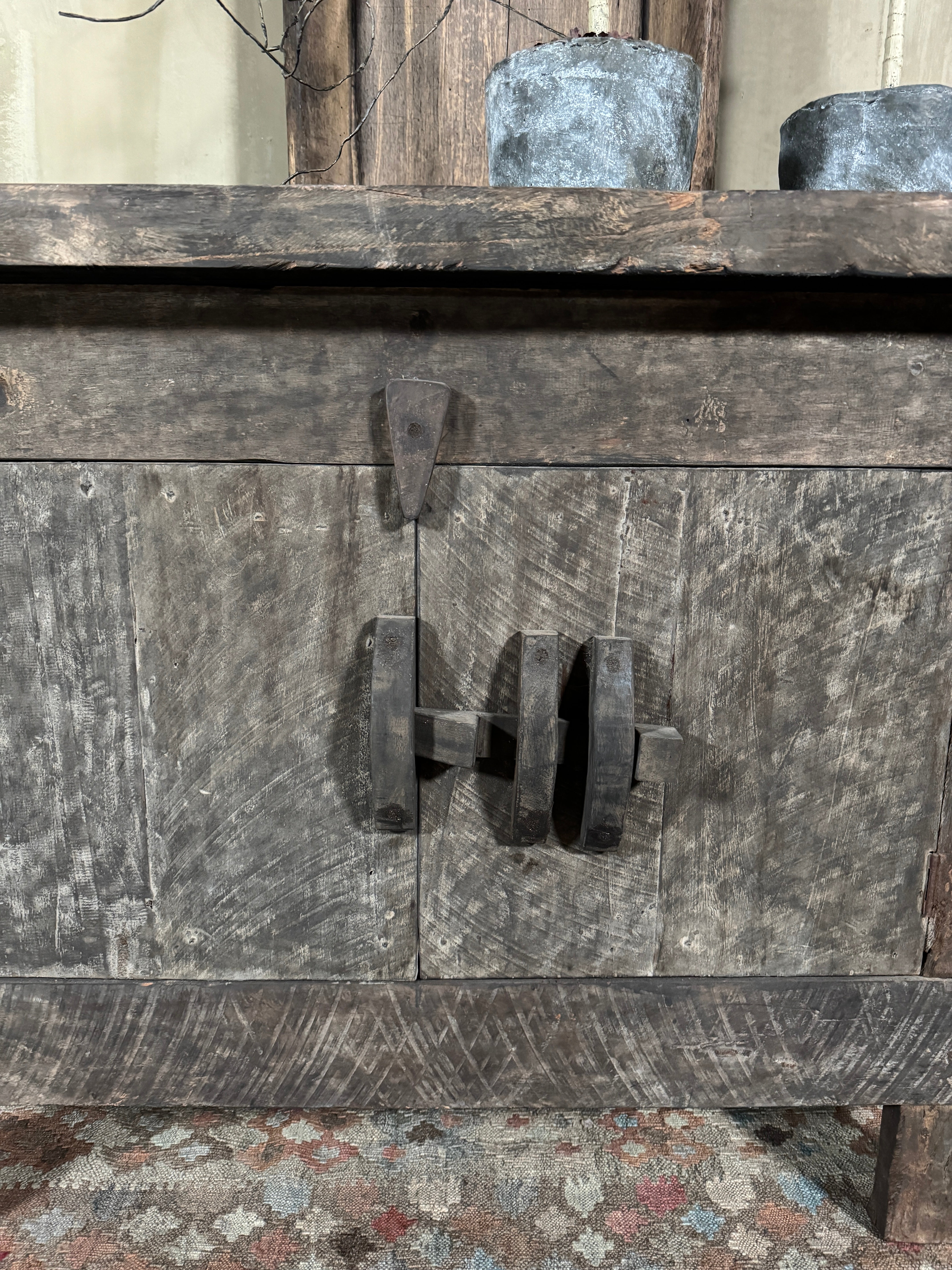 Dit Old Barn tv-meubel is een stoer en sfeervol meubelstuk dat perfect past in een landelijke of sobere woonstijl. Gemaakt van grof, verweerd hout met een unieke textuur en stevige metalen sluiting – een meubel met karakter.