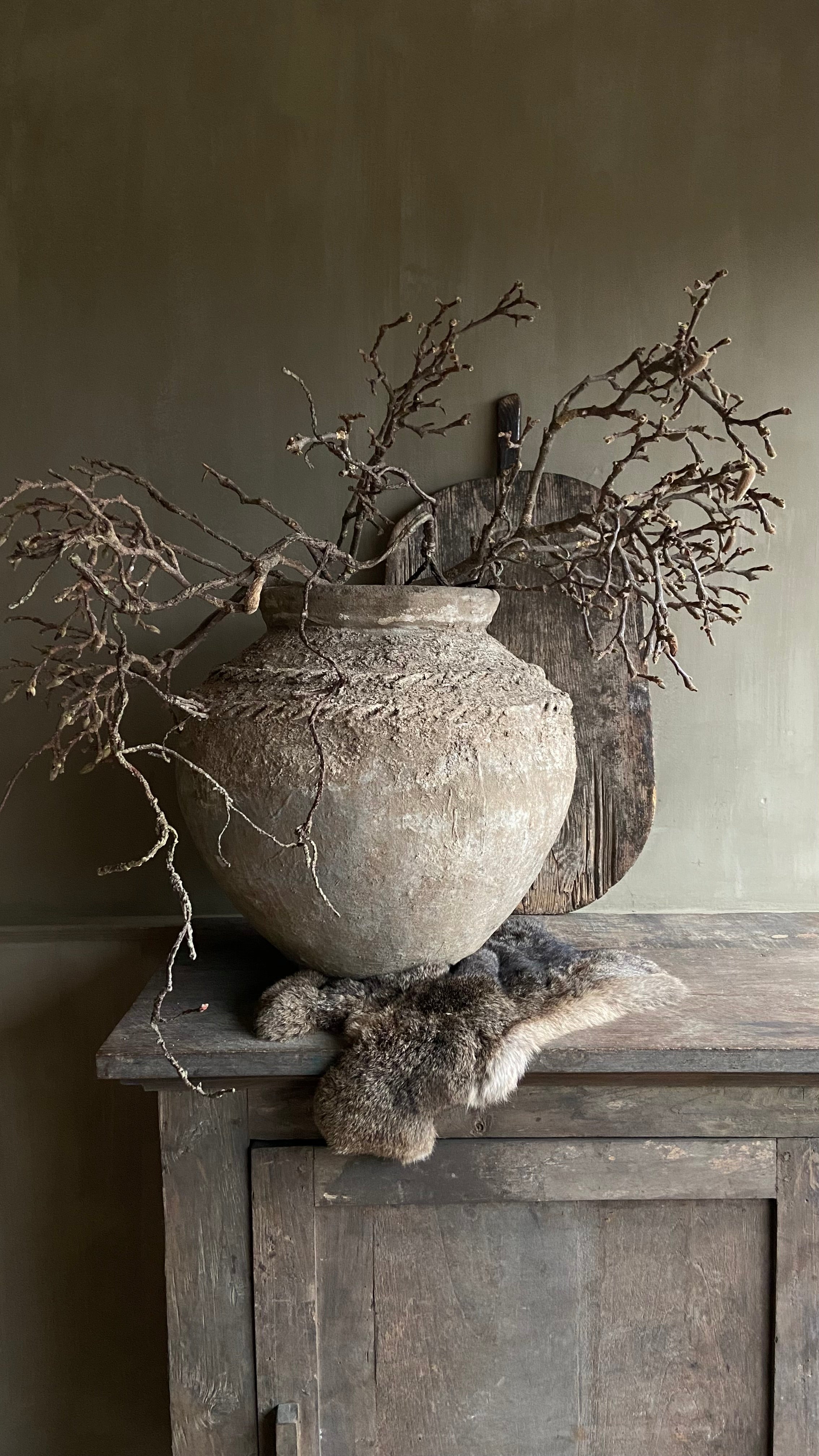 Waterkruik L – grote, vergrijsde aardewerken pot met decoratieve details