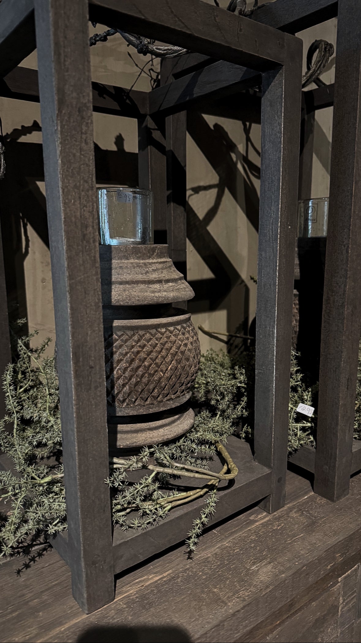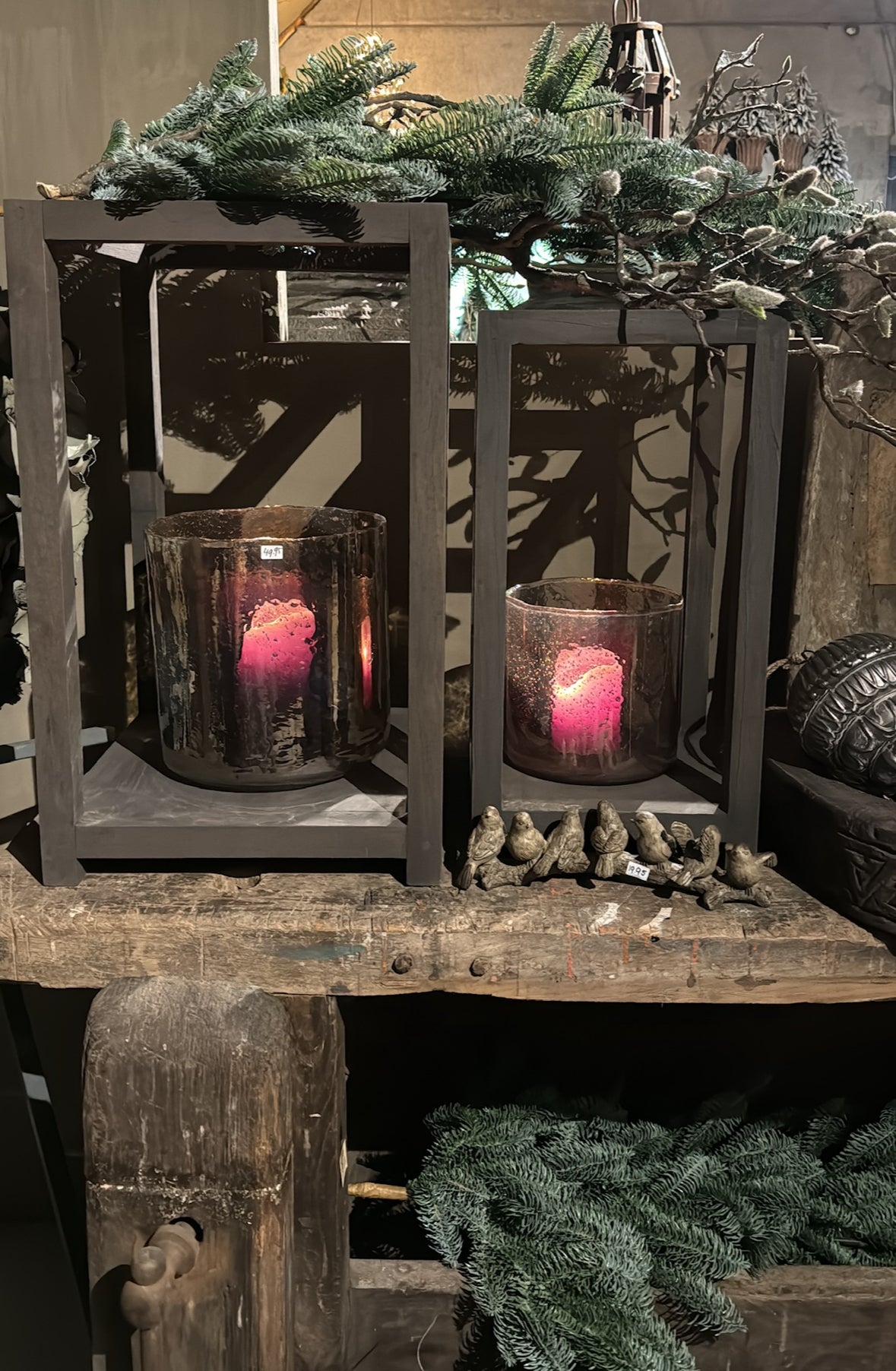 Perfect voor een stompkaars of windlicht – het kaarslicht schijnt mooi door het open frame heen en zorgt direct voor sfeer. De lantaarn is niet van massief hout, maar gemaakt van stevig materiaal met een houten uitstraling.