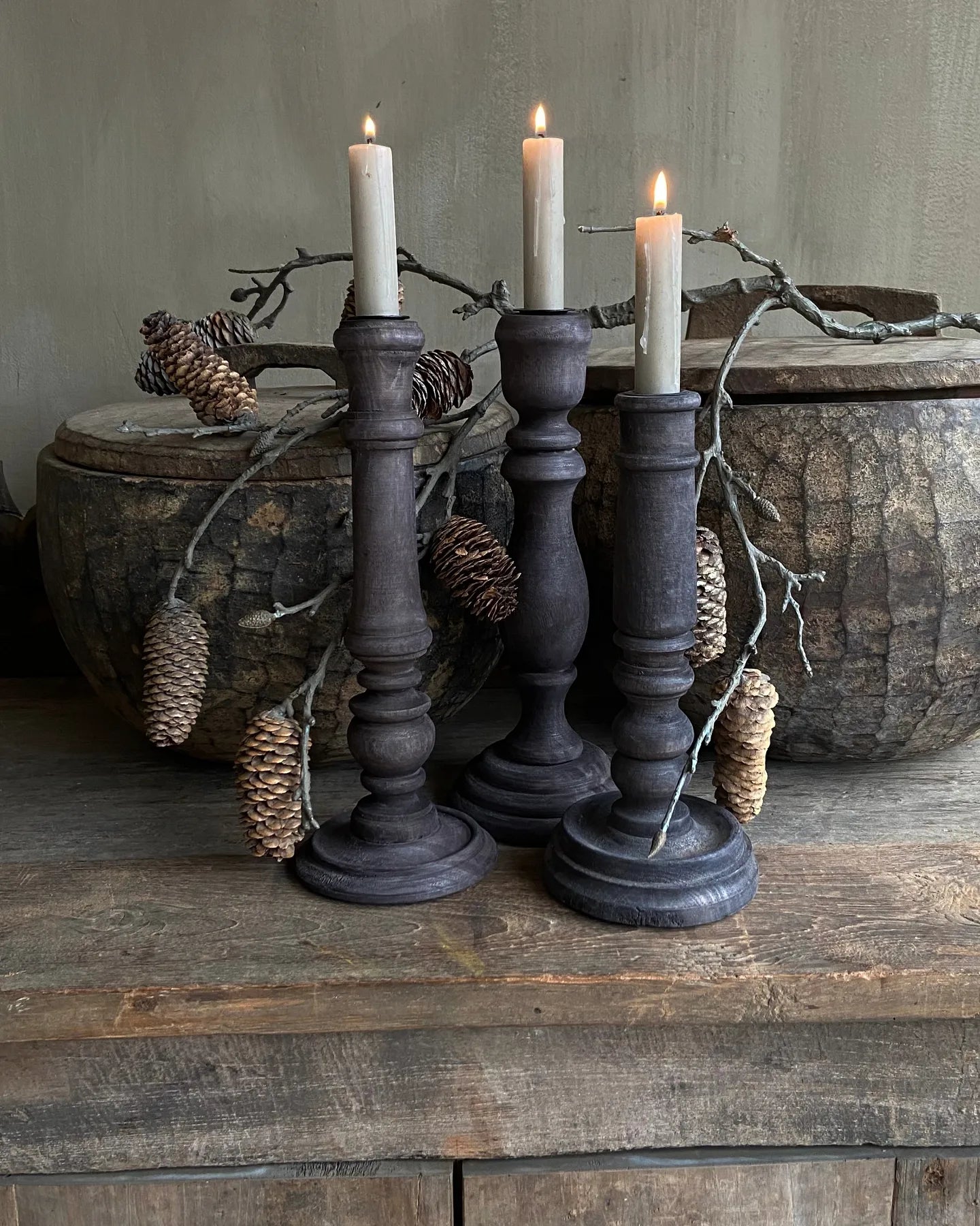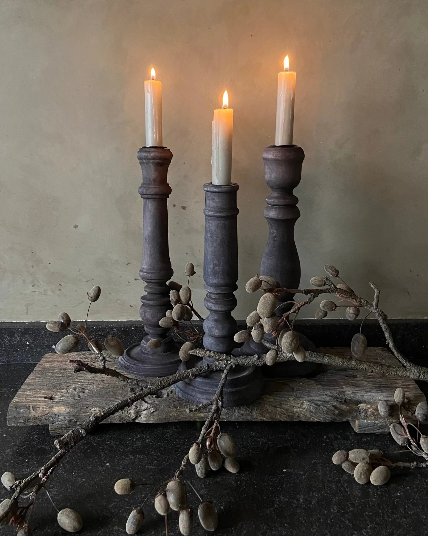 Este juego de candelabros de 3 piezas tiene un aspecto atractivo y sencillo. La diferencia de longitud de los candelabros le da un aspecto atractivo. Muy atmosférico con una vela encendida. Hermoso artículo para el otoño.