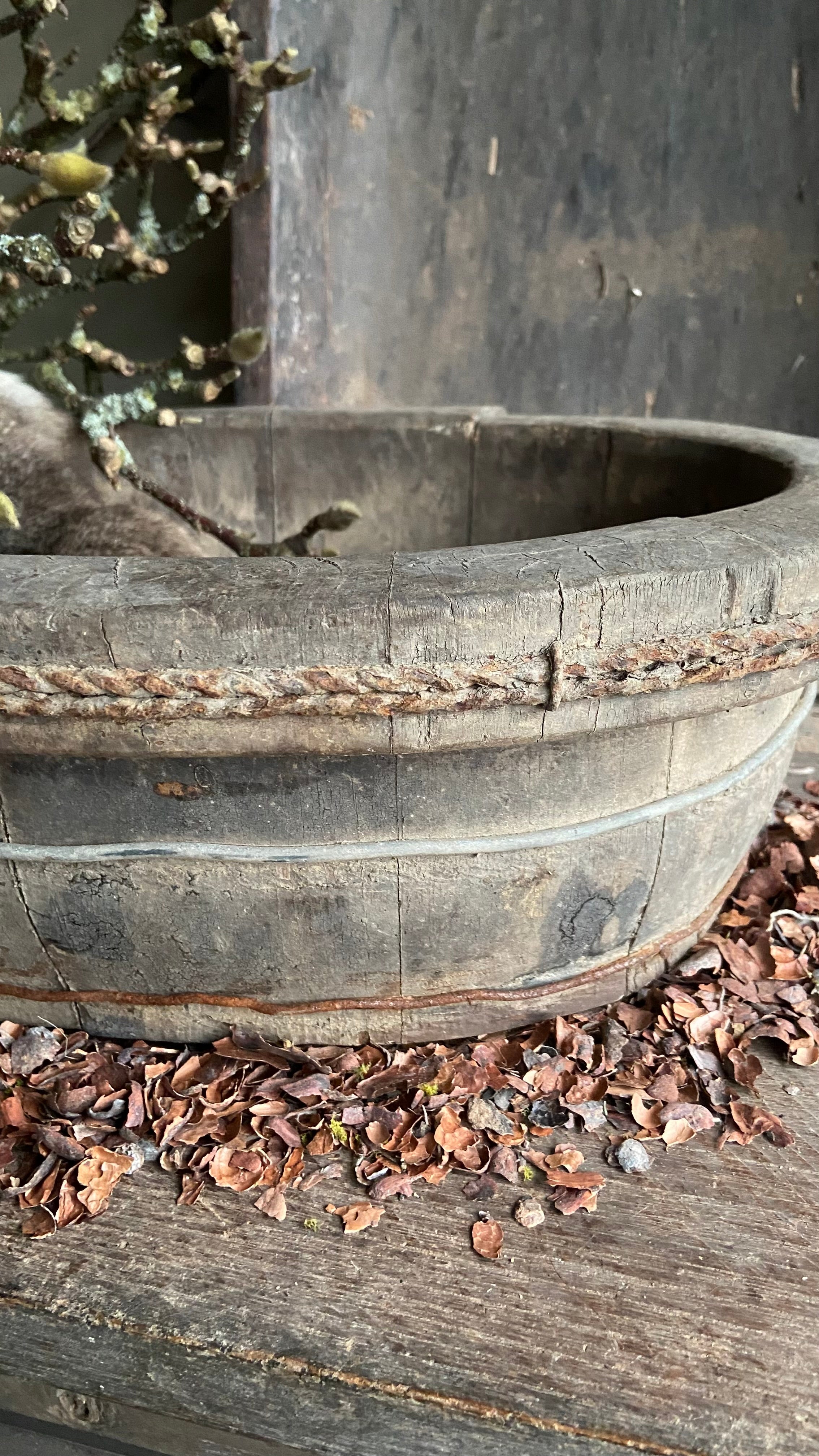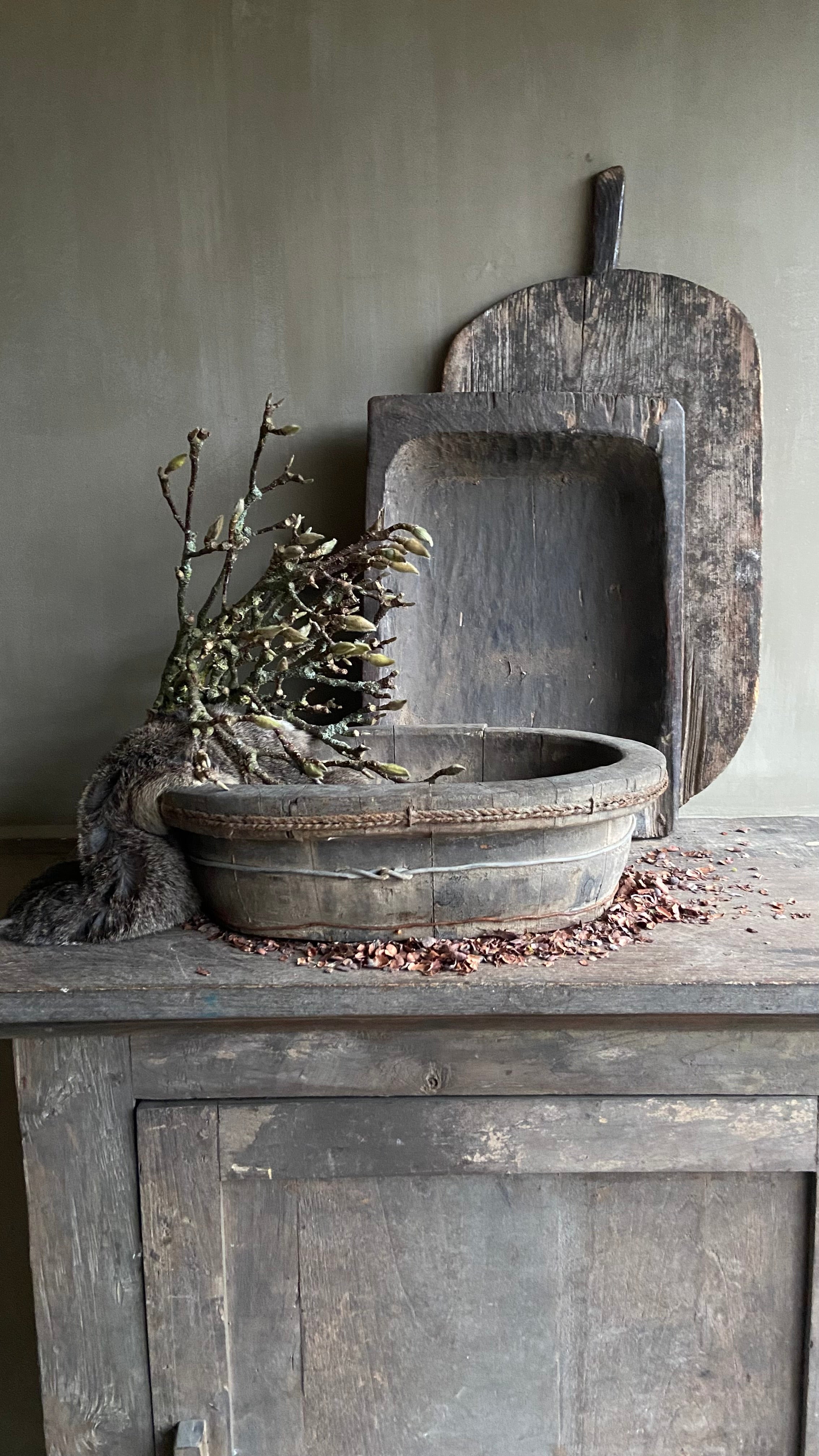 De olijfbak past perfect in een landelijk, sober of industrieel interieur. Mooi als decoratief object op een tafel, dressoir of schouw, gevuld met een windlicht, kaarsen of gedroogde takken. Ook los neergezet komt hij goed tot zijn recht.