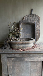 Deze oude houten olijfbak is een prachtig, doorleefd exemplaar met een authentieke uitstraling. Oorspronkelijk gebruikt bij het verwerken van olijven, draagt hij een uniek stukje geschiedenis met zich mee. De verweerde houtstructuur en natuurlijke veroudering zorgen voor een robuuste en karaktervolle look.