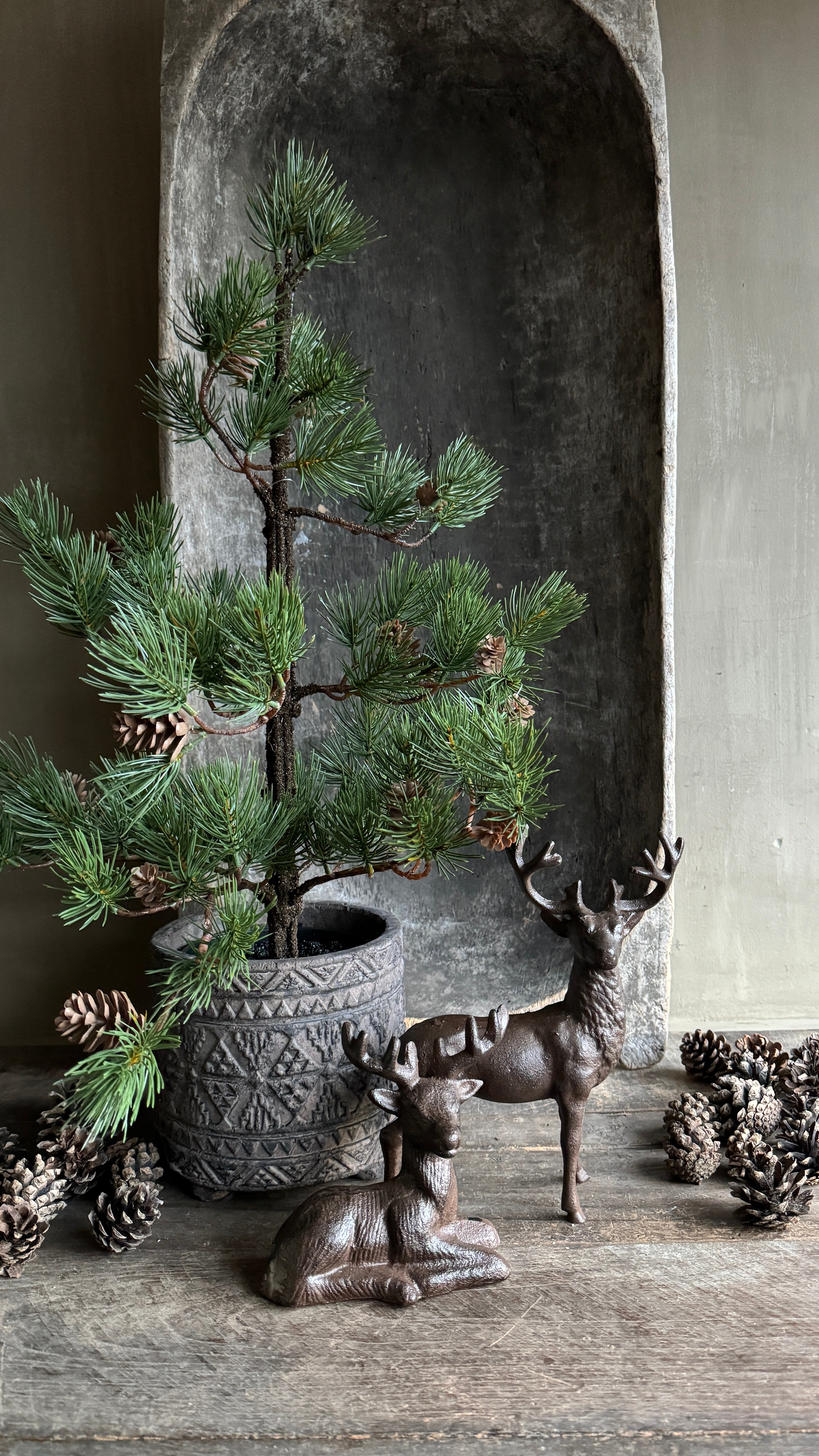 Este hermoso juego de dos ciervos de hierro fundido, uno de pie y otro acostado, será el centro de atención de las fiestas. Con su clásico color marrón y sus sutiles vetas negras aportan un ambiente cálido y nostálgico a tu interior. ¡Perfecto para una mesa, repisa de la chimenea o debajo del árbol de Navidad!
