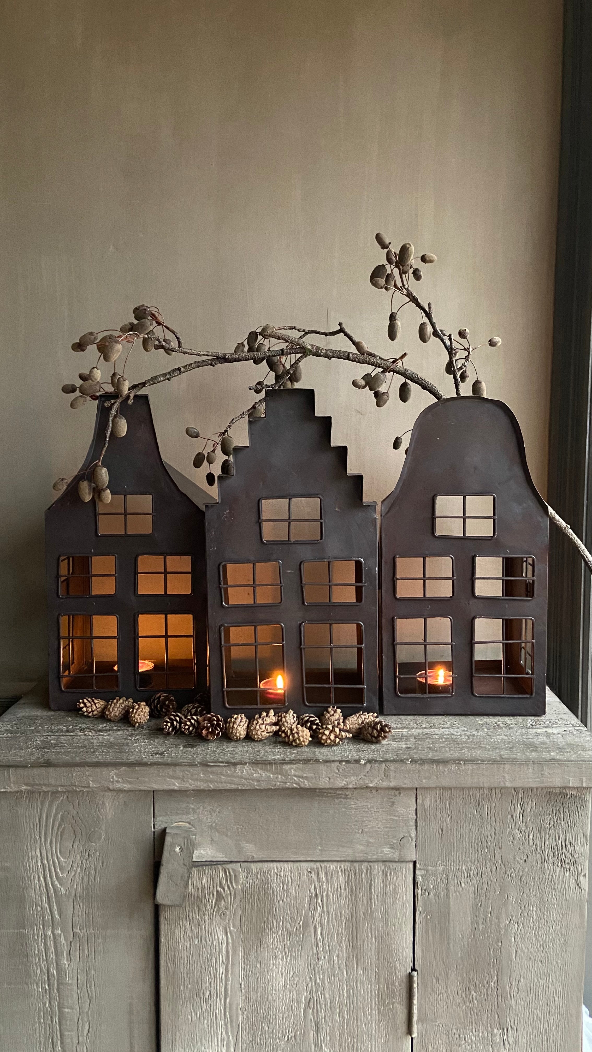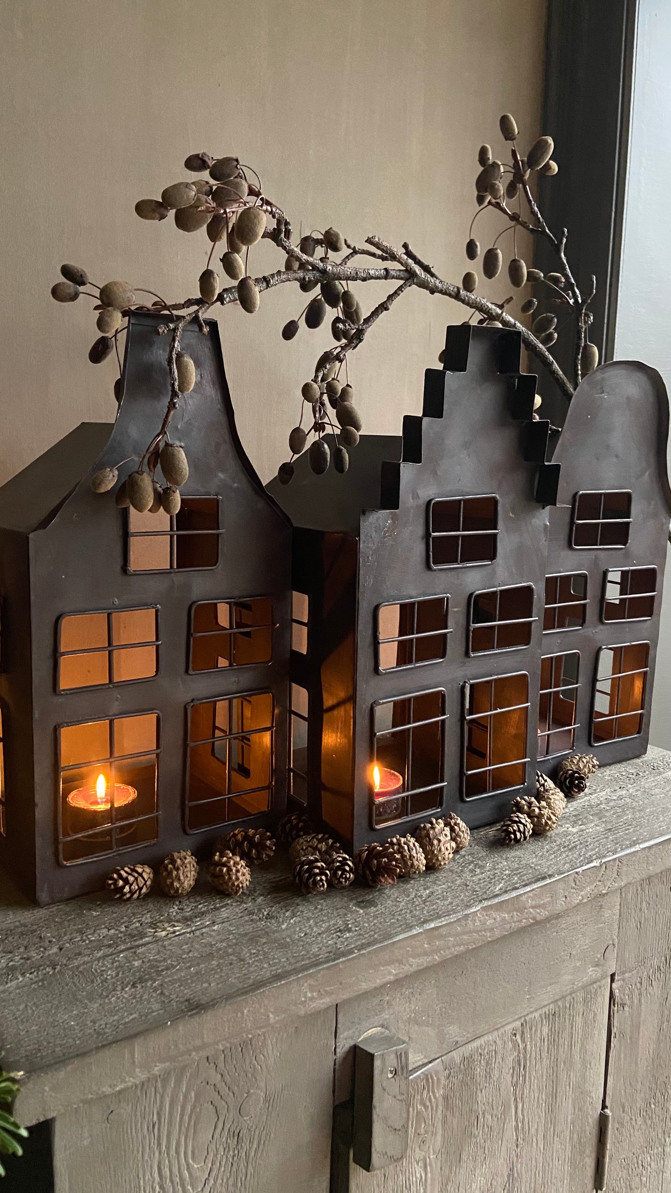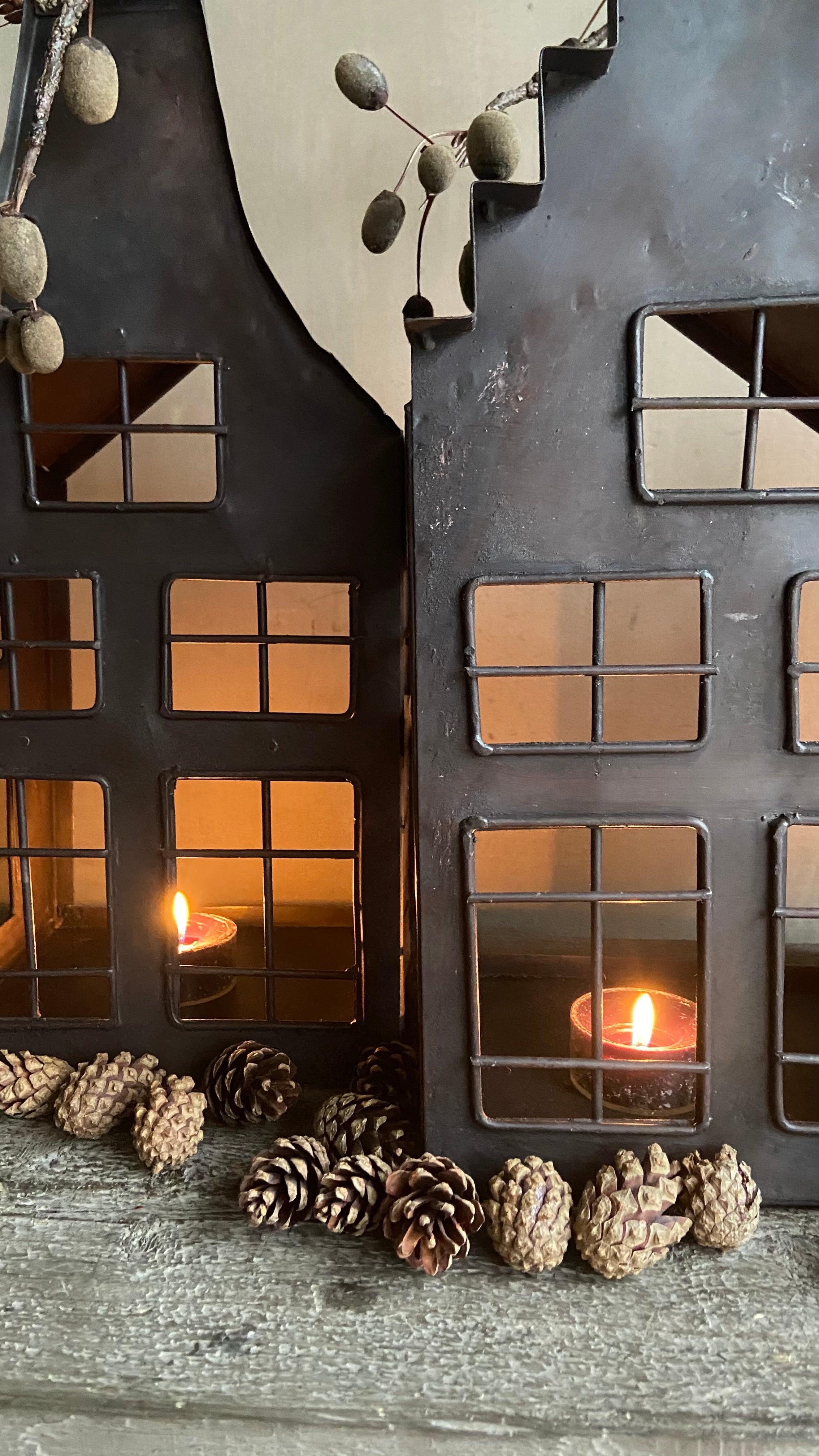 ¡Descubre nuestras encantadoras Casas de Metal! Estas lindas casas están inspiradas en antiguas casas de canal y añaden un toque de nostalgia a tu interior. Pero eso no es todo: cada casa tiene una vela de té que creará un brillo acogedor en su hogar.