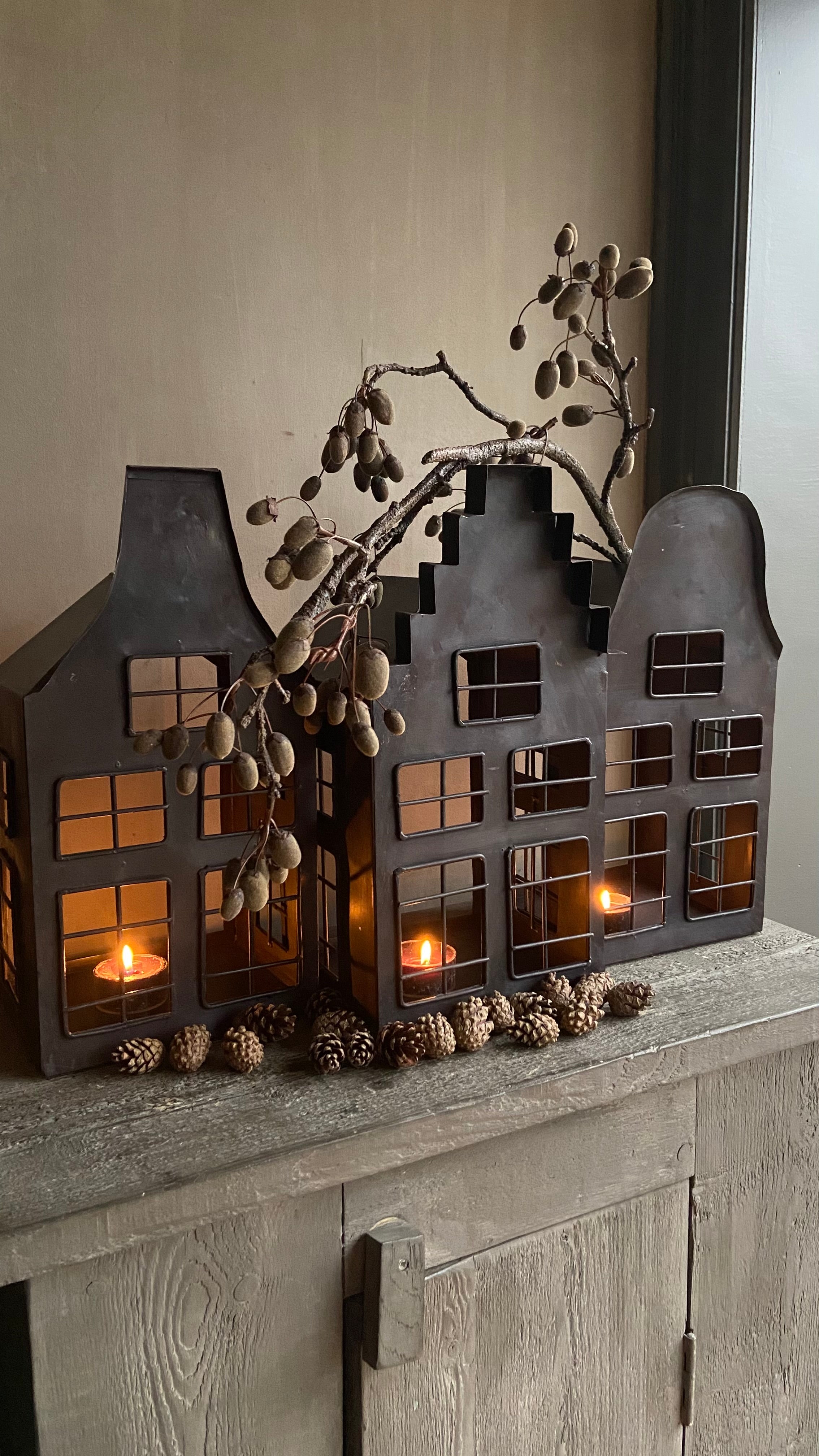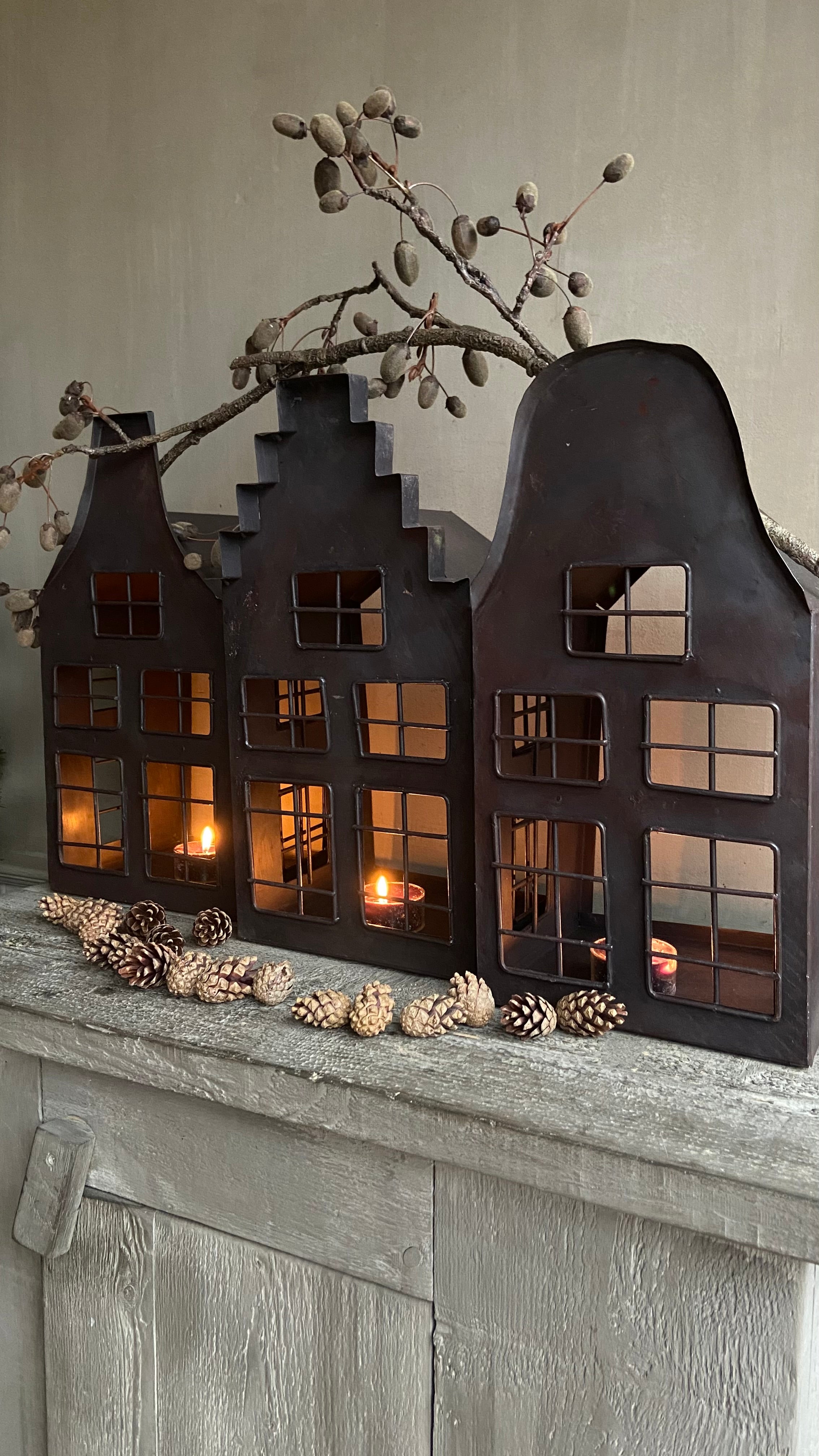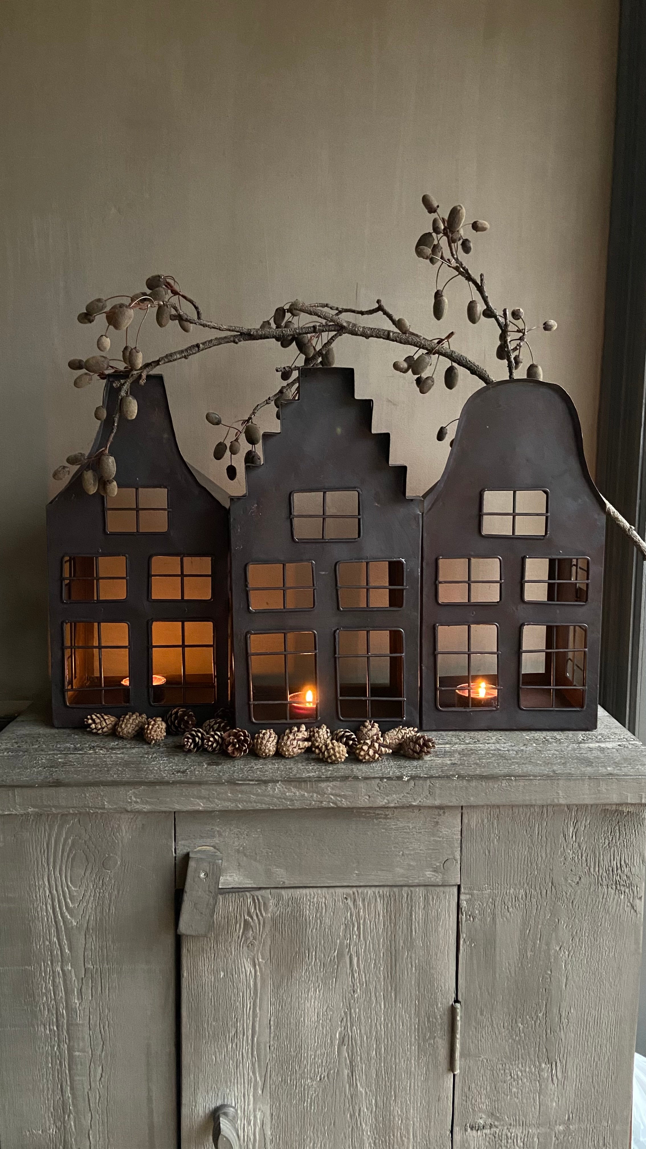 ¡Descubre nuestras encantadoras Casas de Metal! Estas lindas casas están inspiradas en antiguas casas de canal y añaden un toque de nostalgia a tu interior. Pero eso no es todo: cada casa tiene una vela de té que creará un brillo acogedor en su hogar.