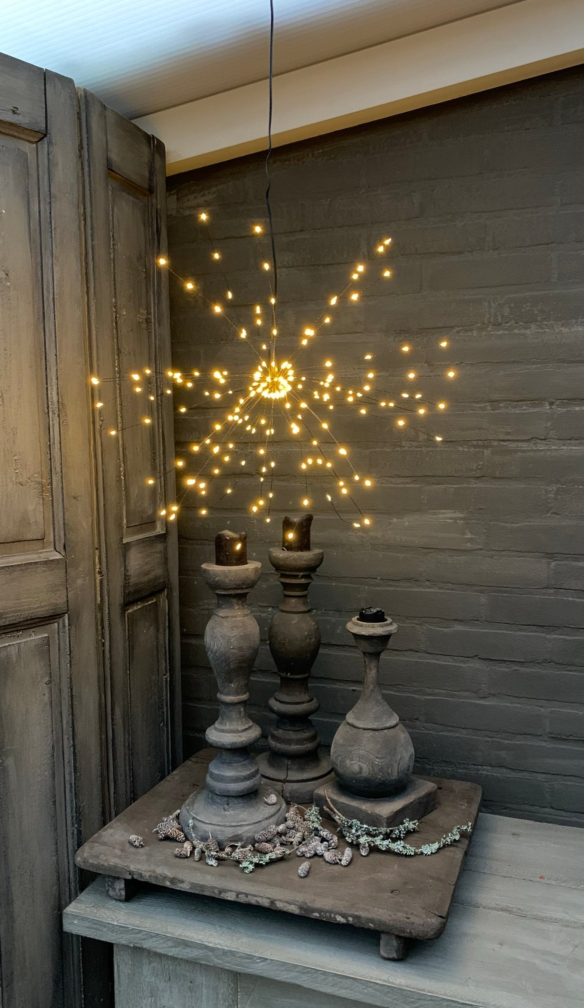 - Cuelga la estrella LED y despliega las cuerdas para que adquiera una forma redonda.