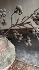 Met deze grote fluwelen tak van 100 cm haal je direct een stoere en ingetogen sfeer in huis. Door de extra lengte en de vollere bessen oogt de tak rijk en natuurlijk, perfect om een grote vaas of kruik mee te vullen.
