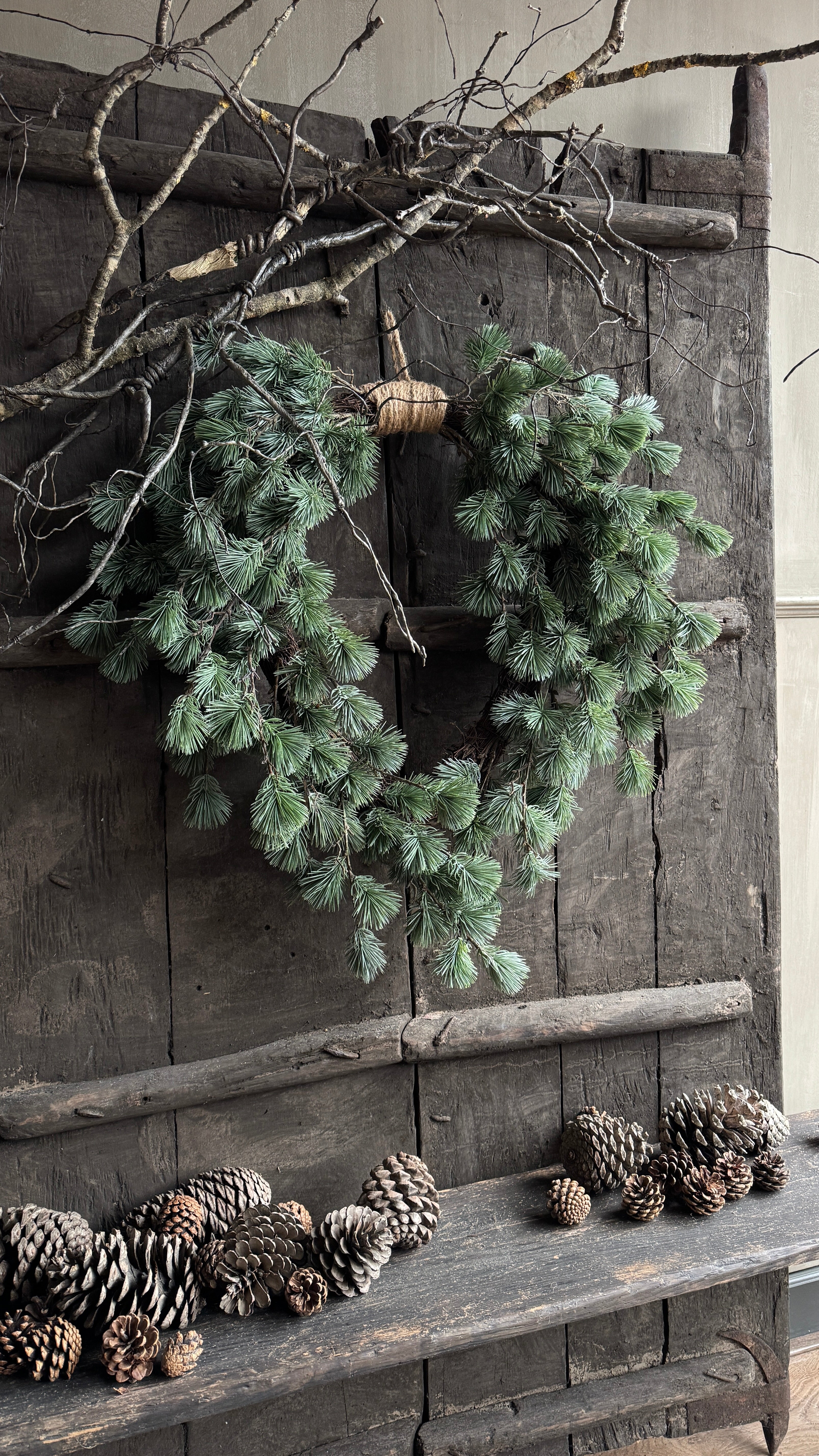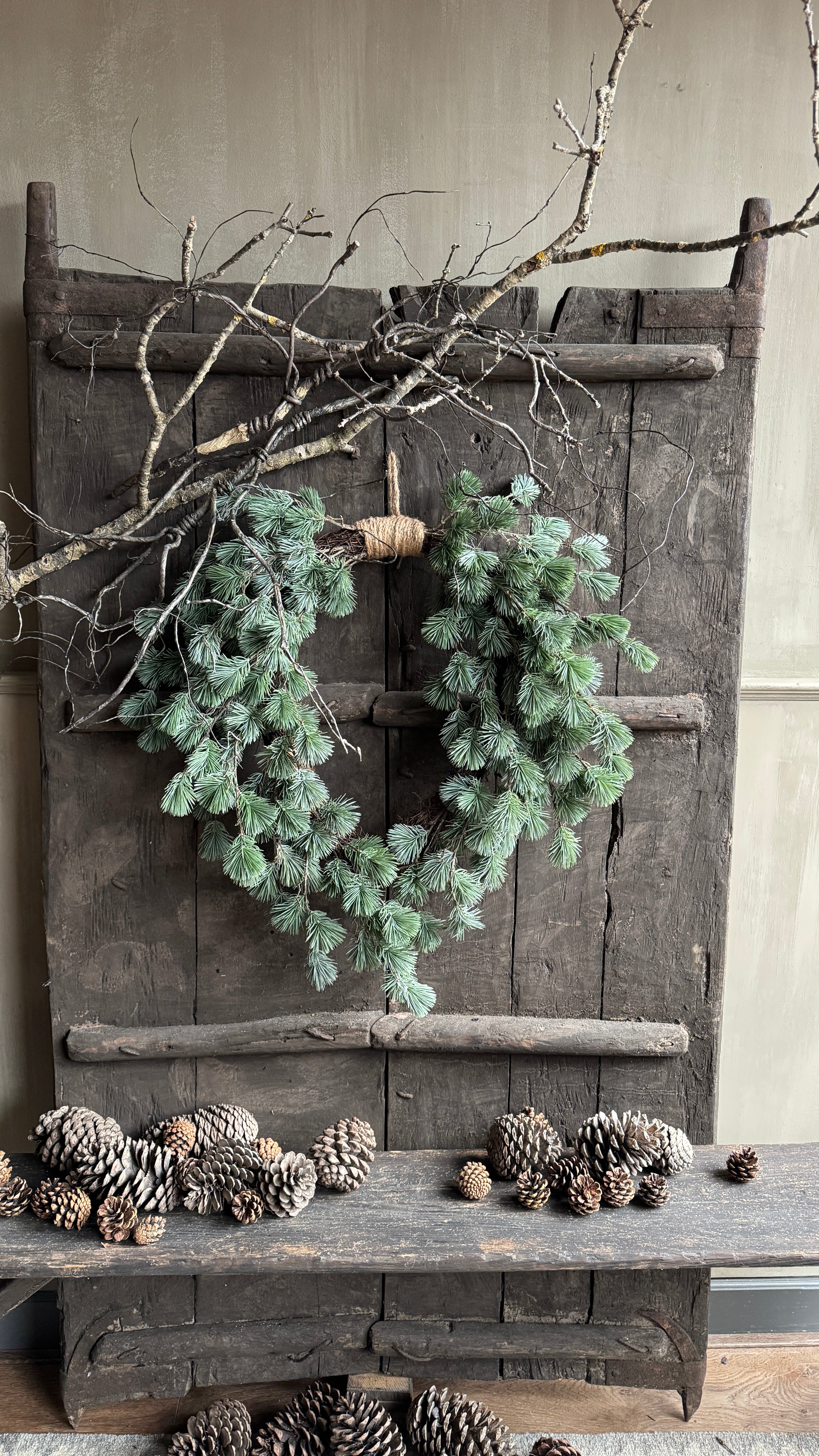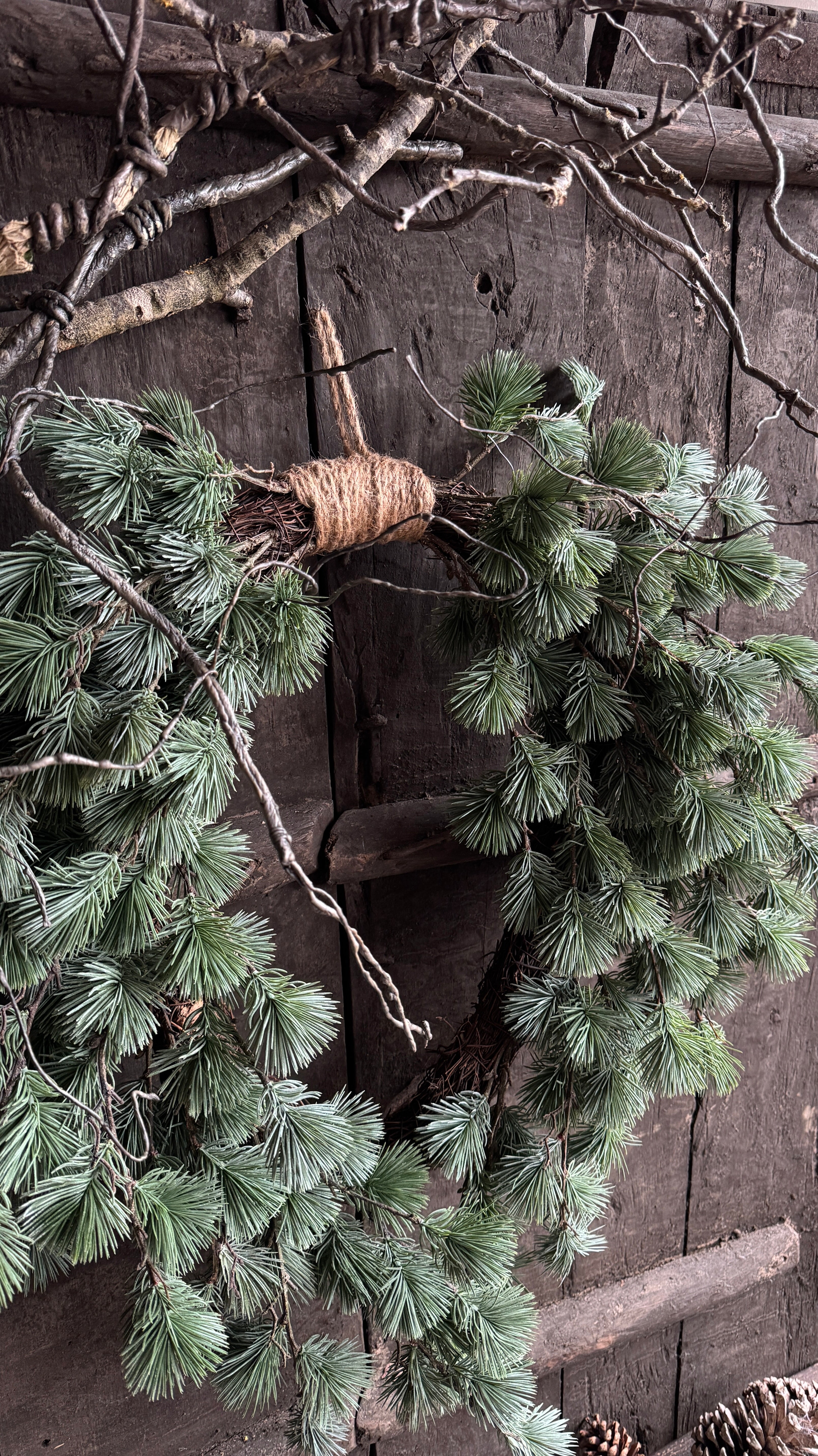 Deze kunst Larix krans met touw is een prachtige blikvanger voor ieder sober en landelijk interieur.