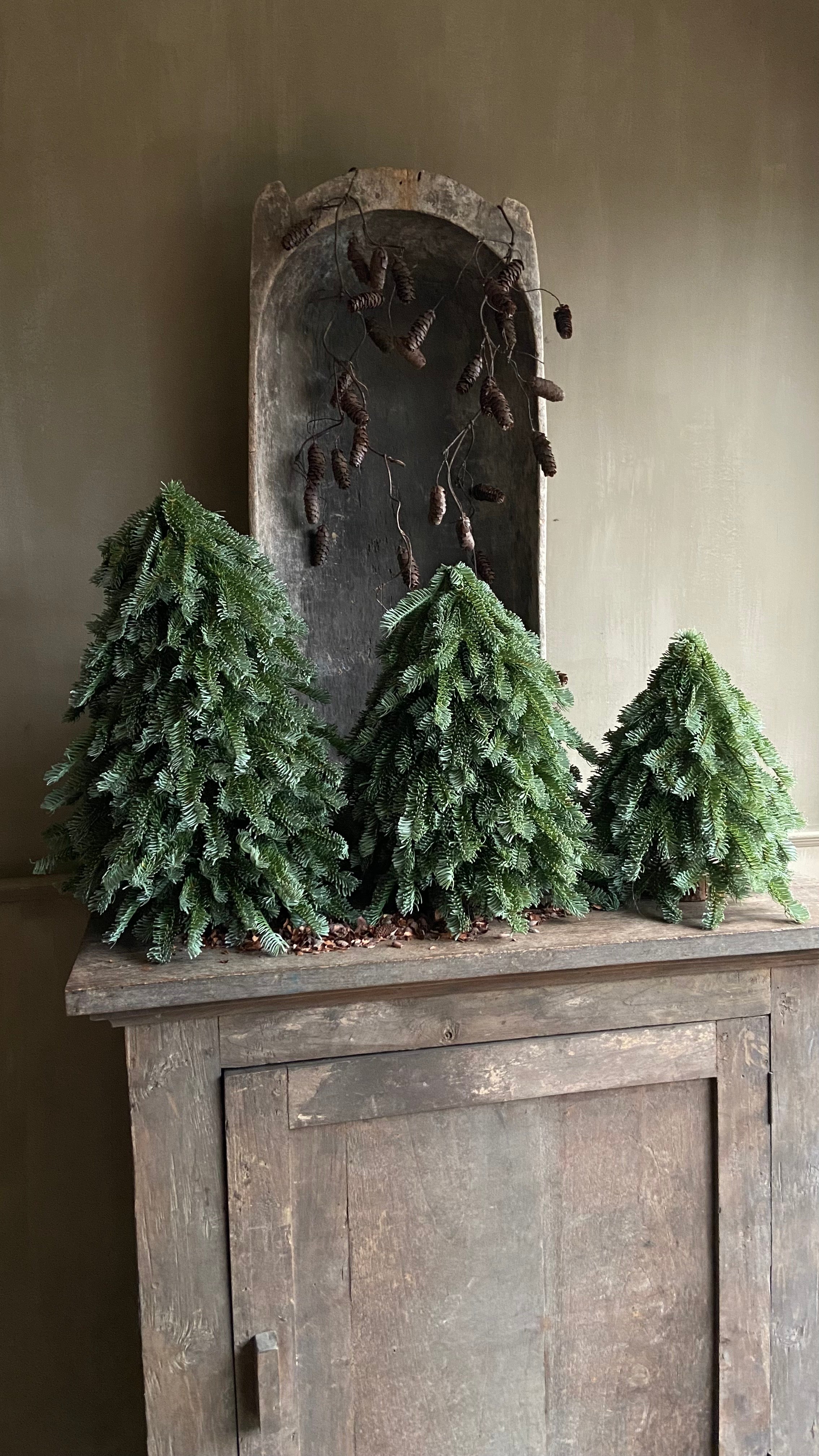 De bomen zijn gemaakt van stevige kunsttakken en staan elk op een houten voetje. Ze zijn nauwelijks van echt te onderscheiden en blijven jaar na jaar mooi. Een ideaal alternatief voor echte takken – zonder naalden op de vloer.