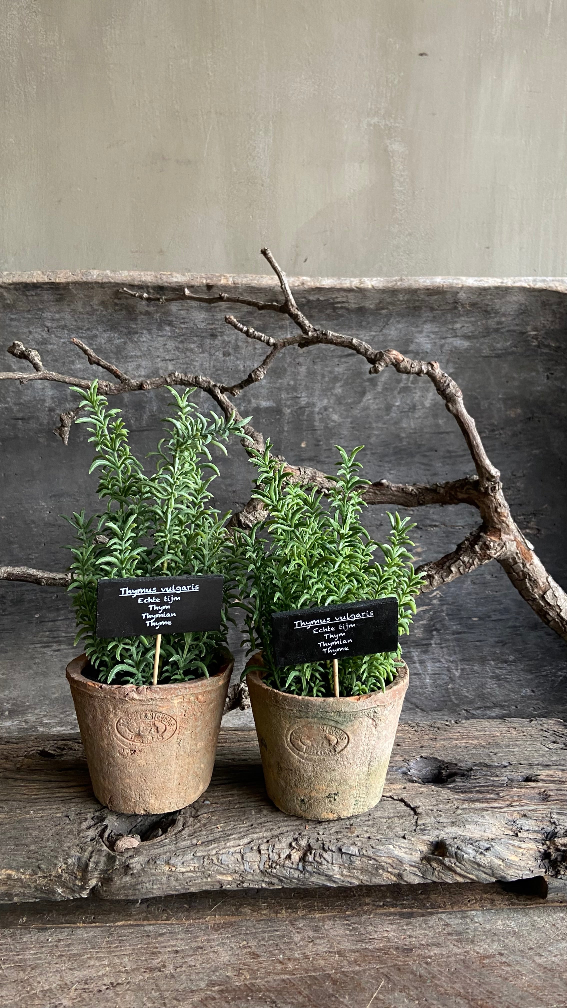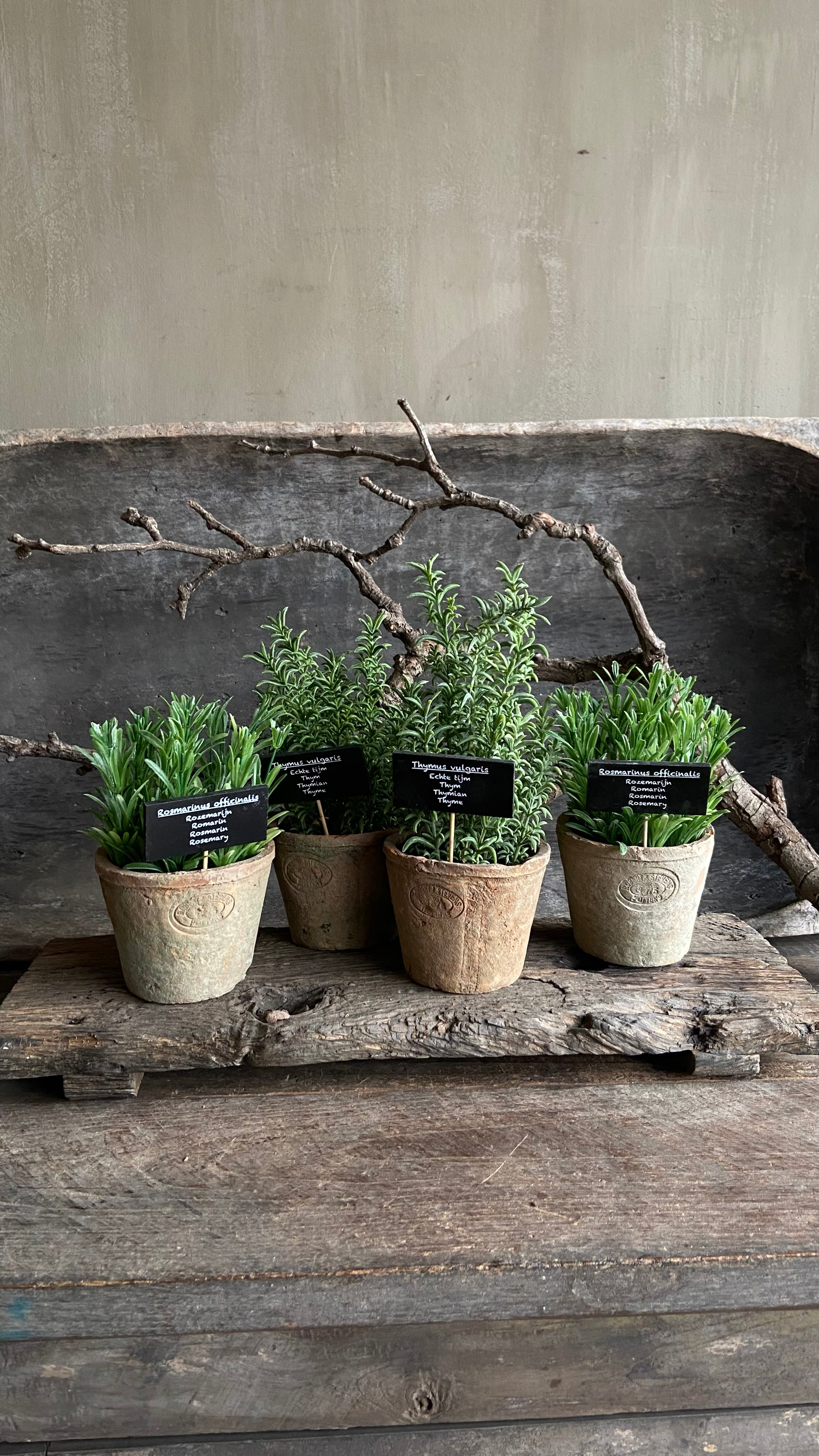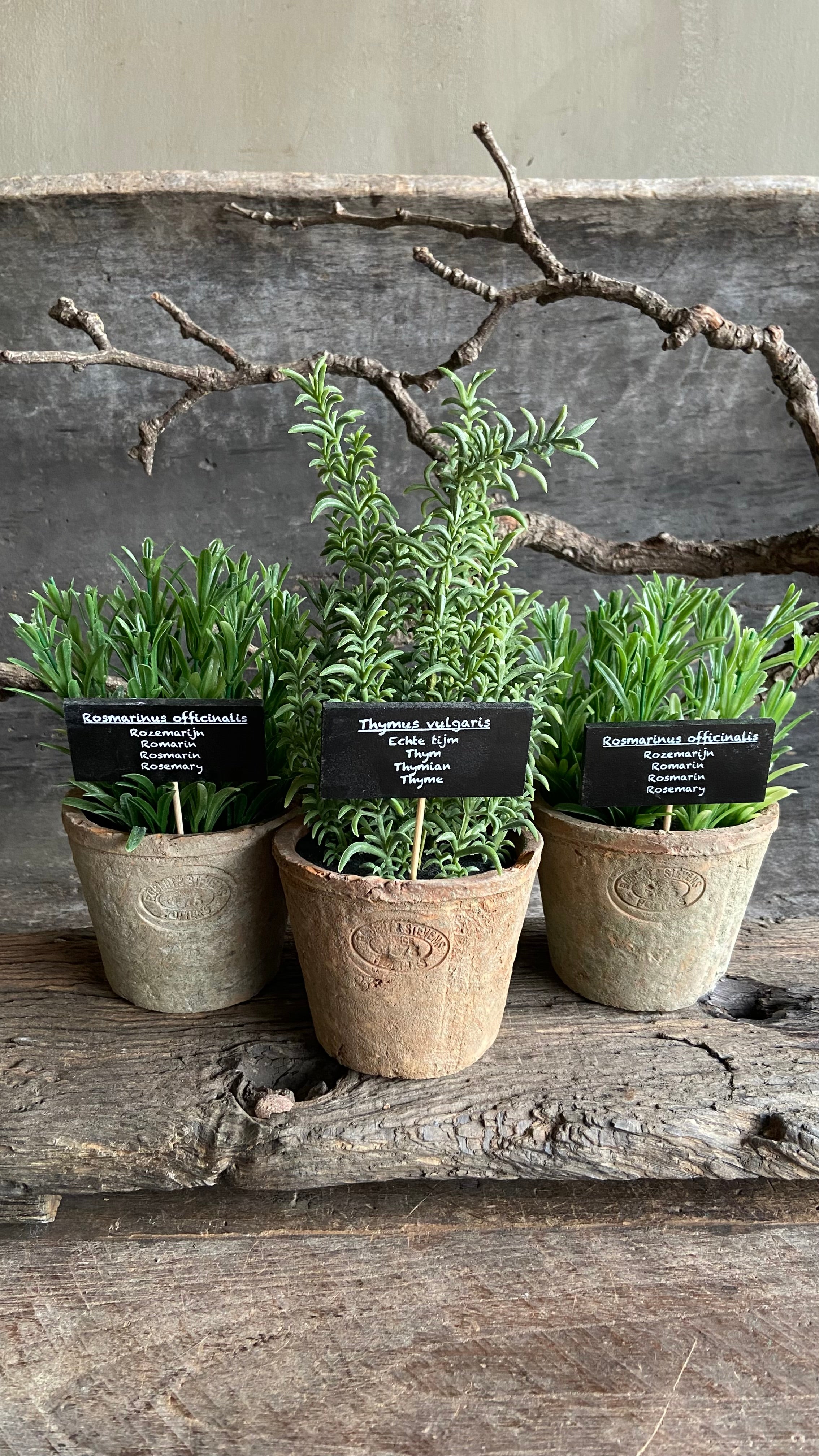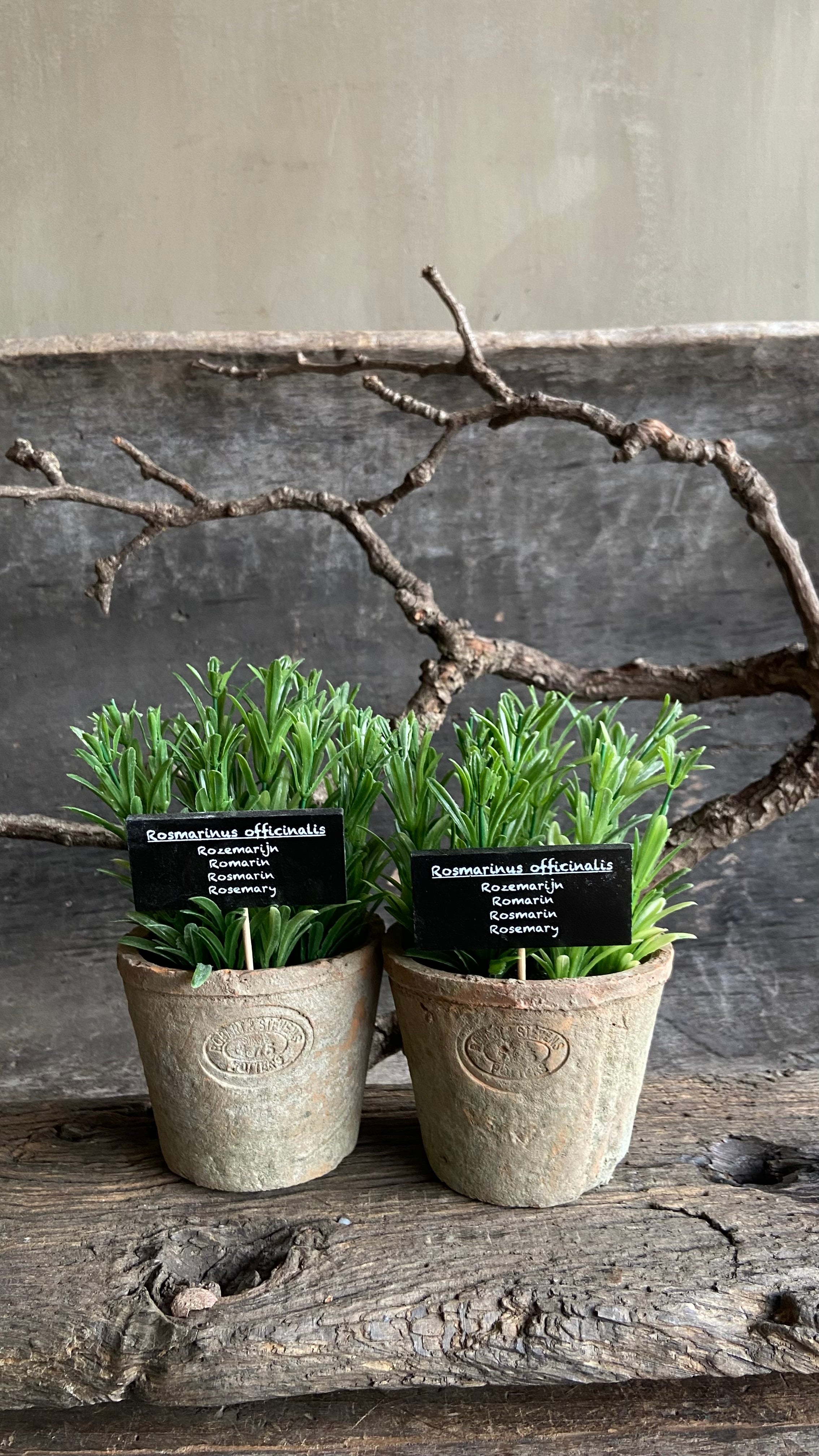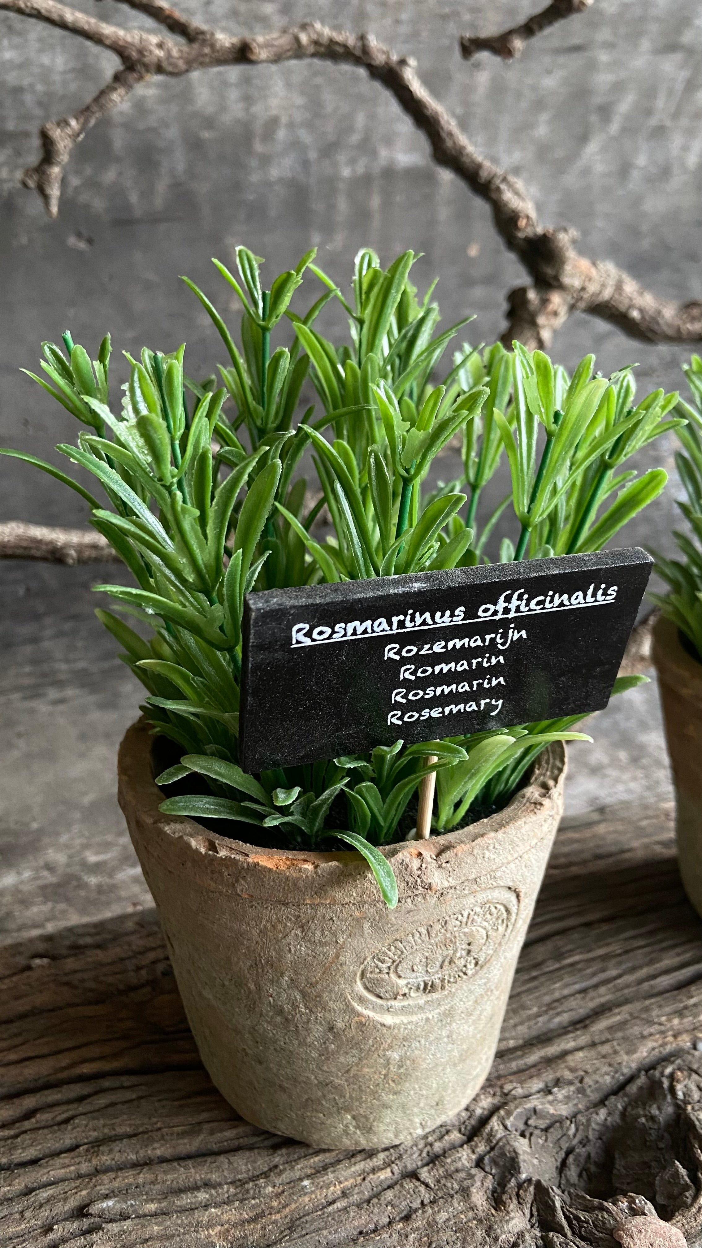 Kunstplantje in verweerd potje – Rozemarijn of Thijm