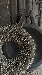 - La corona está hecha a mano con nueces de haya.