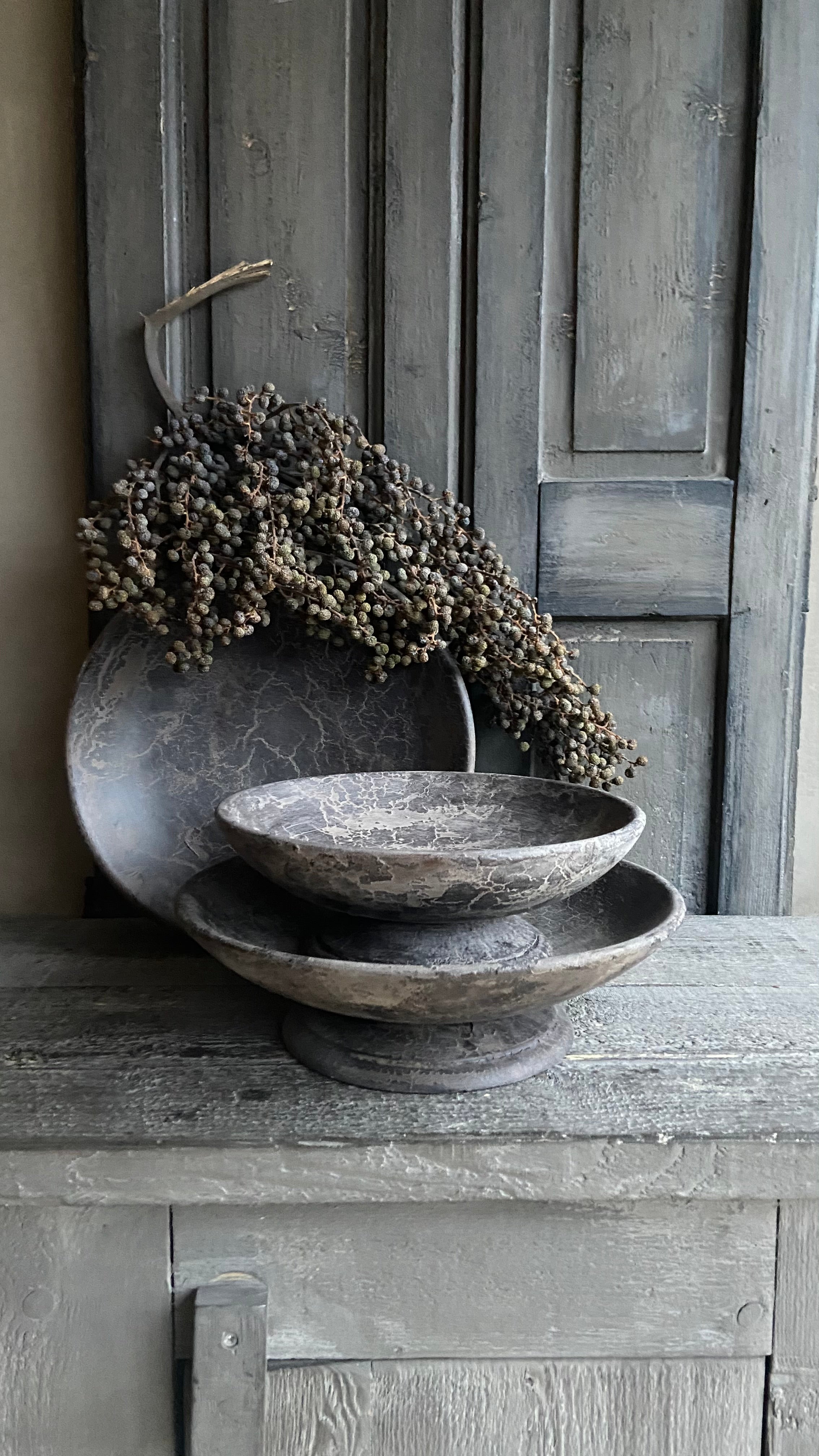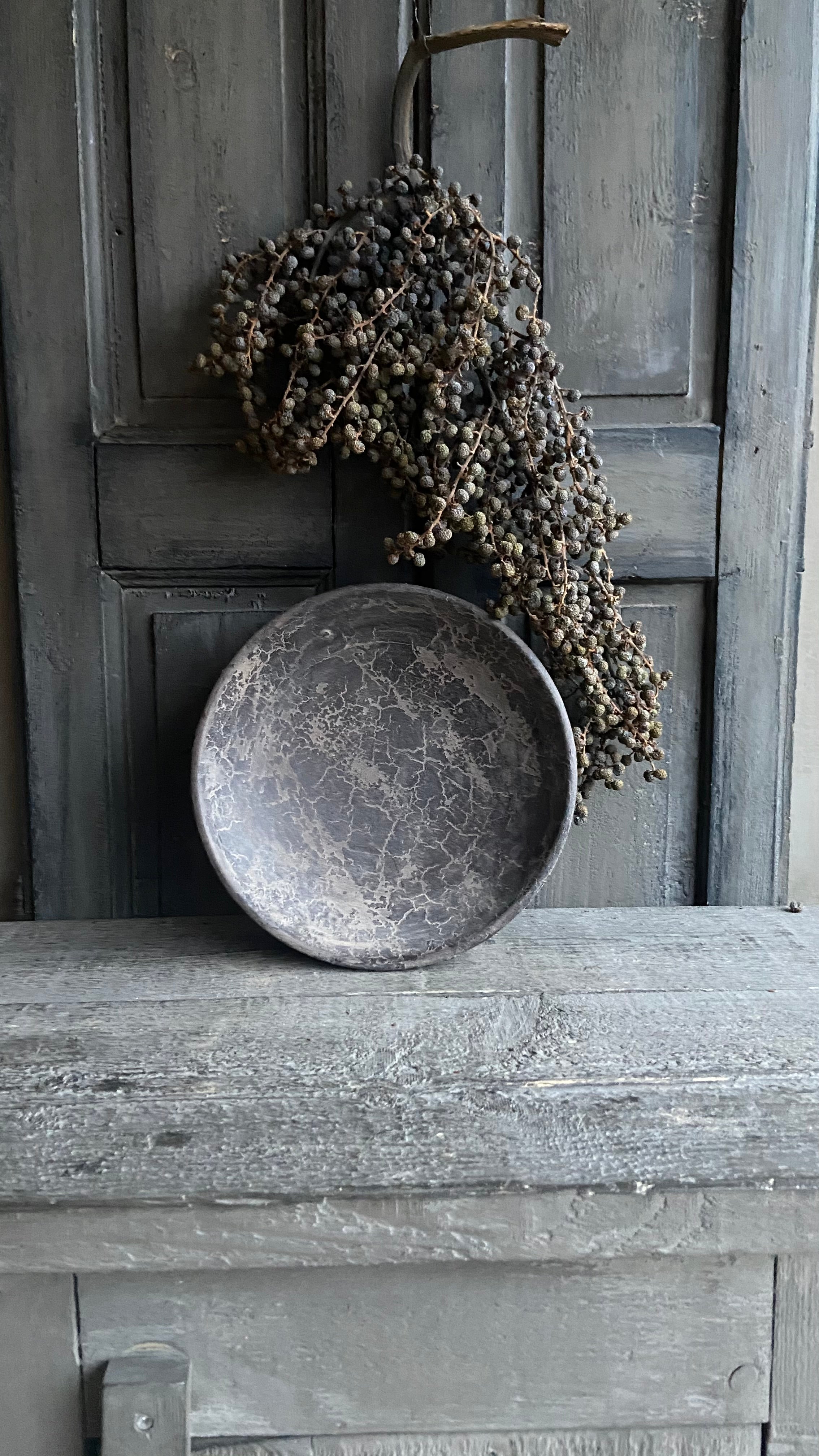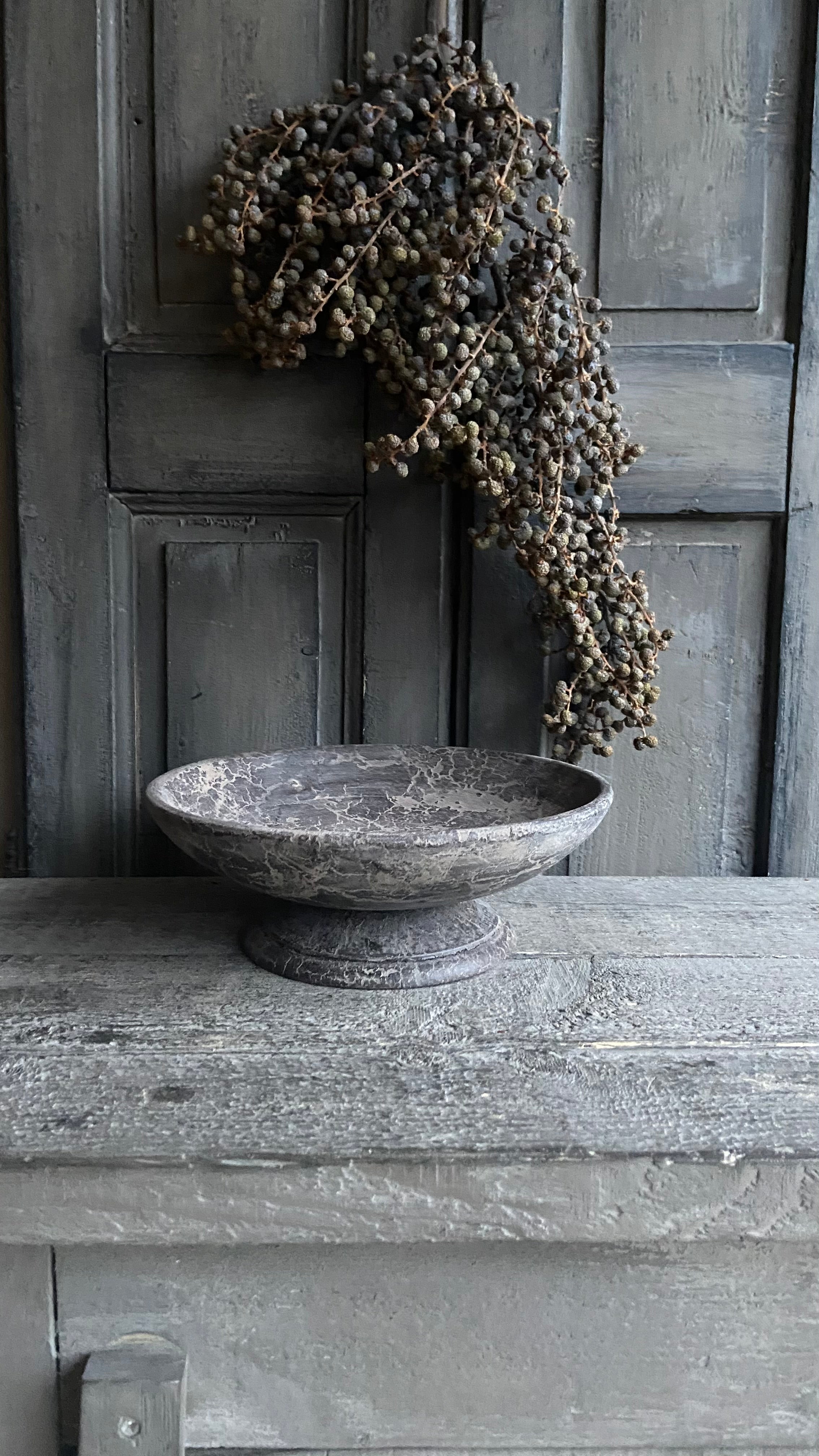 - El cuenco de madera tiene un aspecto muy desgastado que crea un aspecto sobrio.