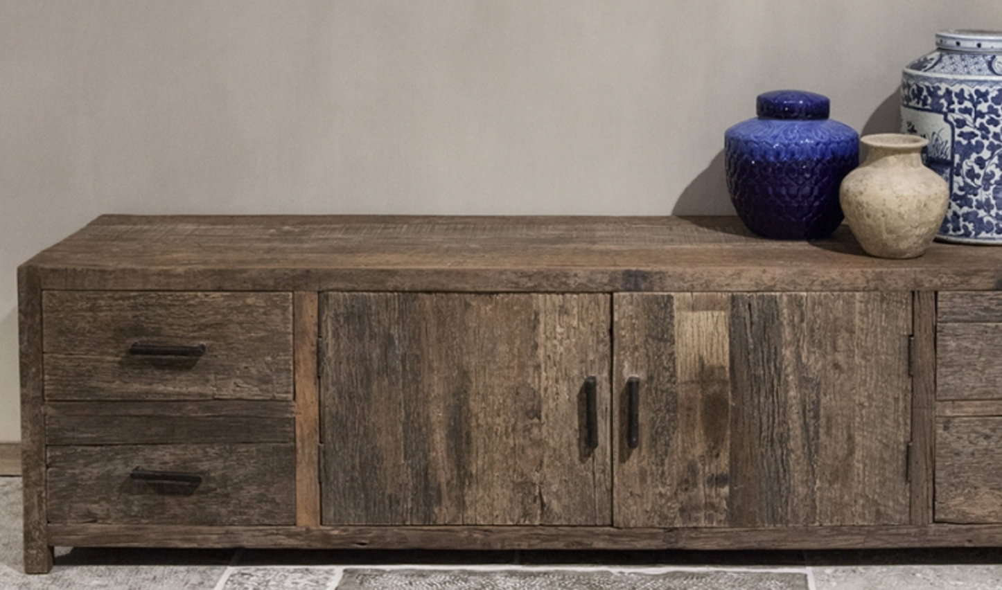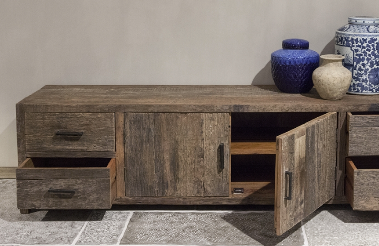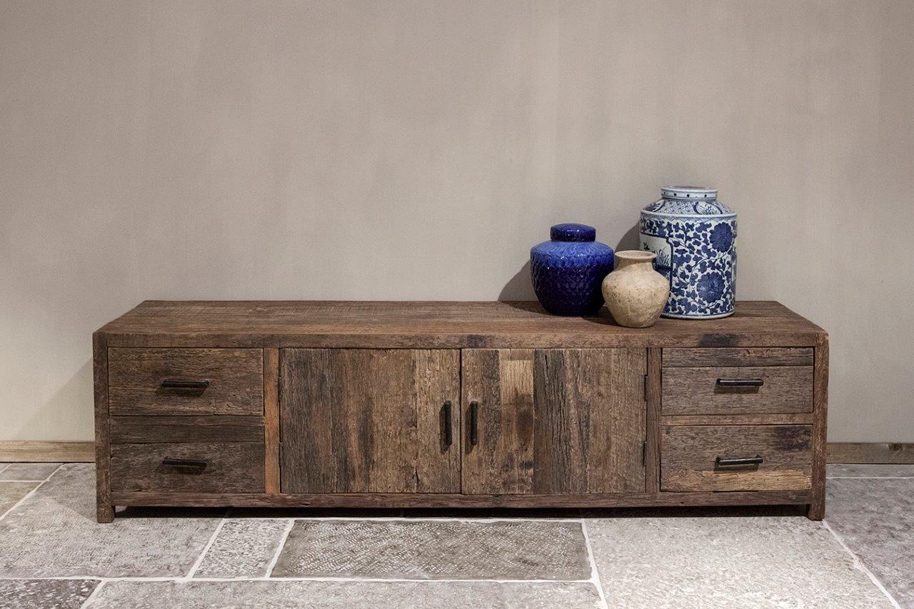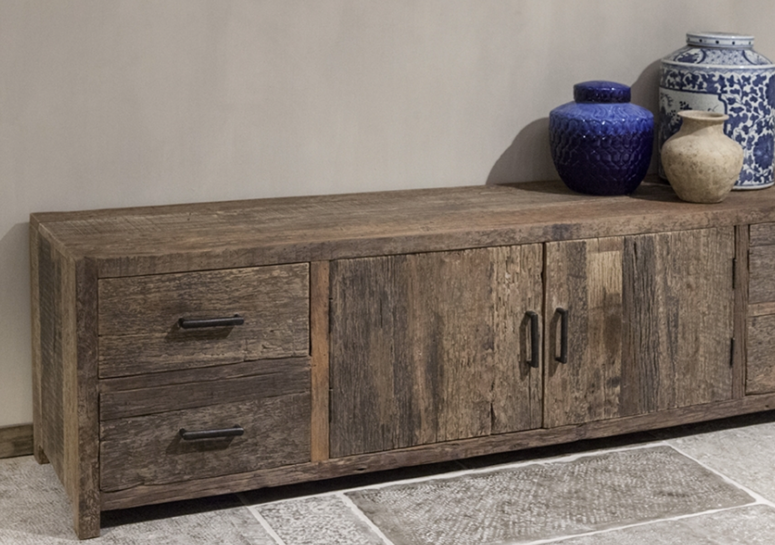 - La commode TV Prague est fabriquée en vieux bois magnifiquement patiné et présente un aspect rustique