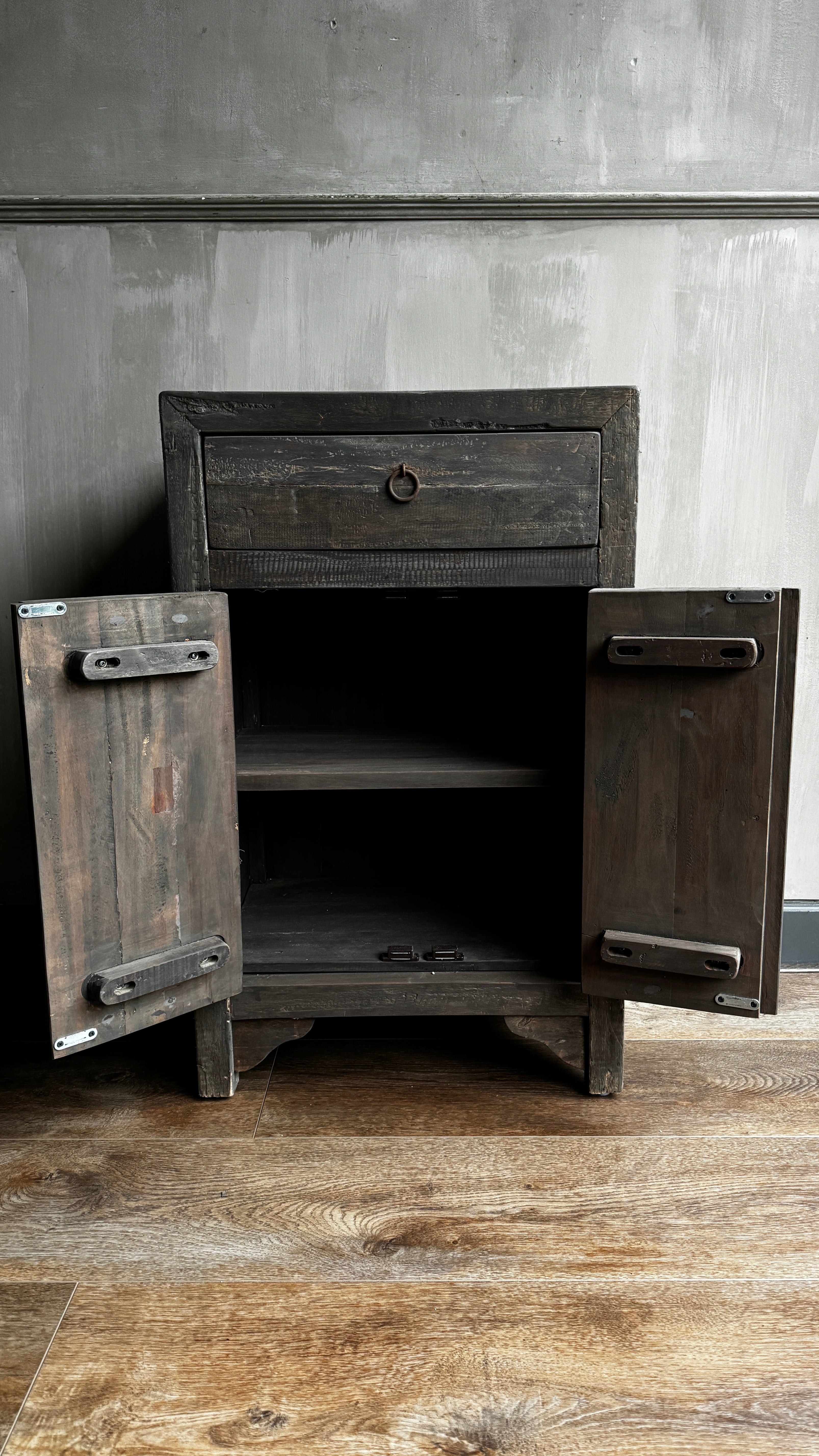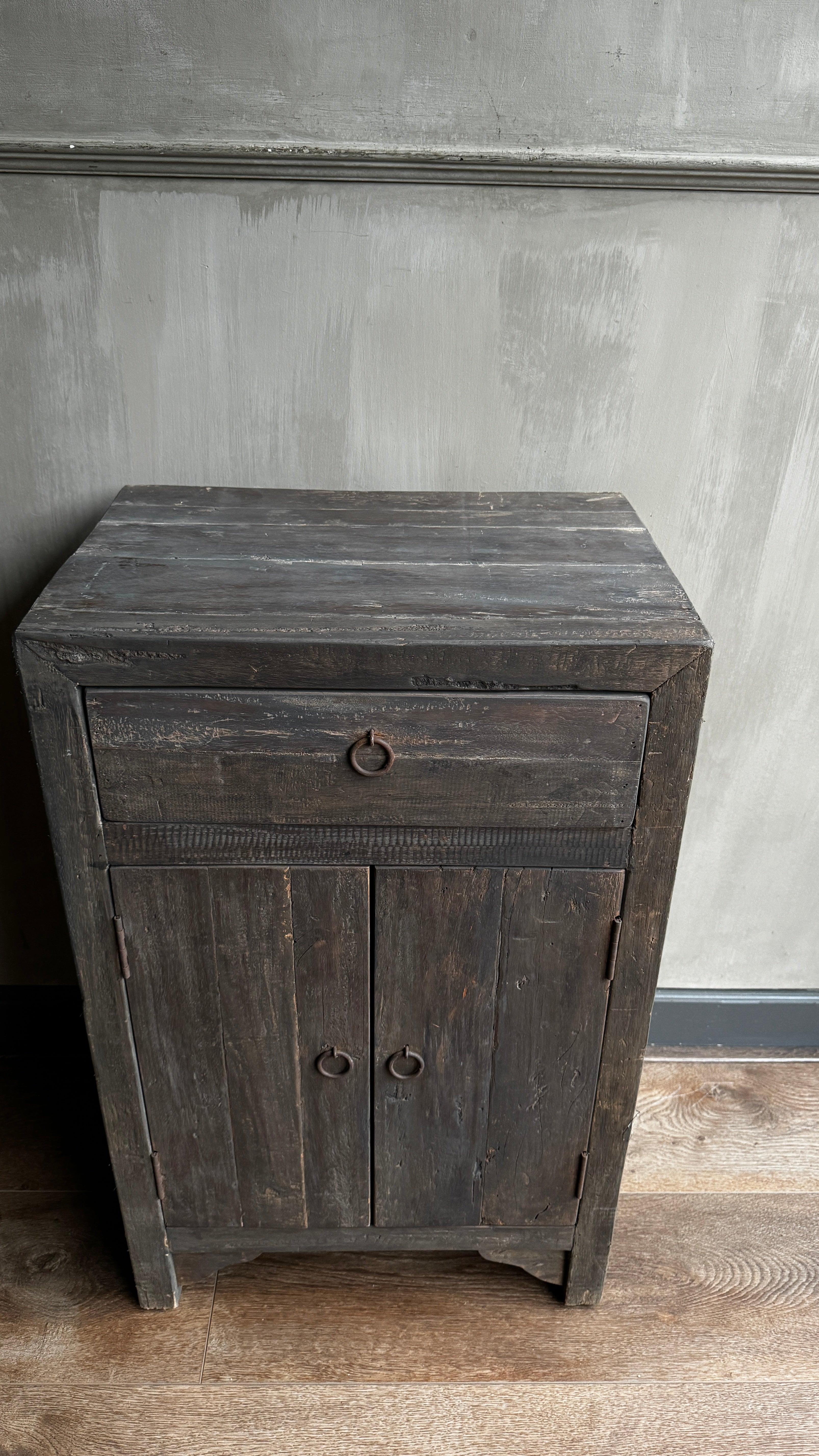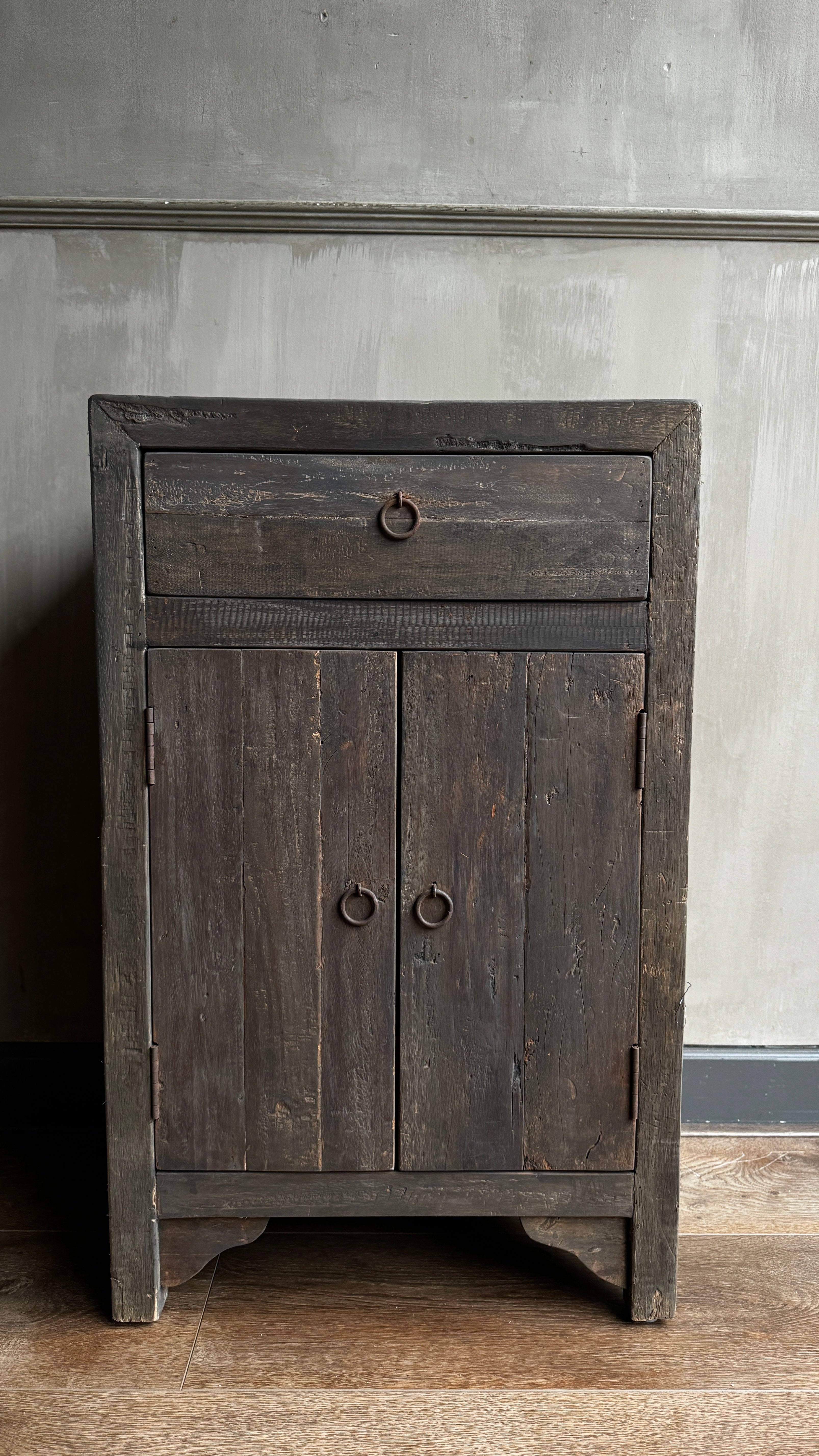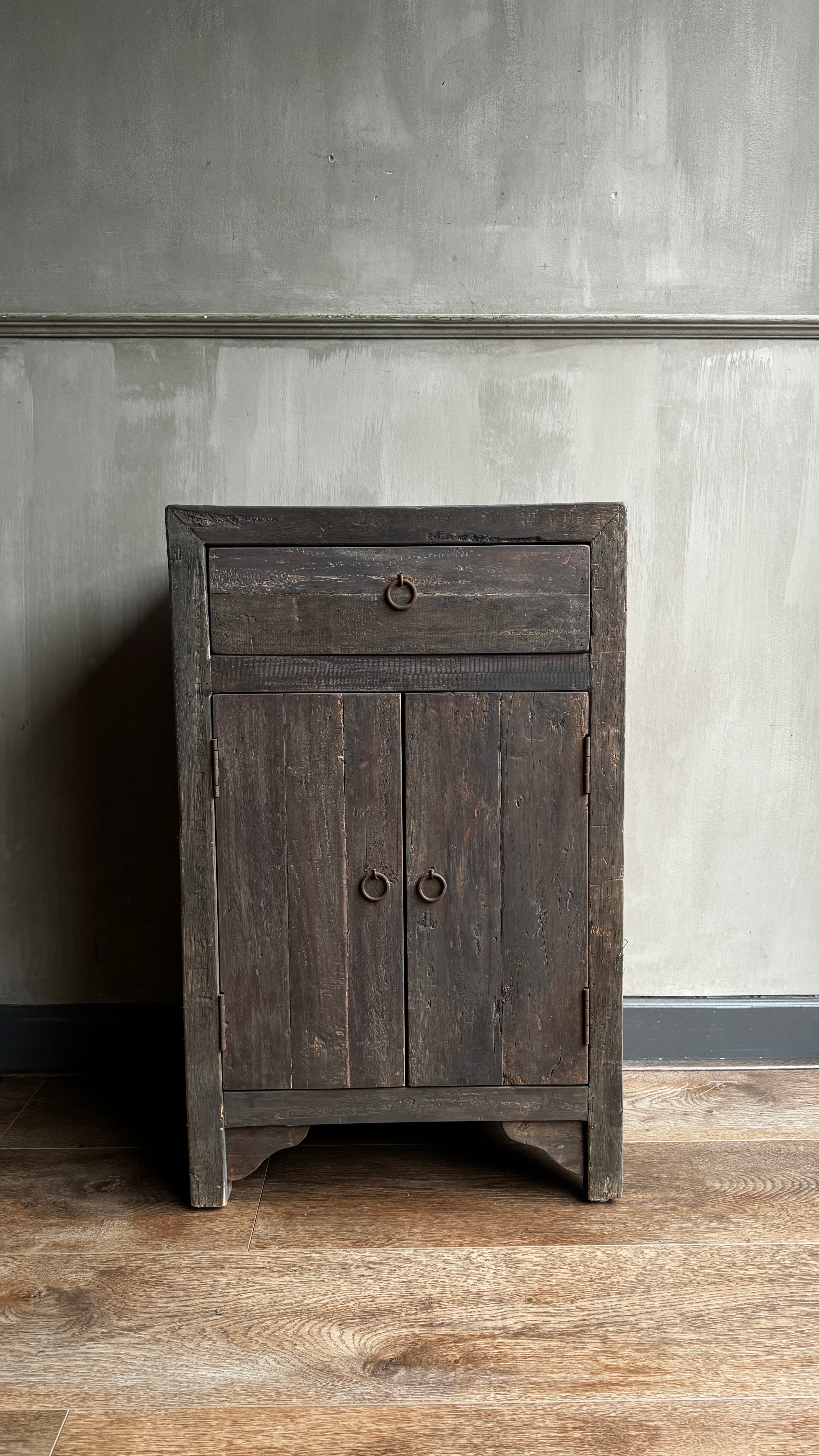 L'armoire a une dimension de hauteur 80 cm, largeur 50 cm et la profondeur 35 cm, ce qui le rend idéal pour diverses applications dans la maison. Il dispose d'un tiroir en haut et de deux portes pratiques en dessous, offrant un grand espace de rangement pour divers articles. Sa taille compacte et pratique le rend parfait pour le couloir comme meuble de rangement élégant pour les clés et autres accessoires, ou comme table de chevet à côté du lit. Cette armoire peut également servir de charmant espace de rangement pour les petits objets dans le salon.