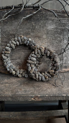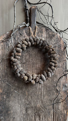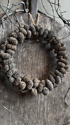 Met de hand gemaakt van echte dennenappels en stevig gebonden op een ring. De natuurlijke materialen geven deze krans een verweerde en rustieke uitstraling.