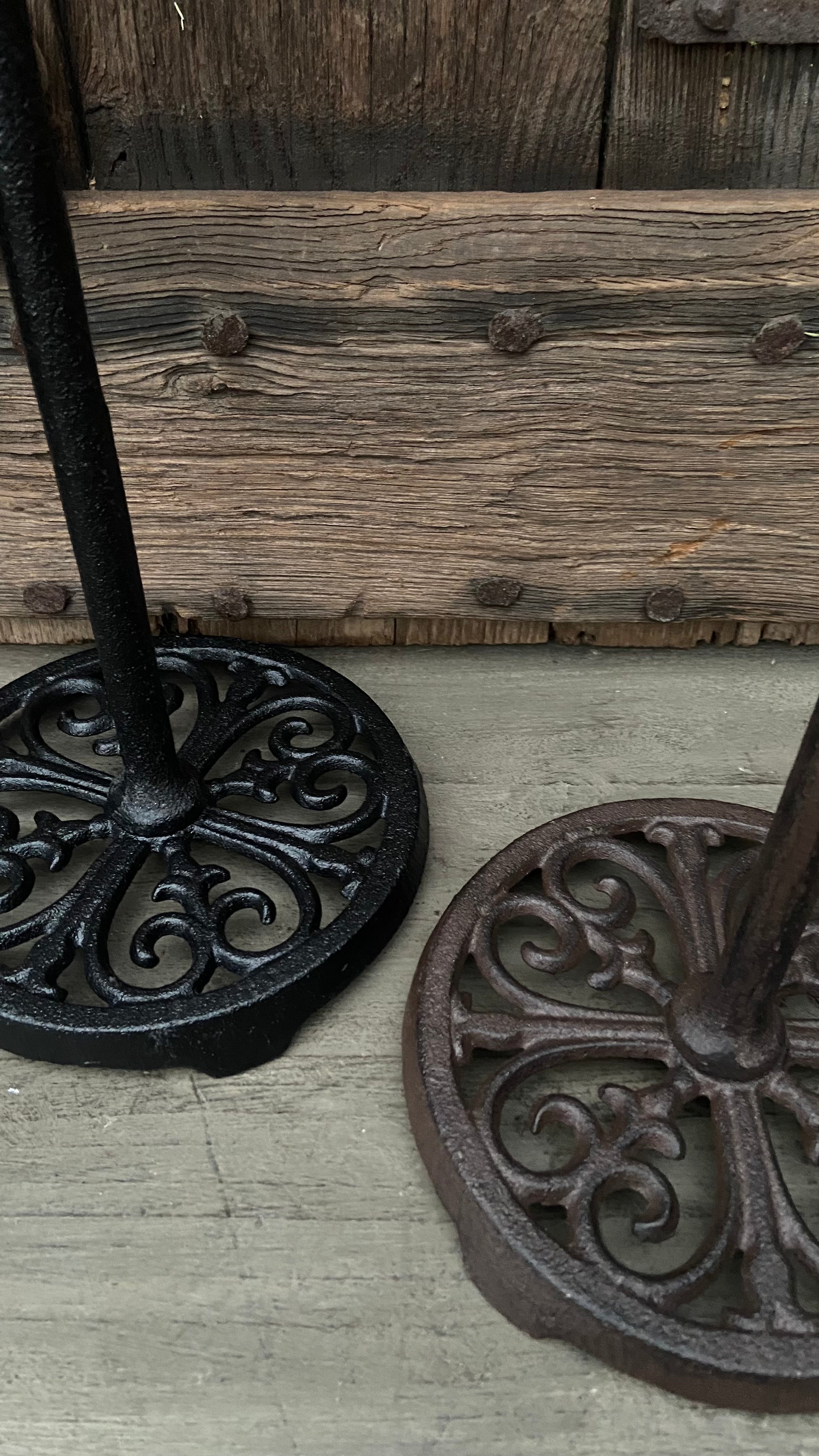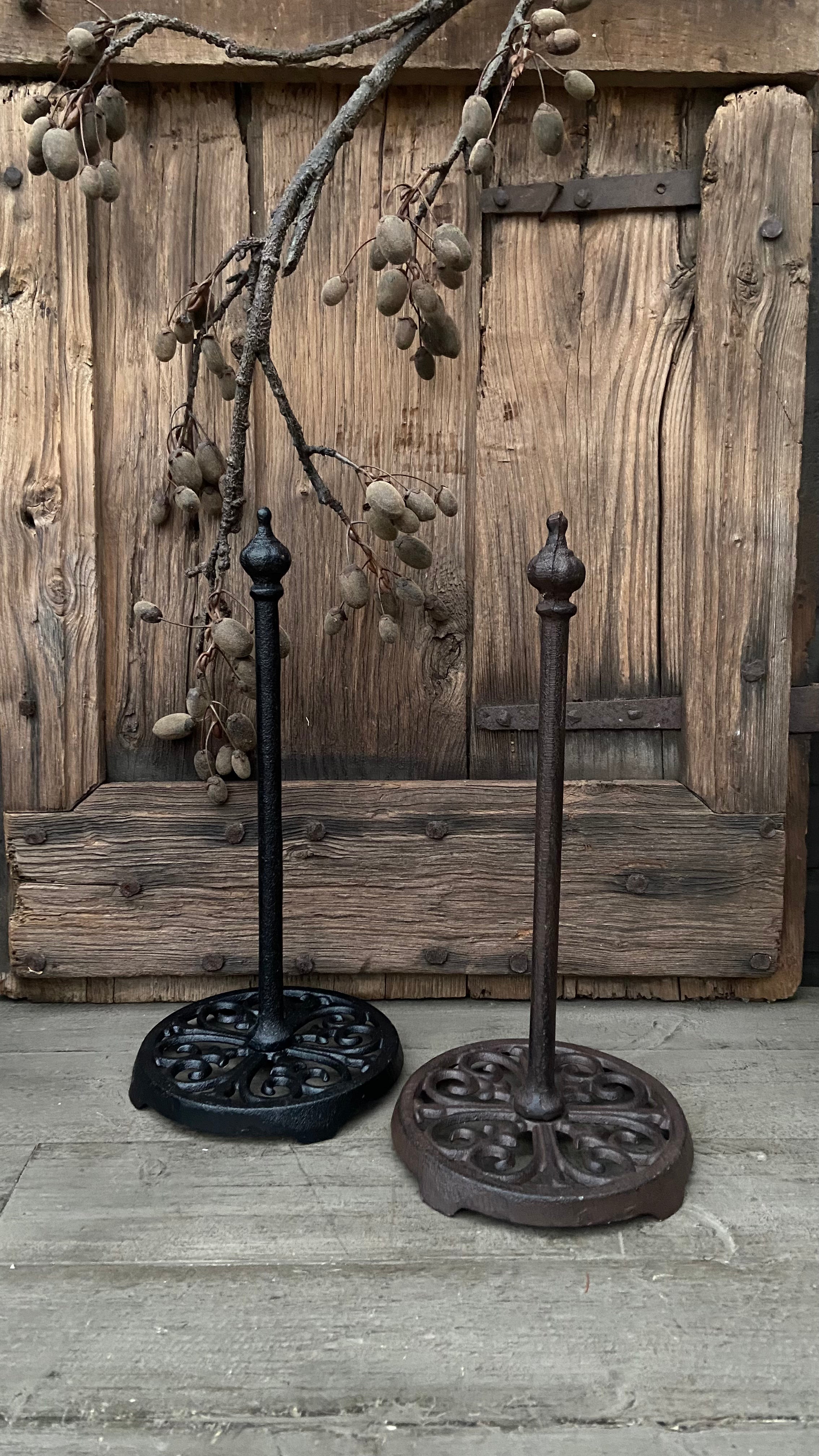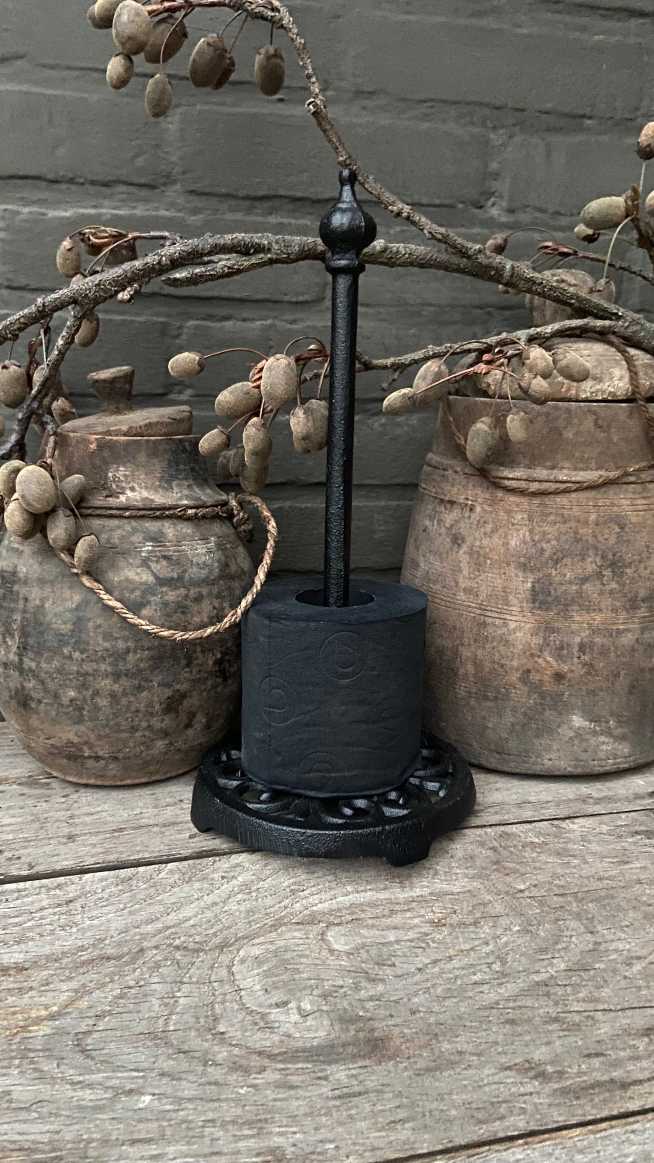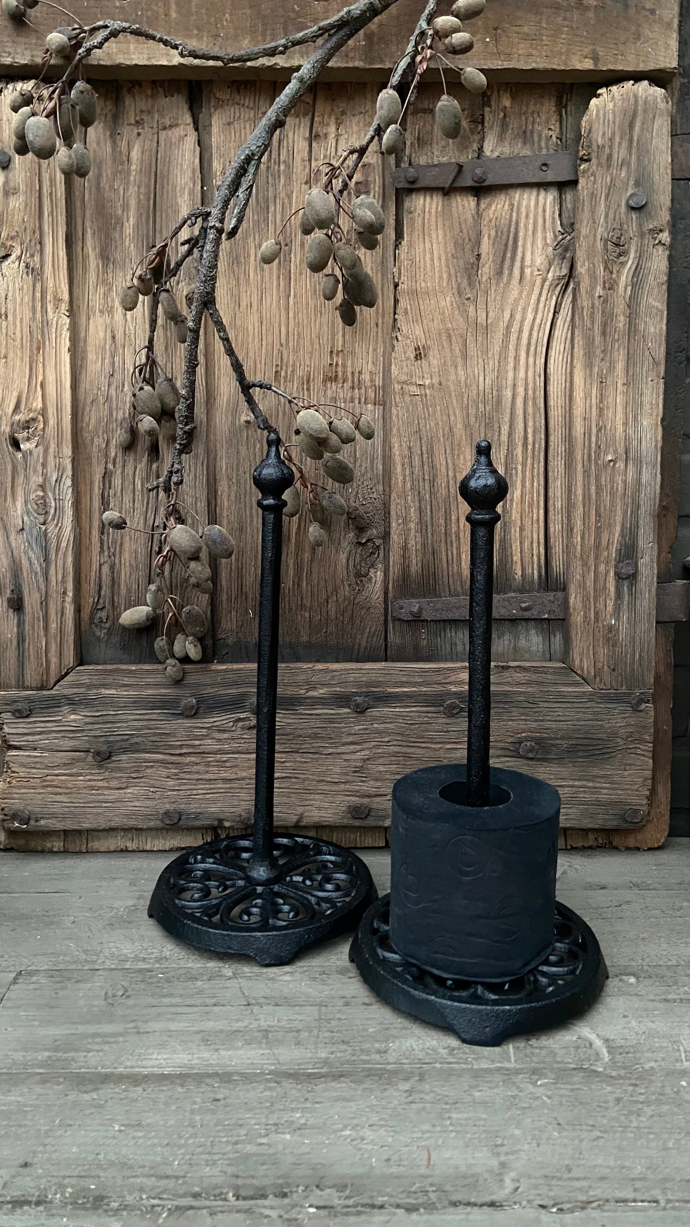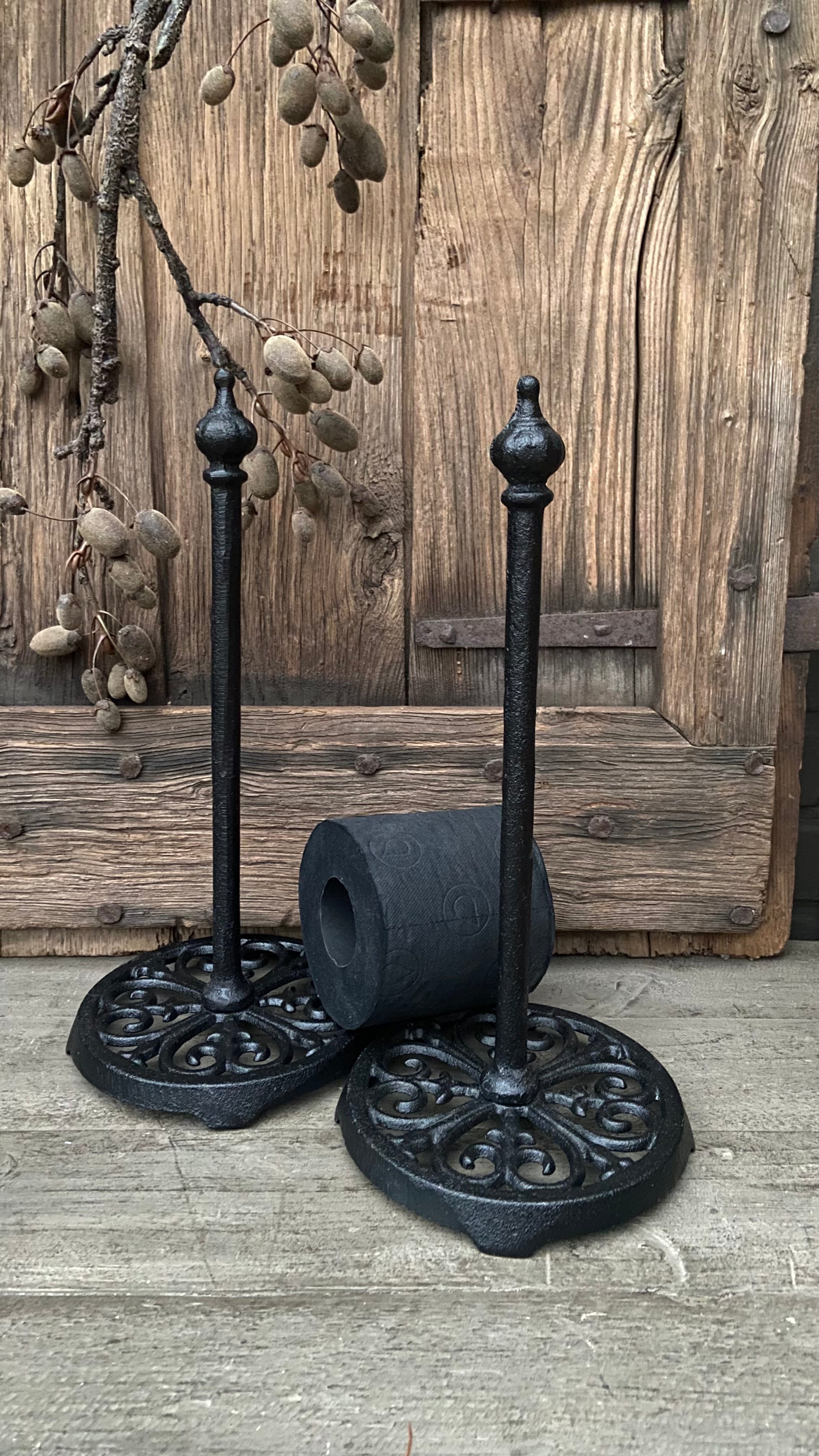 - Ce joli support est fabriqué en fonte et convient pour ranger des essuie-tout ou du papier toilette.