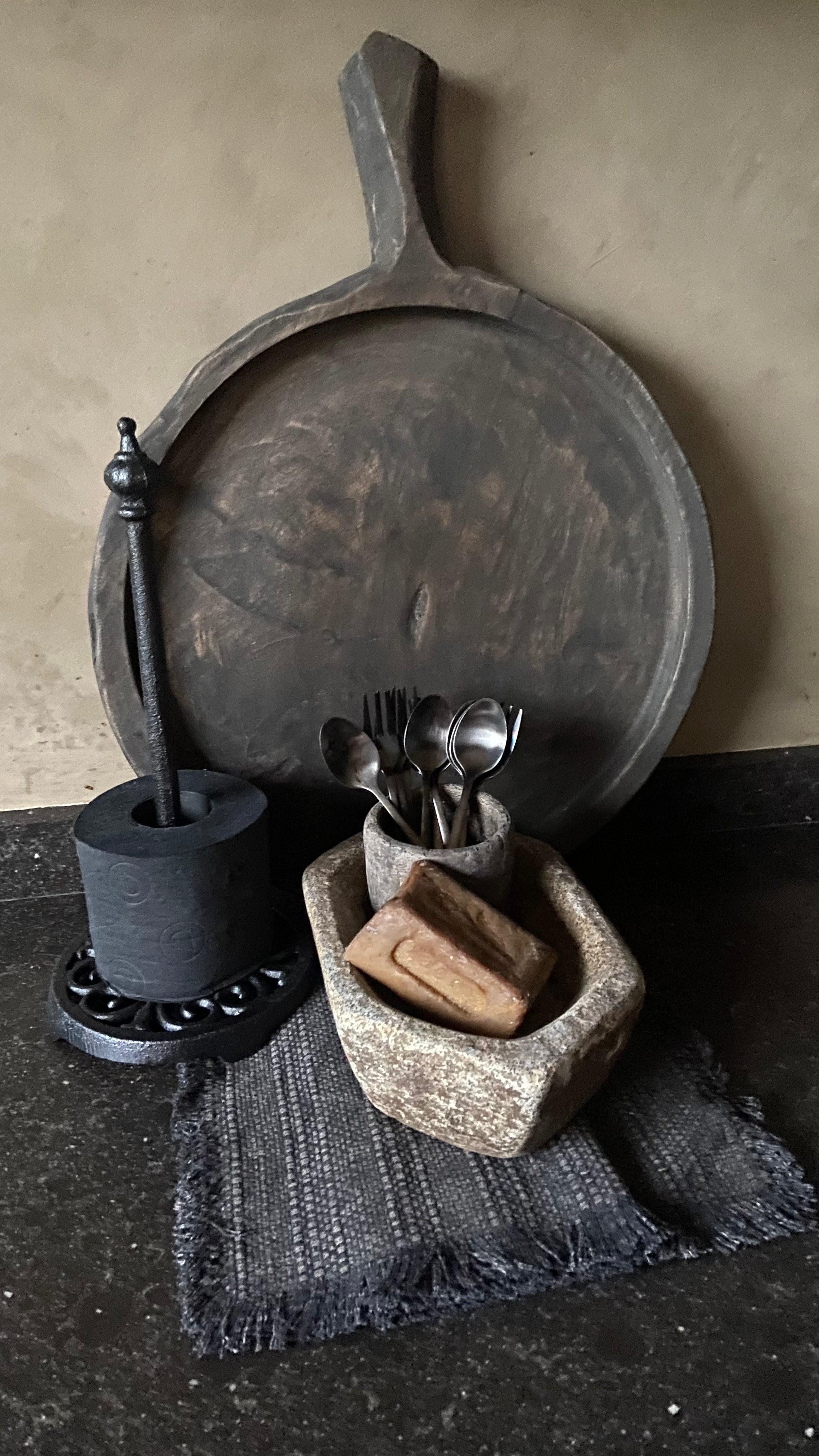 Porte-rouleau de papier toilette/de cuisine en fonte noire