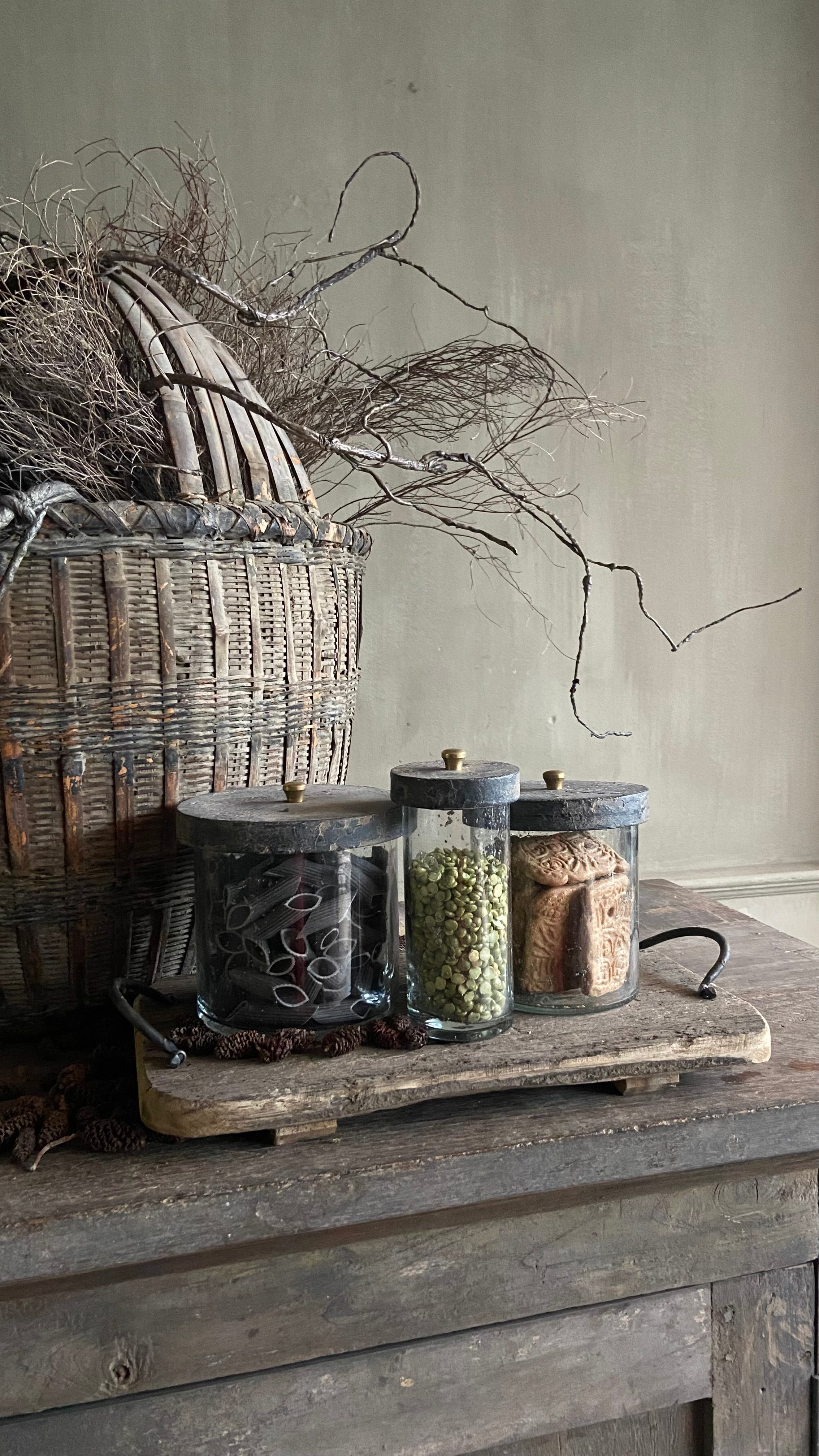 Aspect antique : Le pot de rangement en verre dégage un look classique et antique, ce qui en fait un élément décoratif frappant dans n'importe quelle pièce. Le verre a été subtilement vieilli pour créer une sensation authentique, ce qui en fait un choix parfait pour les intérieurs traditionnels et campagnards.