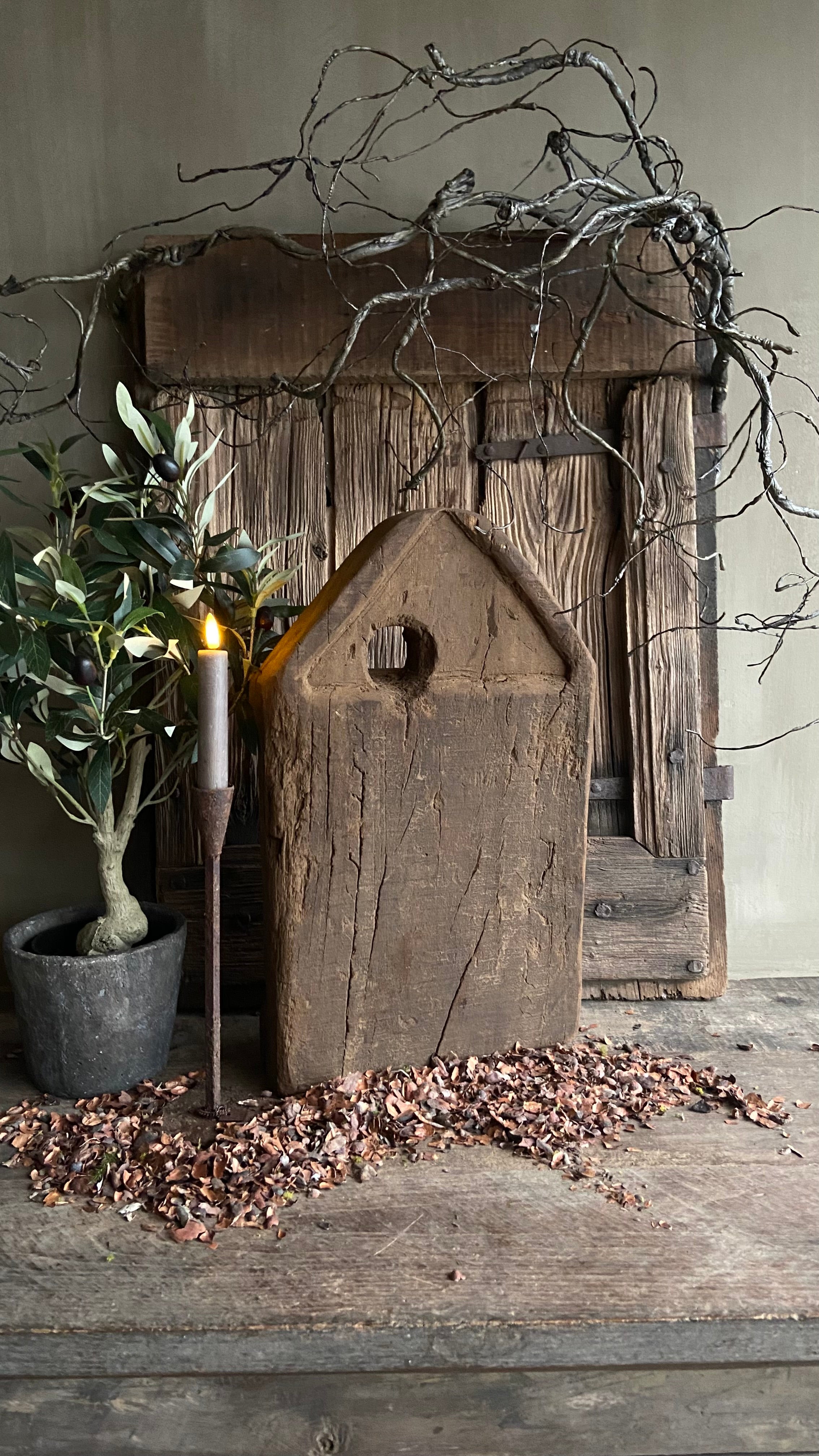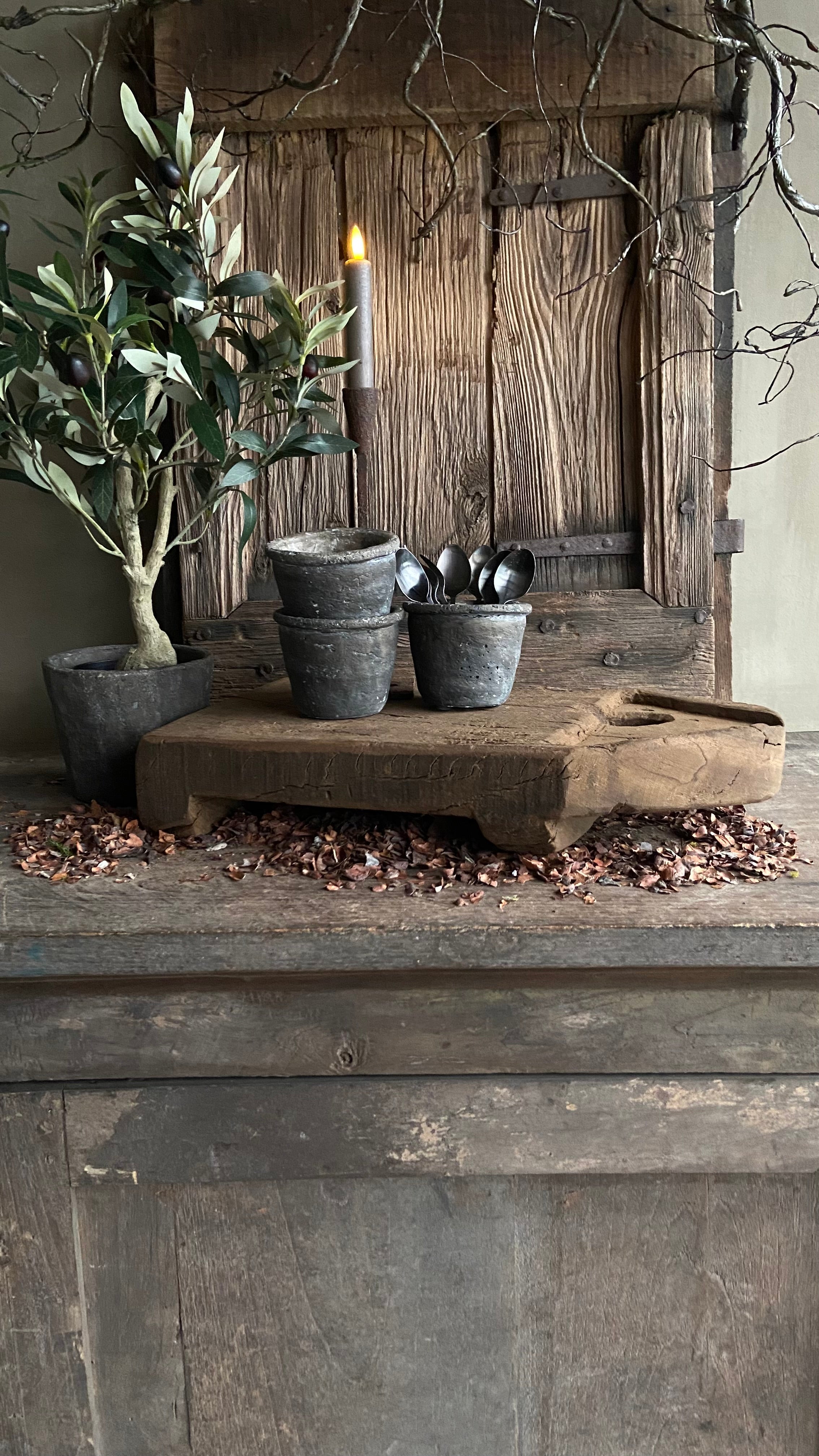 - De plank is handgemaakt en heeft een bruin doorleefd patina
