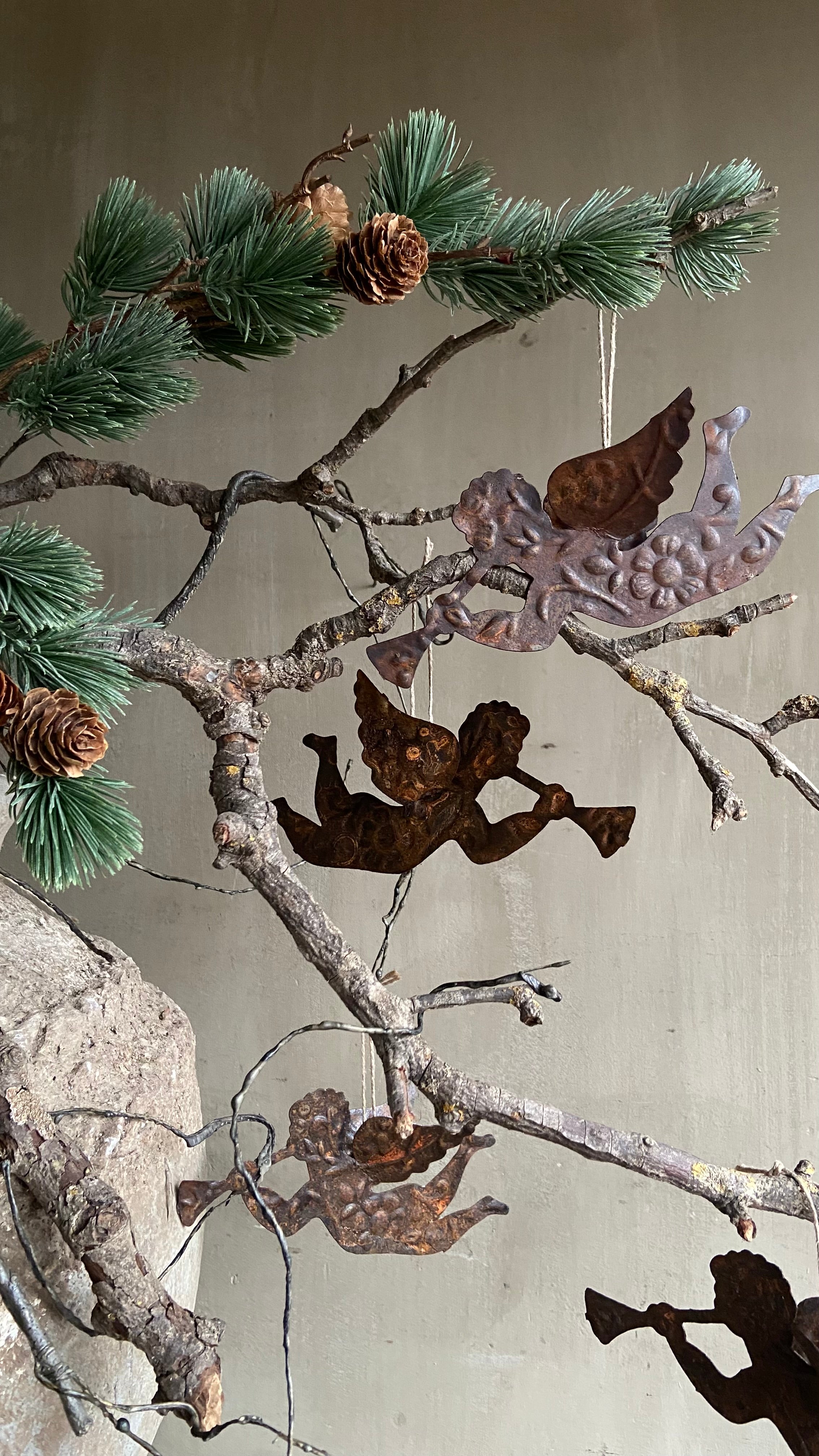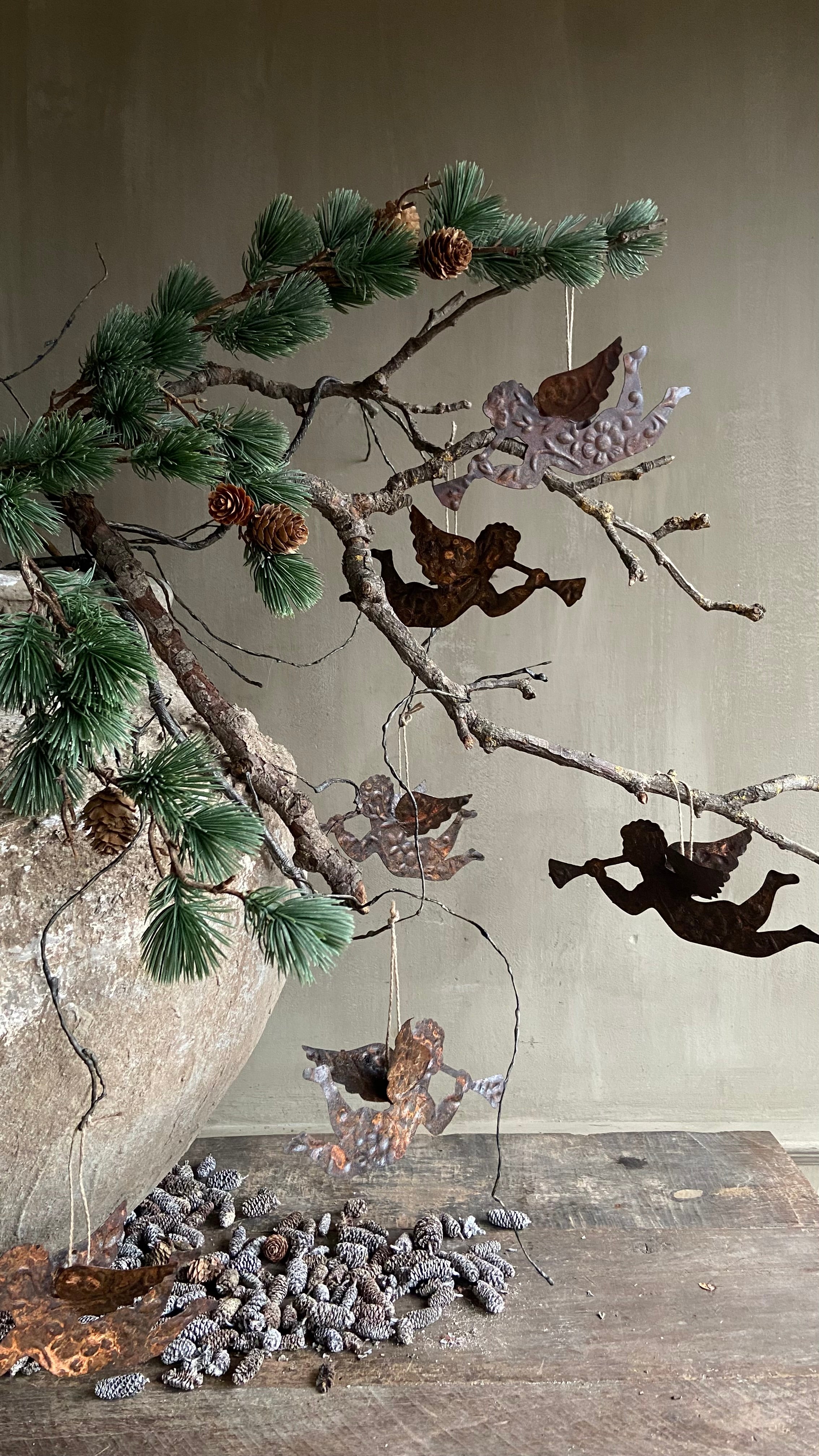 Deze metalen roest engel past helemaal bij een sobere en landelijke kerststijl.