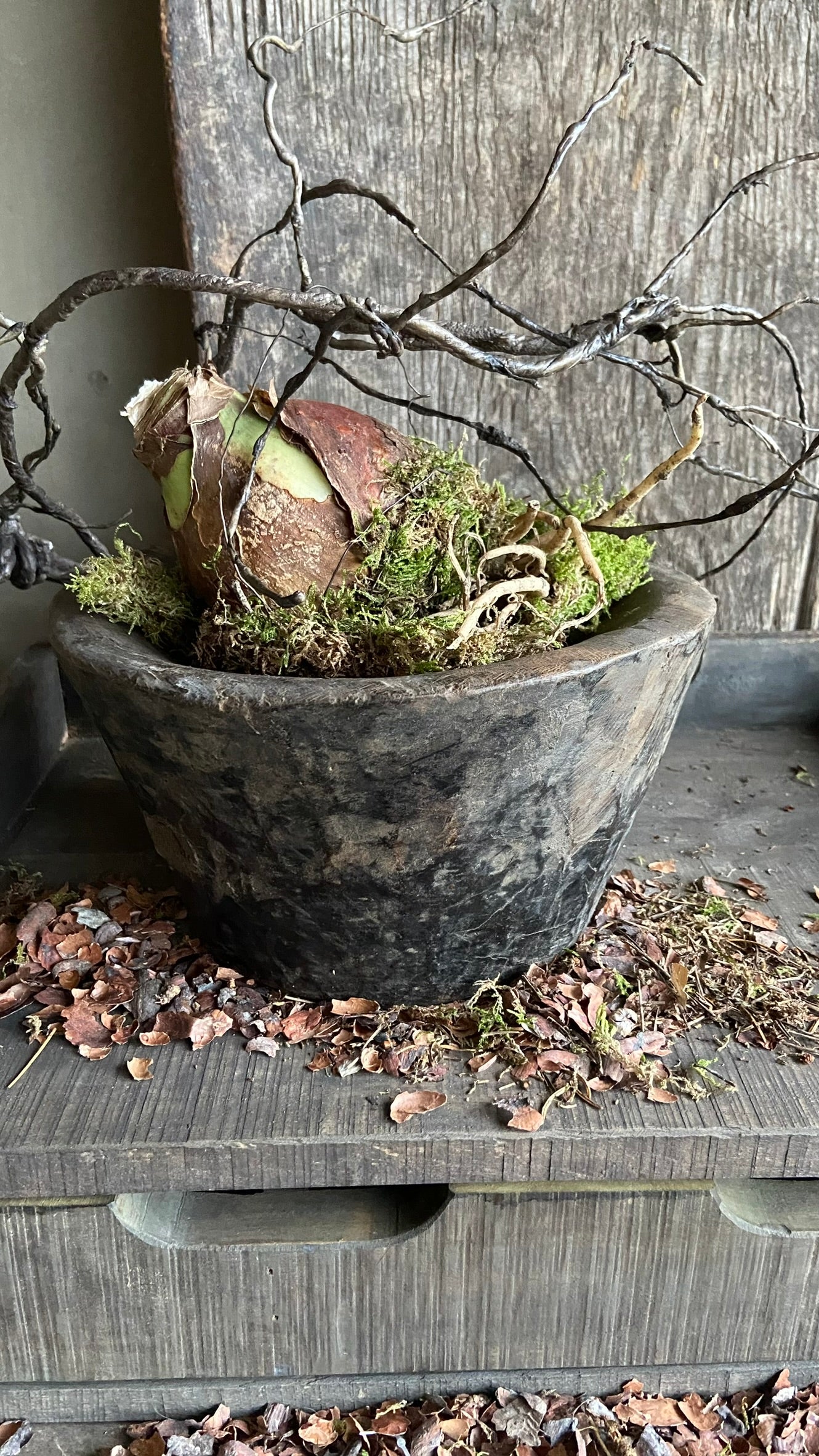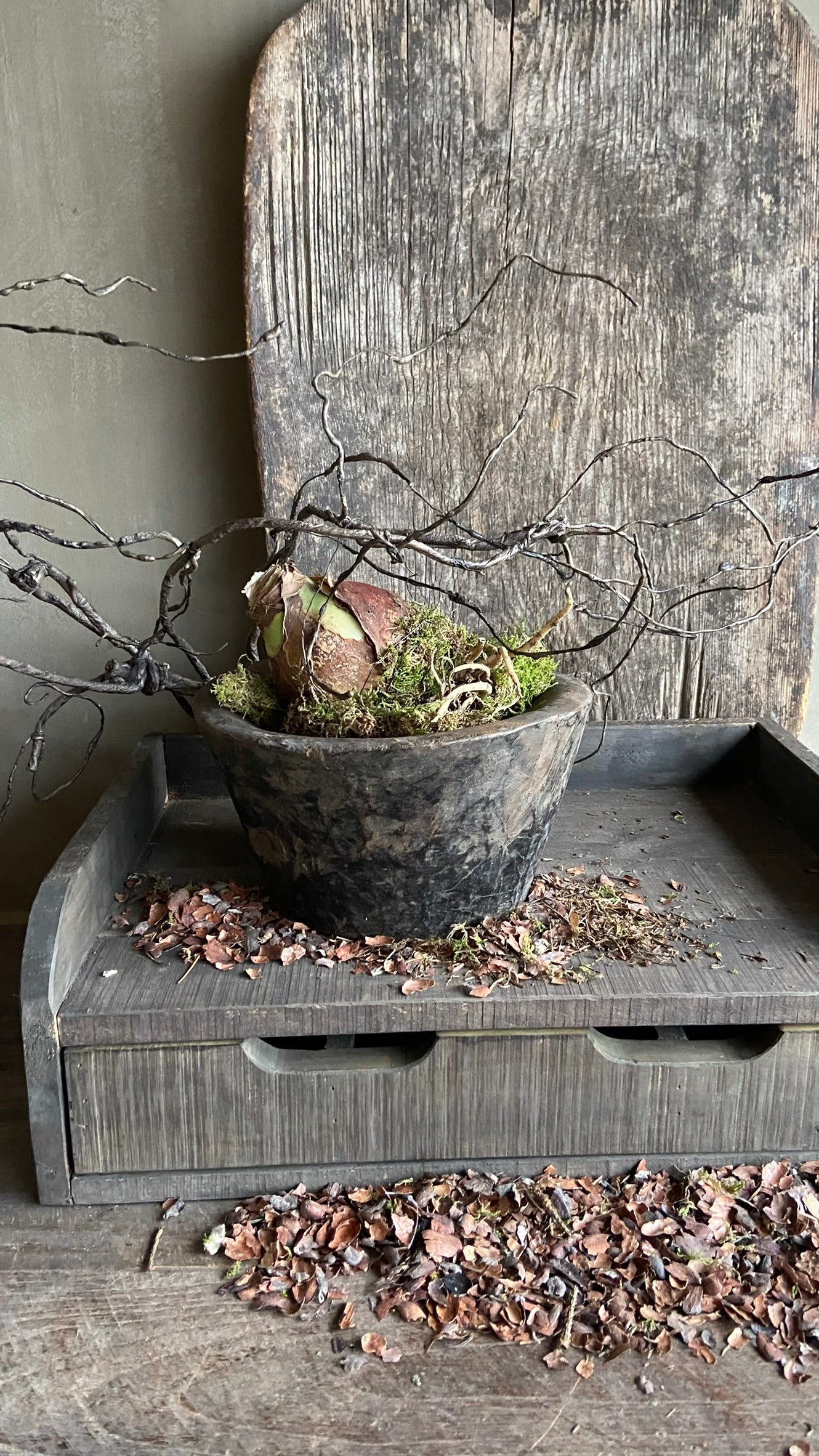 In het voorjaar is de vijzel sfeervol te vullen met wat groenwerk, mos of een bolletje. Ook kun je de vijzel opvullen met decoratieschors en er een kaars in branden voor een warme sfeer. Mooi op een sidetable, dressoir, in een open kast of op tafel.