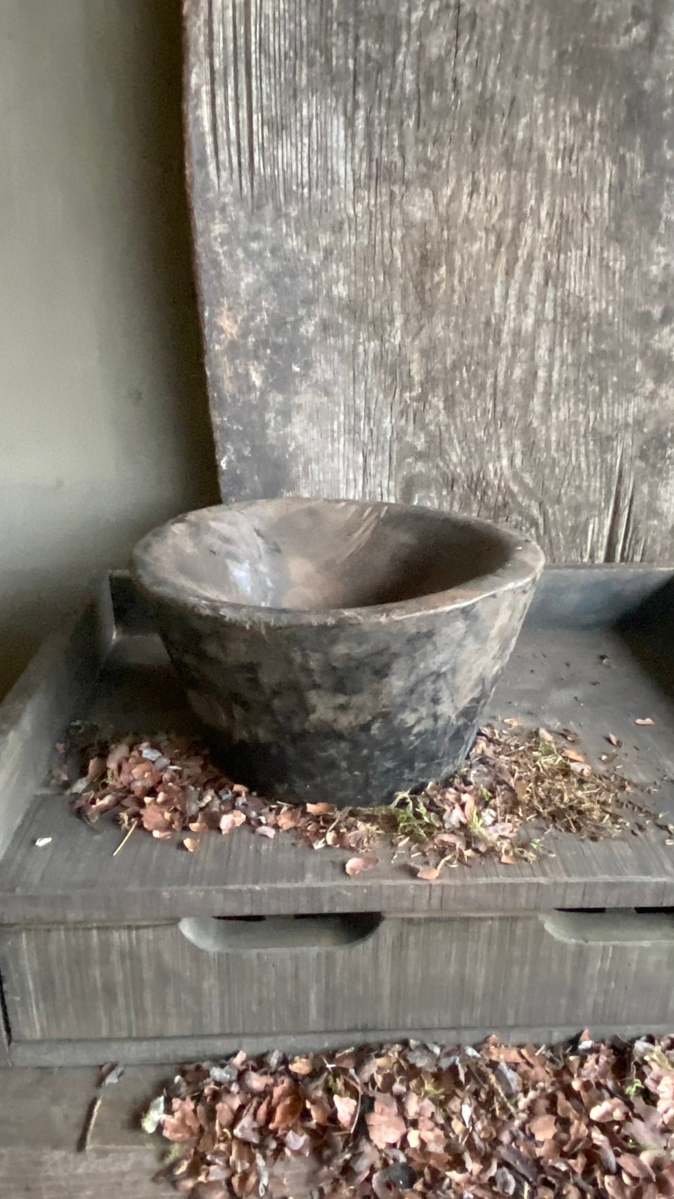 Houten Vijzel | Verweerde Bruin Grijze Tint