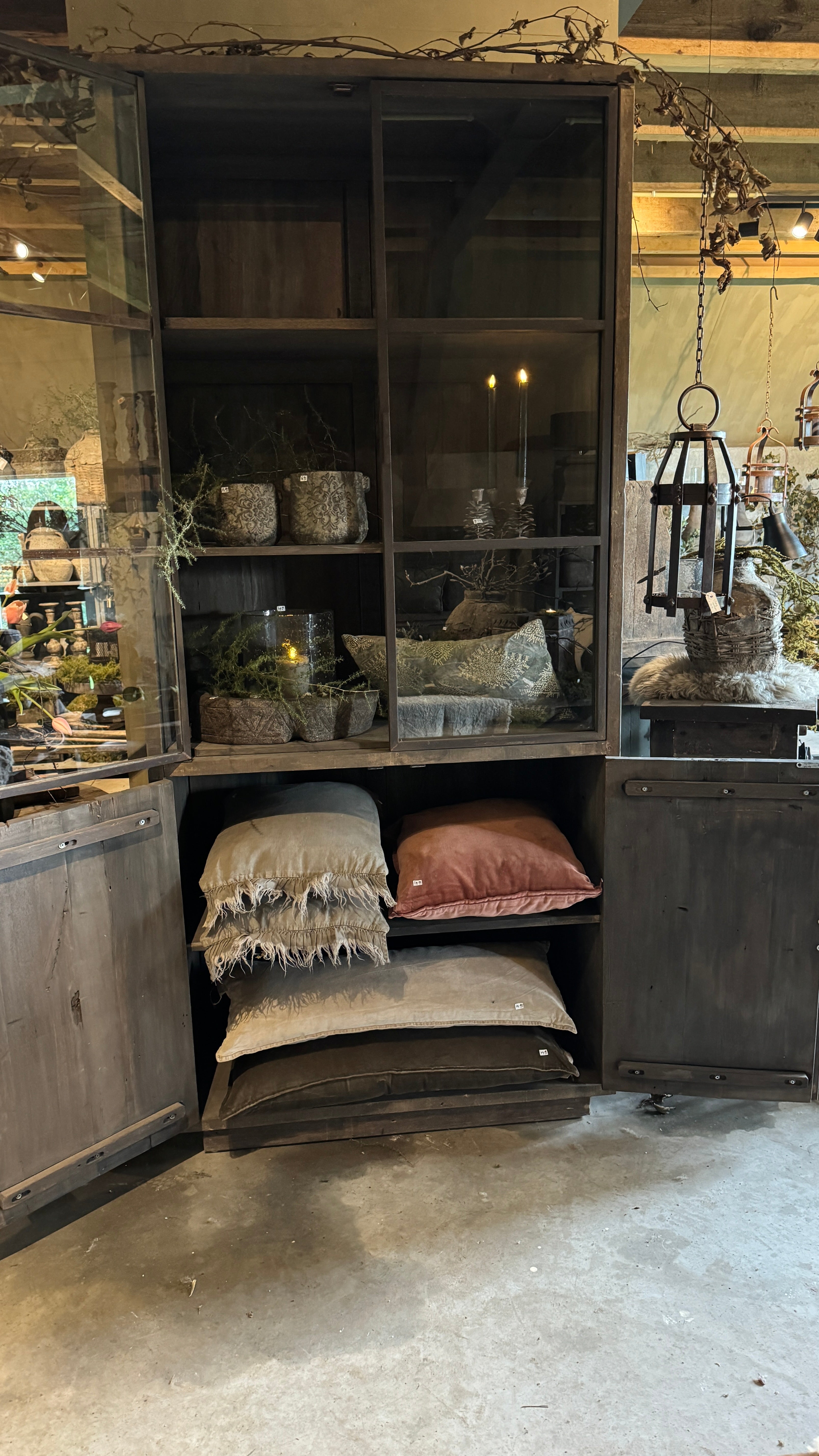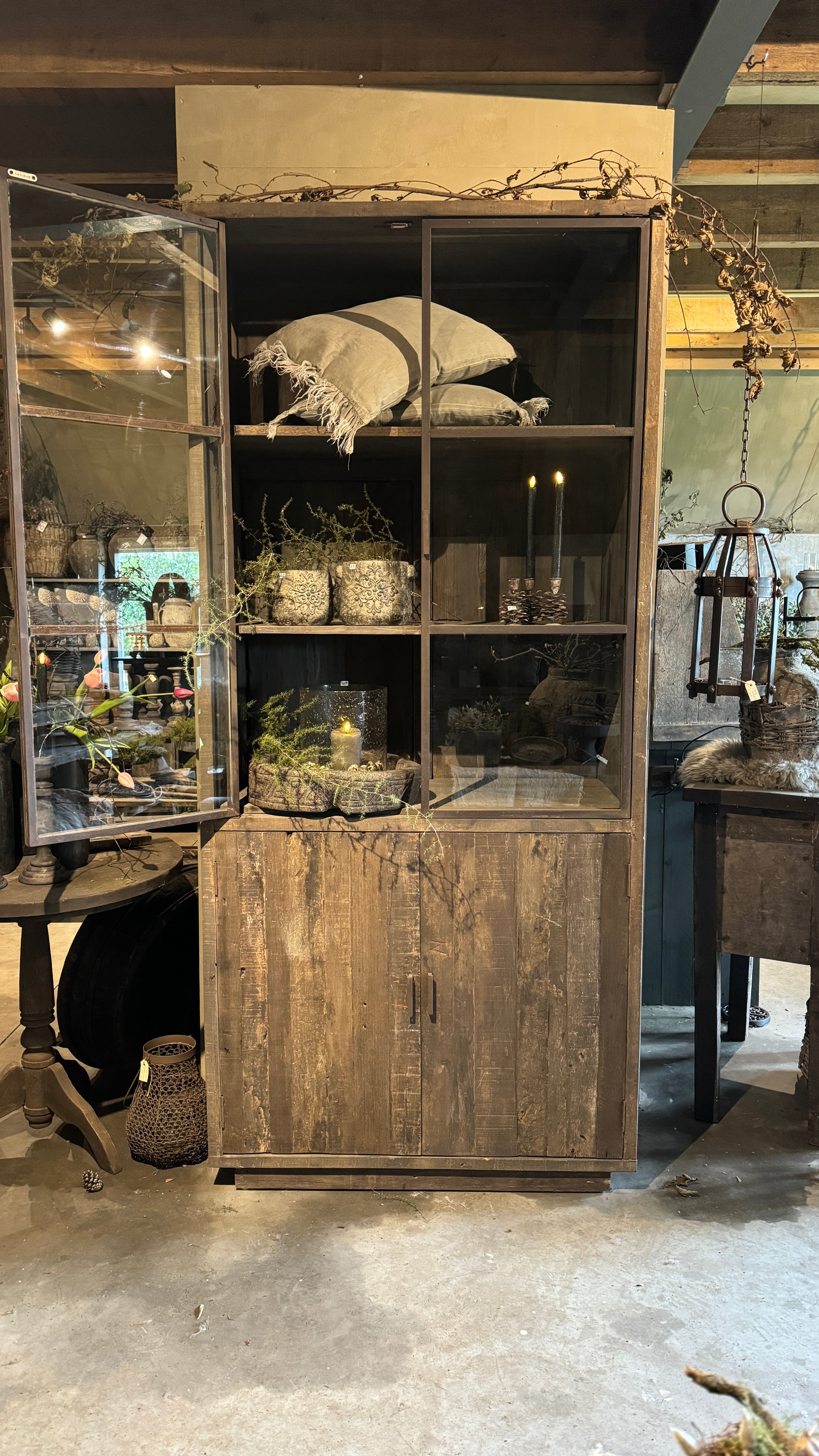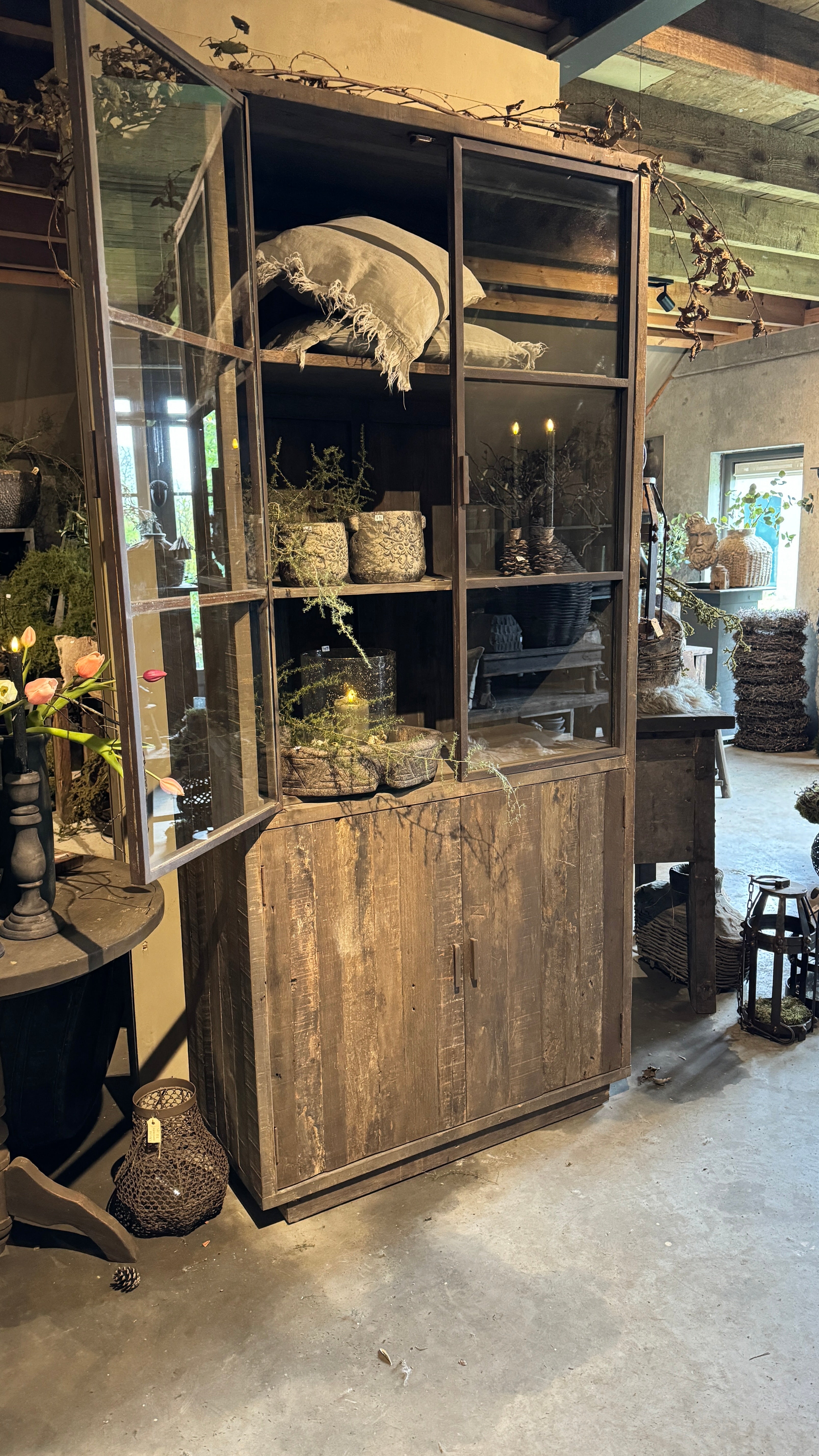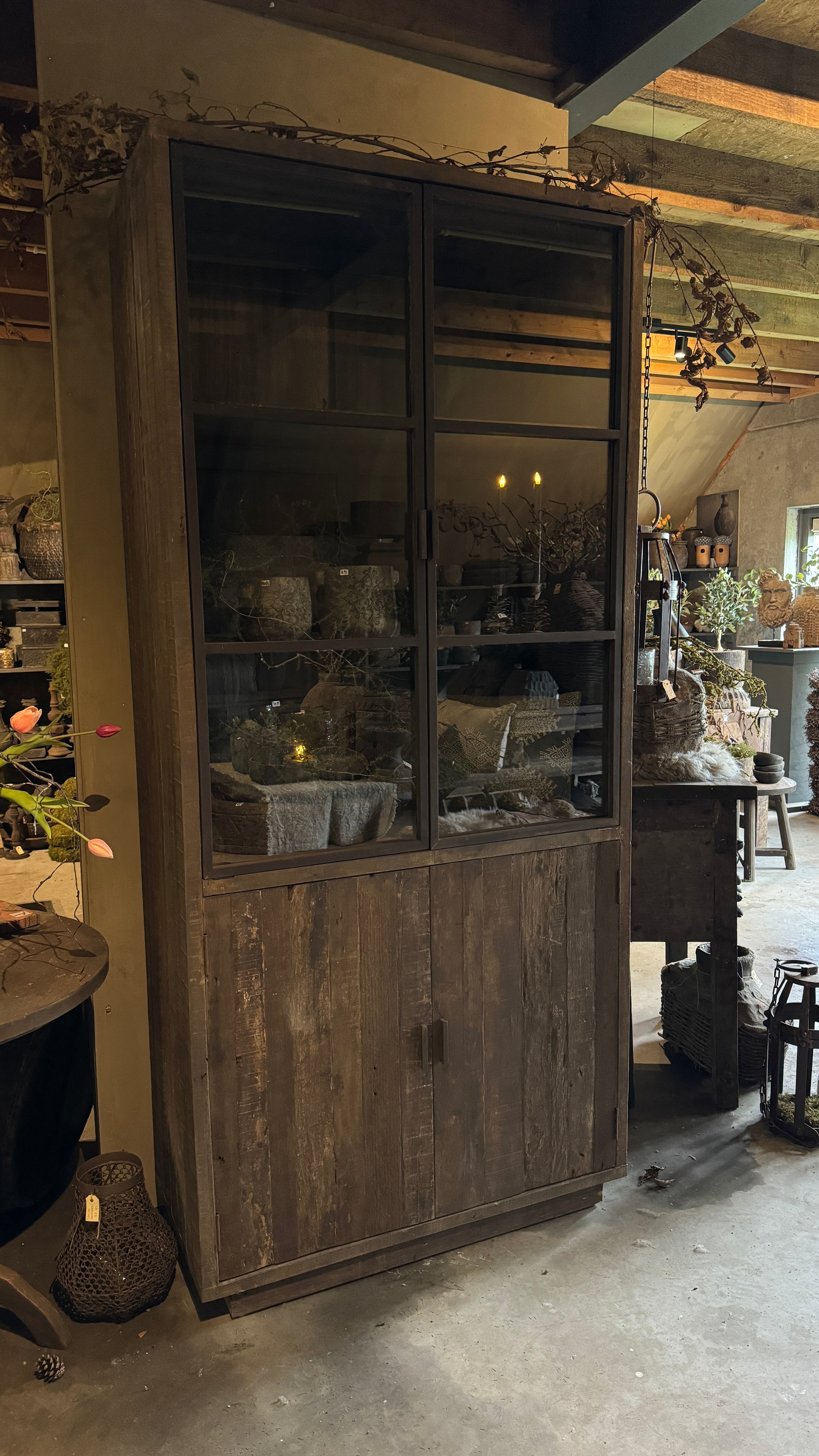 Con un'altezza di 221 cm, una larghezza di 100 cm e una profondità di 50 cm, il mobile non è solo un vero e proprio colpo d'occhio, ma anche una pratica soluzione di contenimento. La credenza è caratterizzata da una combinazione di spazi aperti e chiusi, ed è ideale per esporre bellissimi accessori per la casa, libri o piante, mentre le ante in acciaio creano una vera atmosfera country. Le porte sono realizzate in acciaio robusto e pesante, che conferisce loro un aspetto robusto e una maggiore durata.