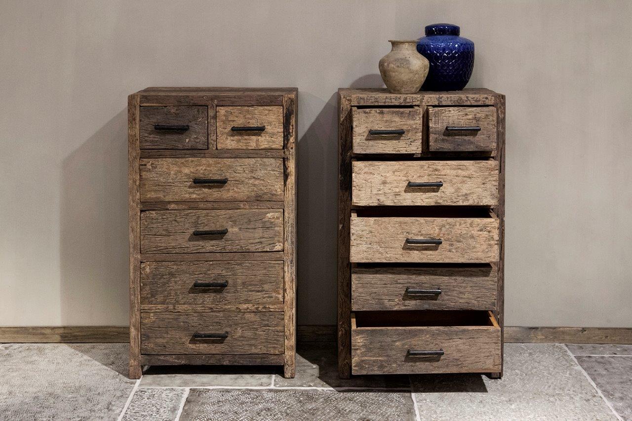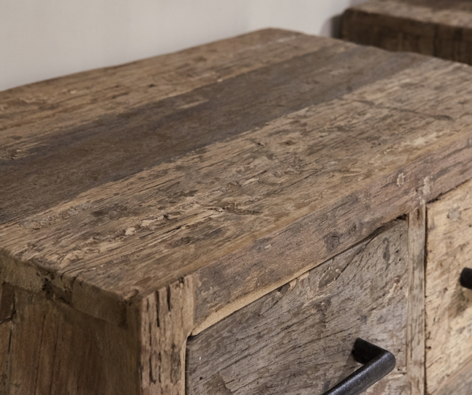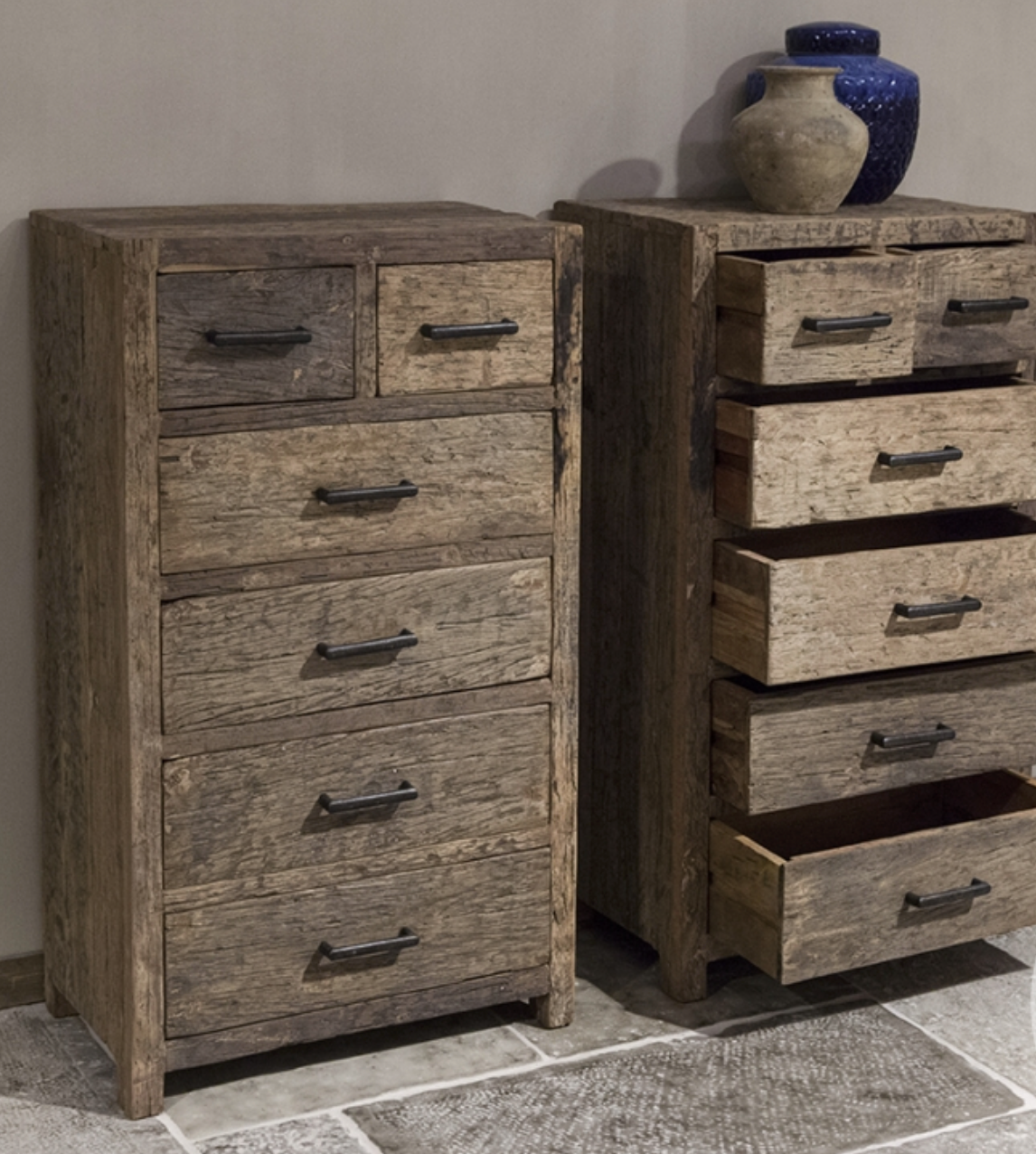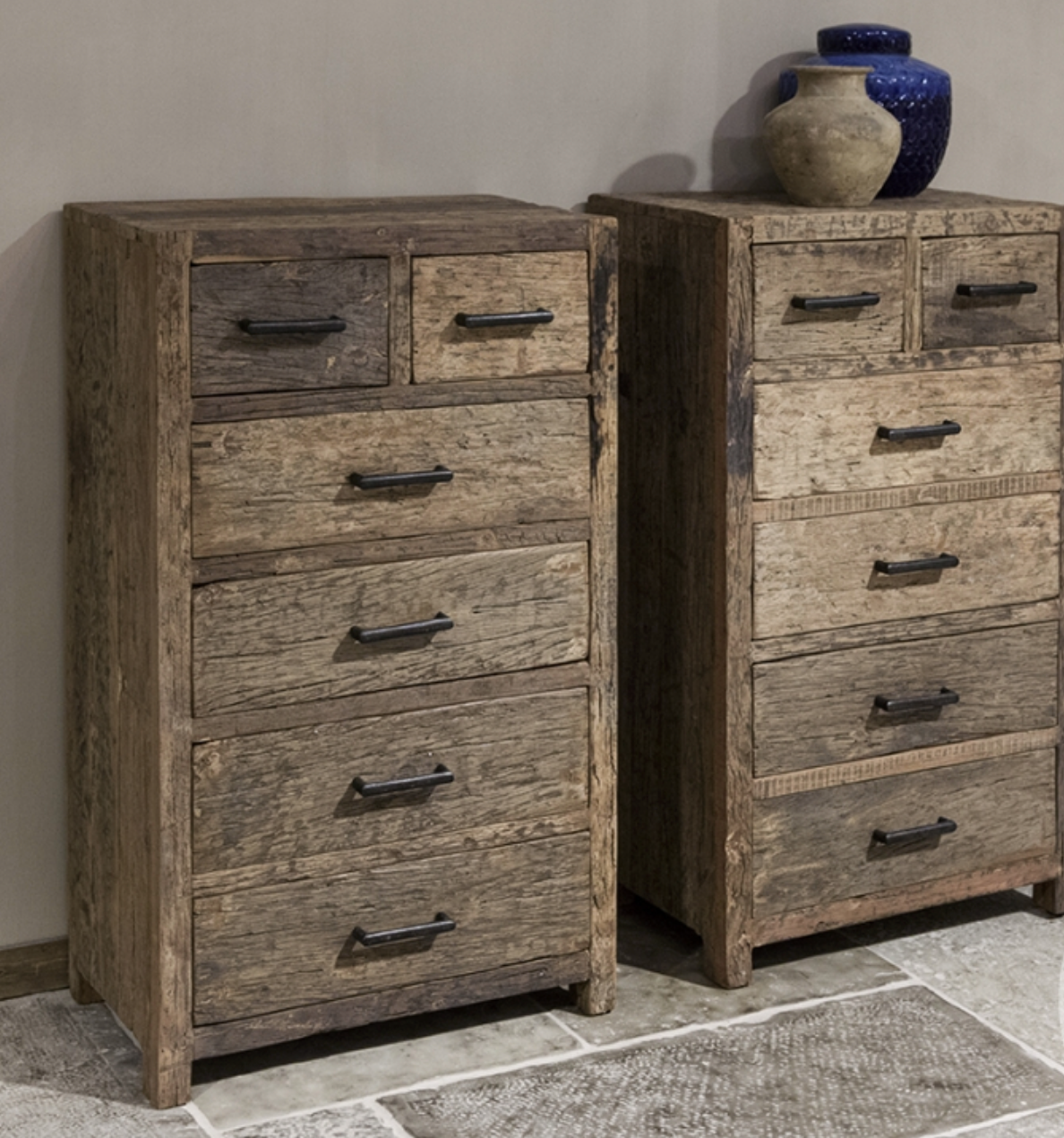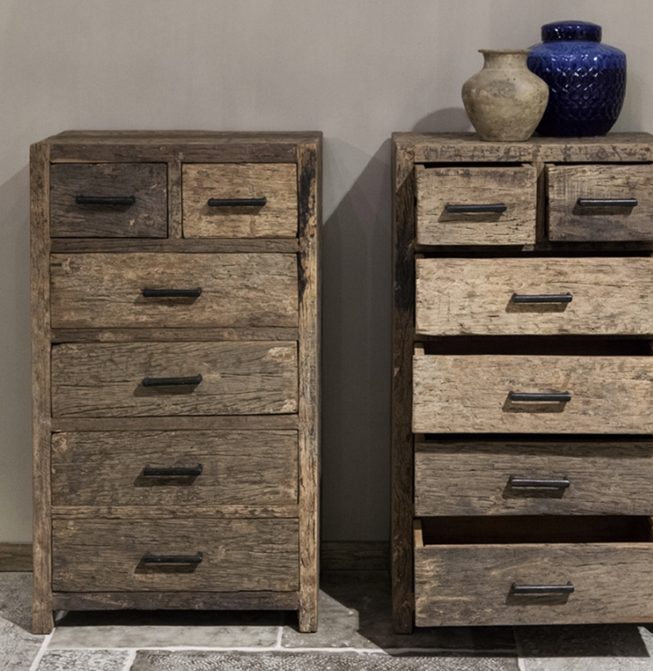 - La cassettiera è realizzata realizzato in legno antico splendidamente invecchiato e dall'aspetto rustico.