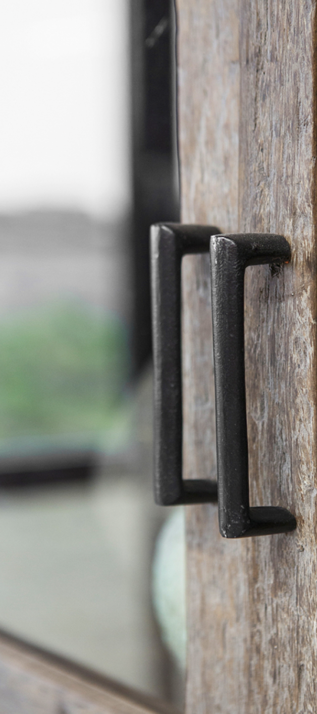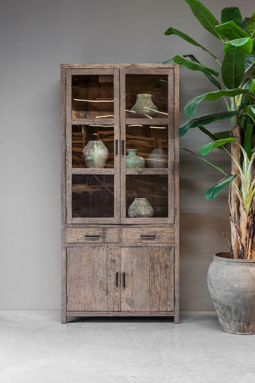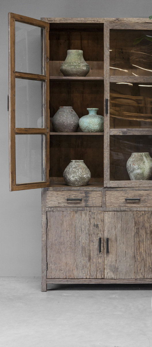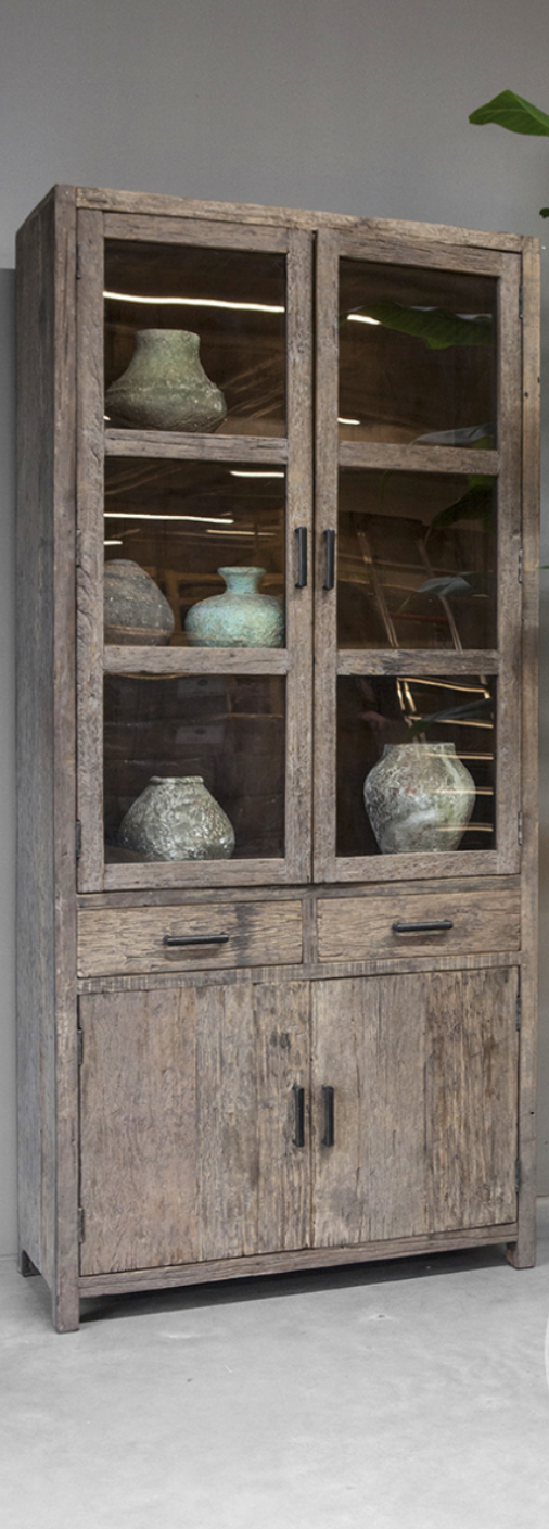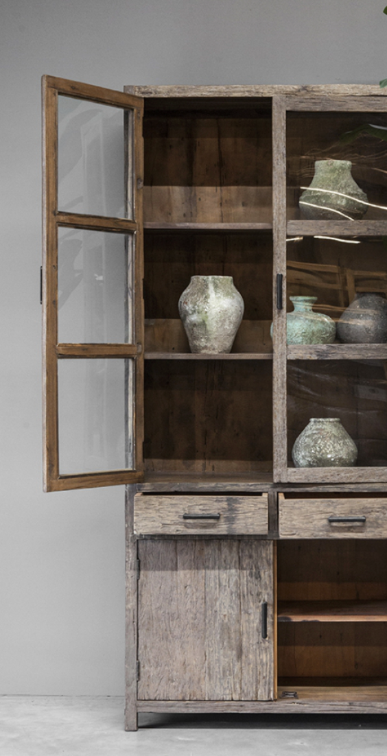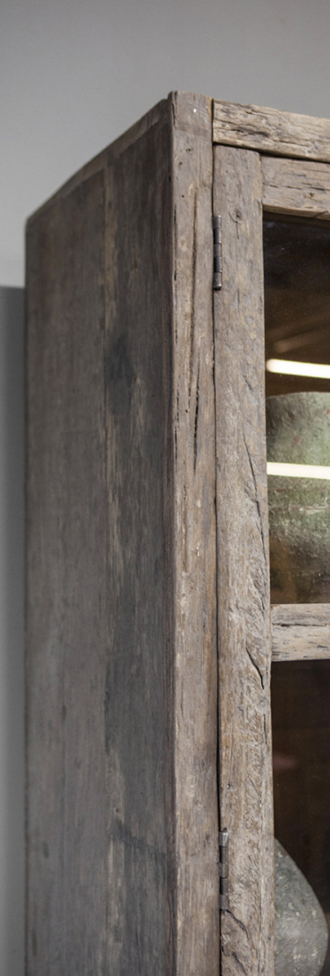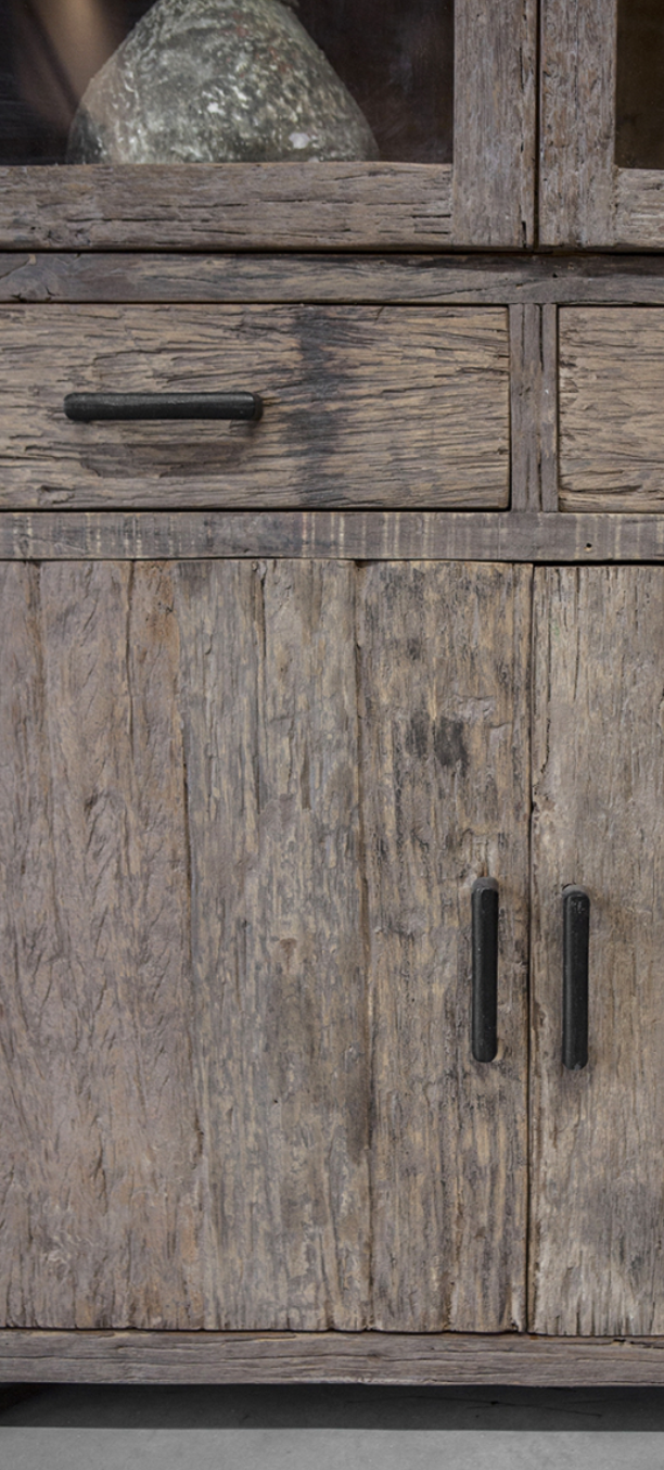 - La vetrina Miami è realizzata in legno antico splendidamente invecchiato e ha un aspetto rustico