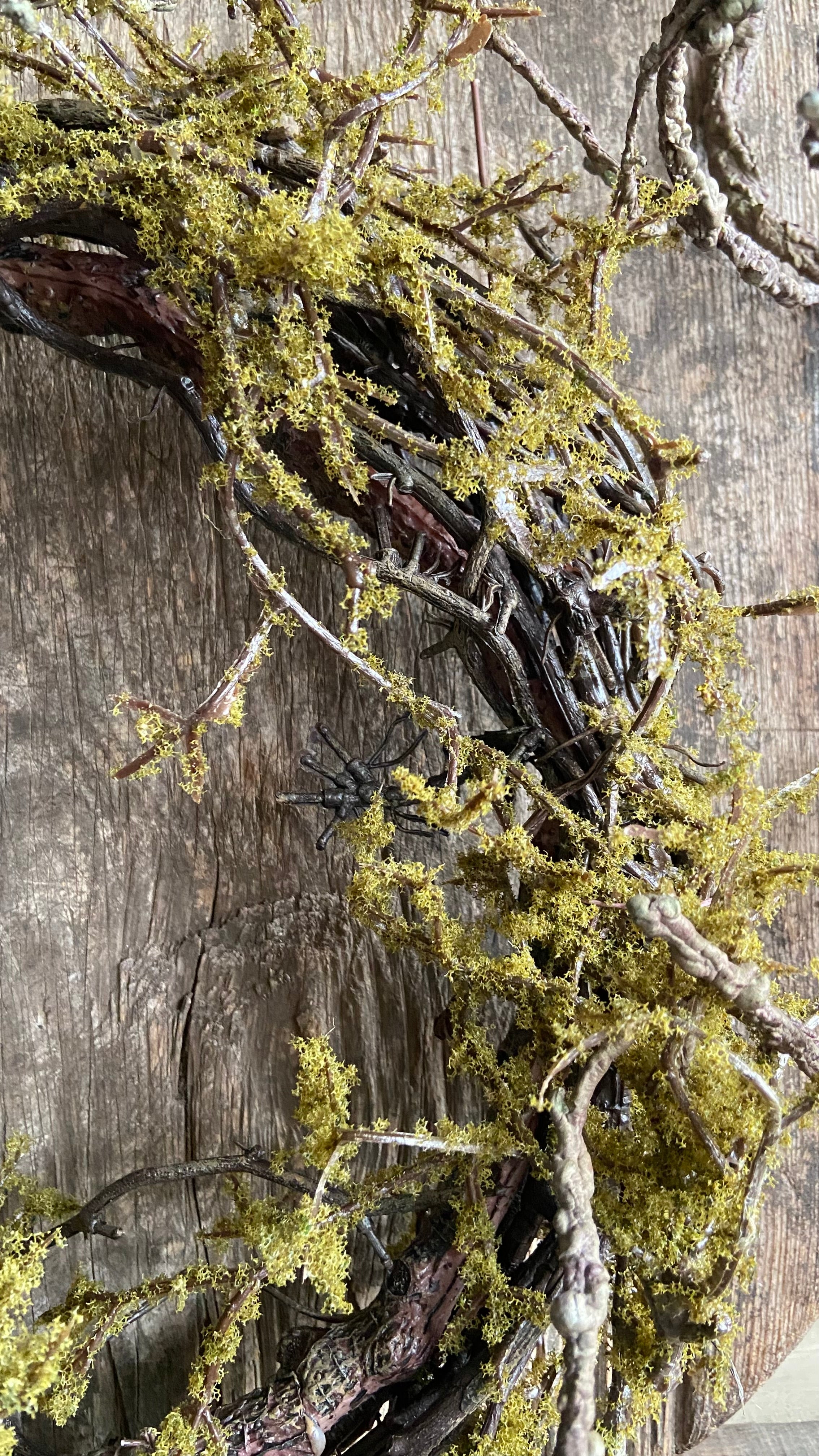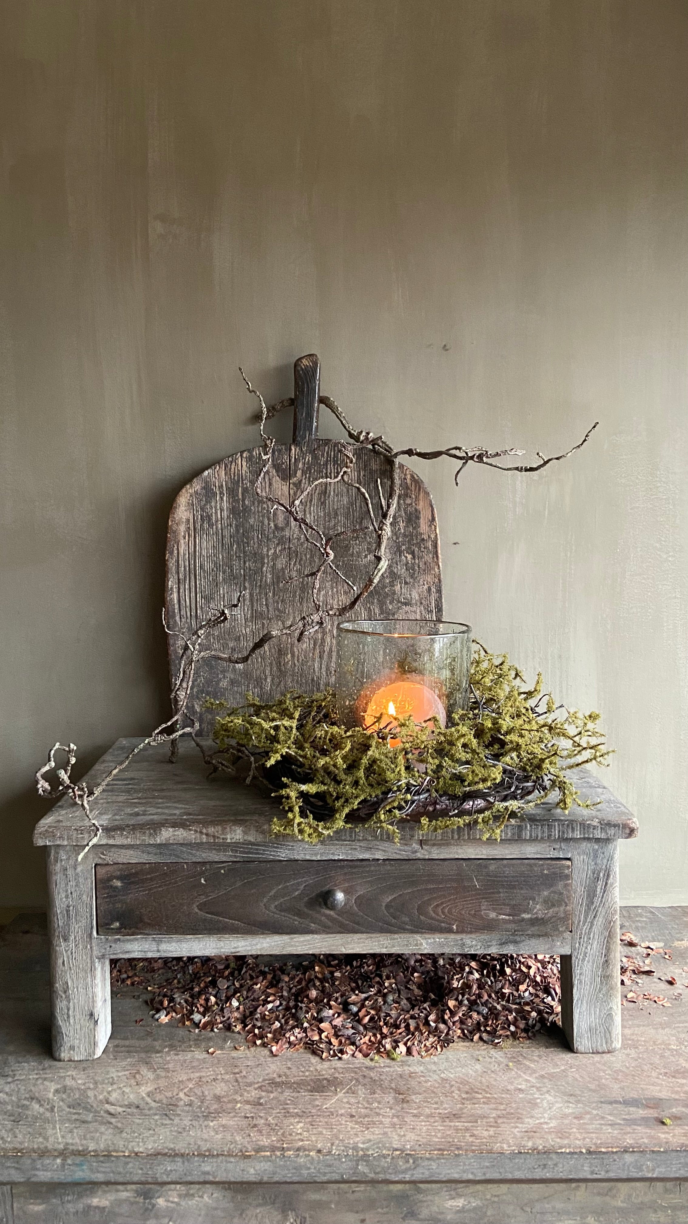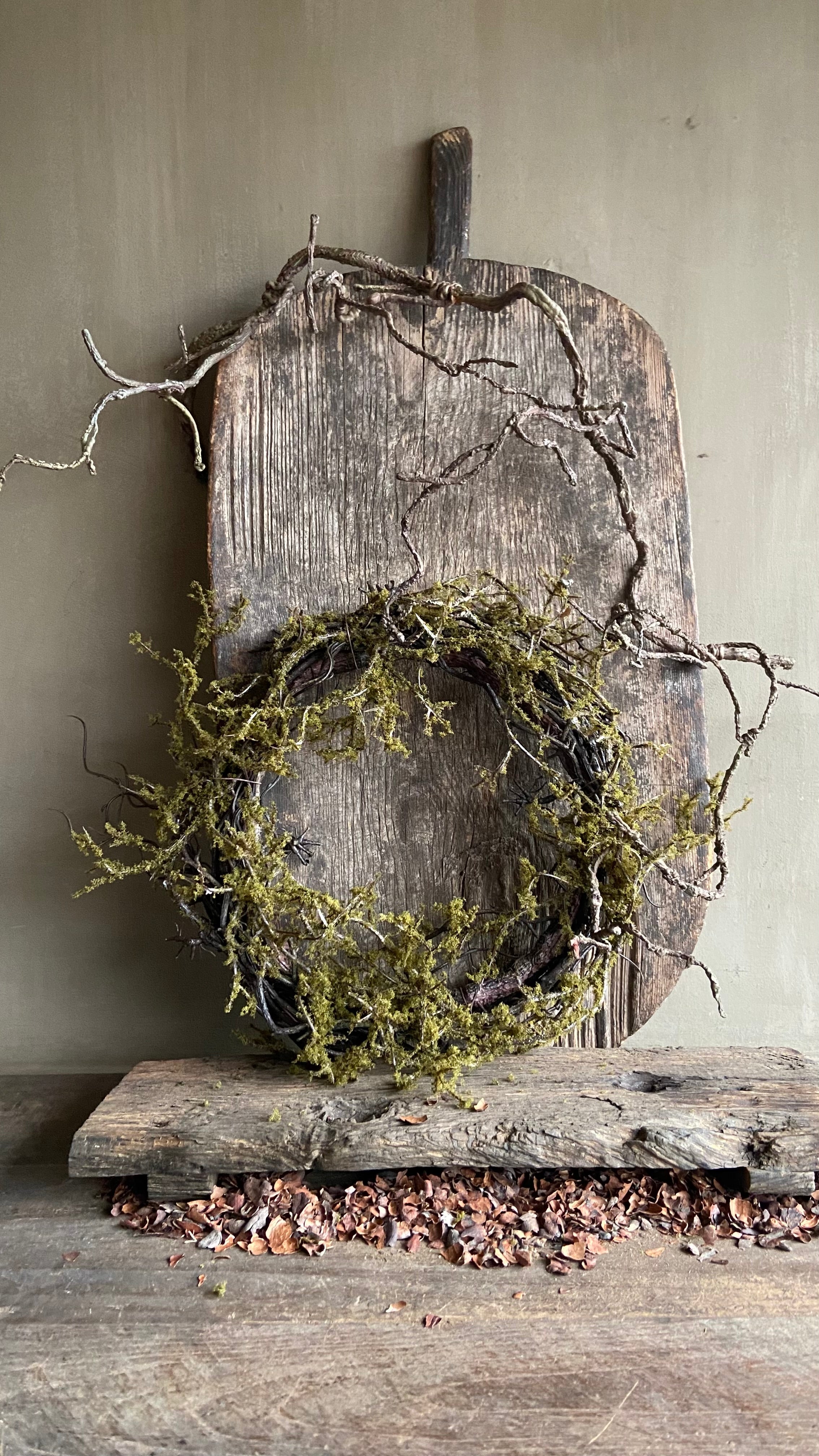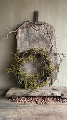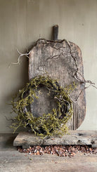 Deze kunst moskrans is gemaakt van groen kunstmos en heeft een natuurlijke uitstraling. Geen twee kransen zijn hetzelfde: vorm en afmetingen kunnen per exemplaar iets verschillen en de krans is bewust niet perfect rond.