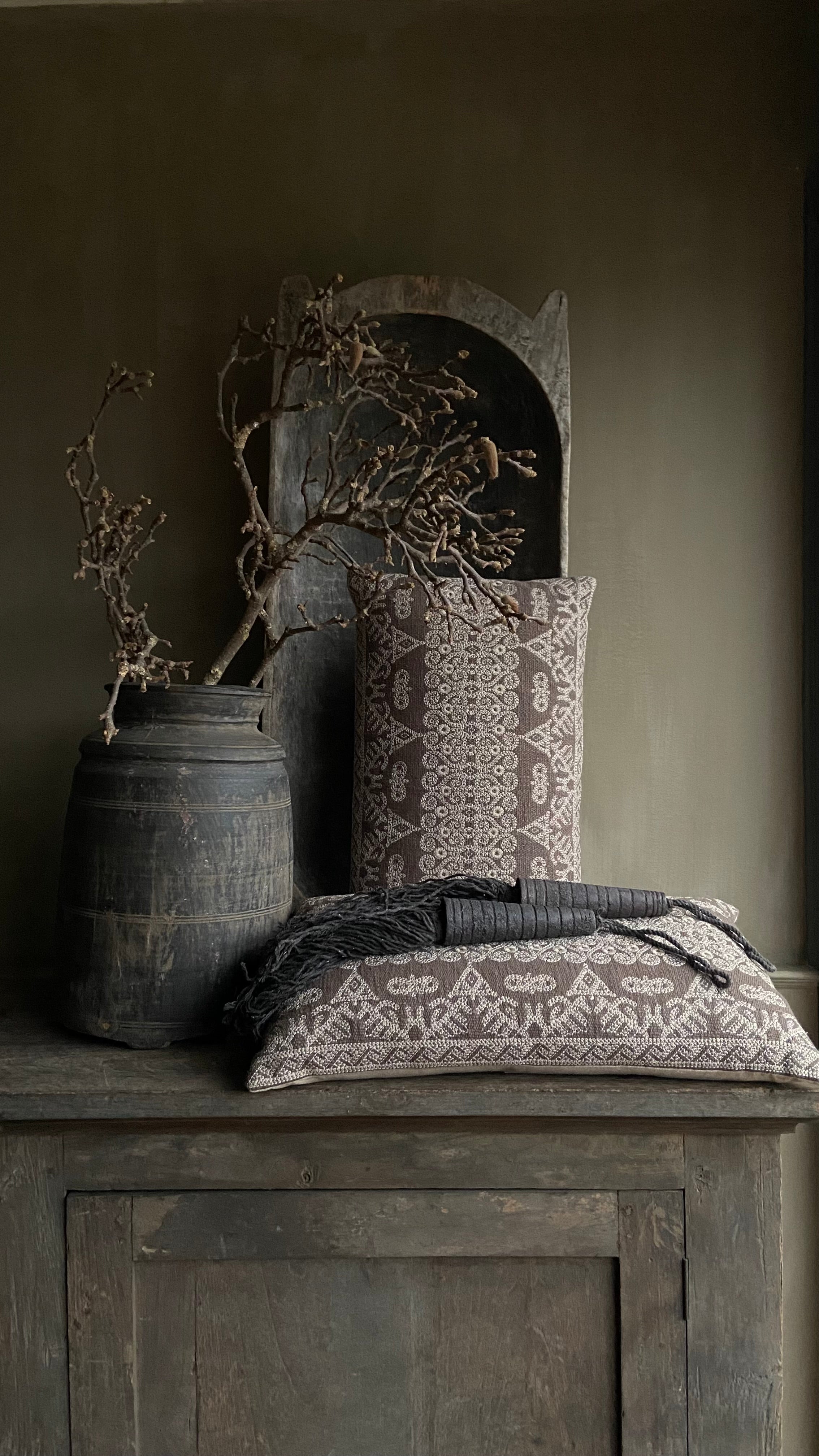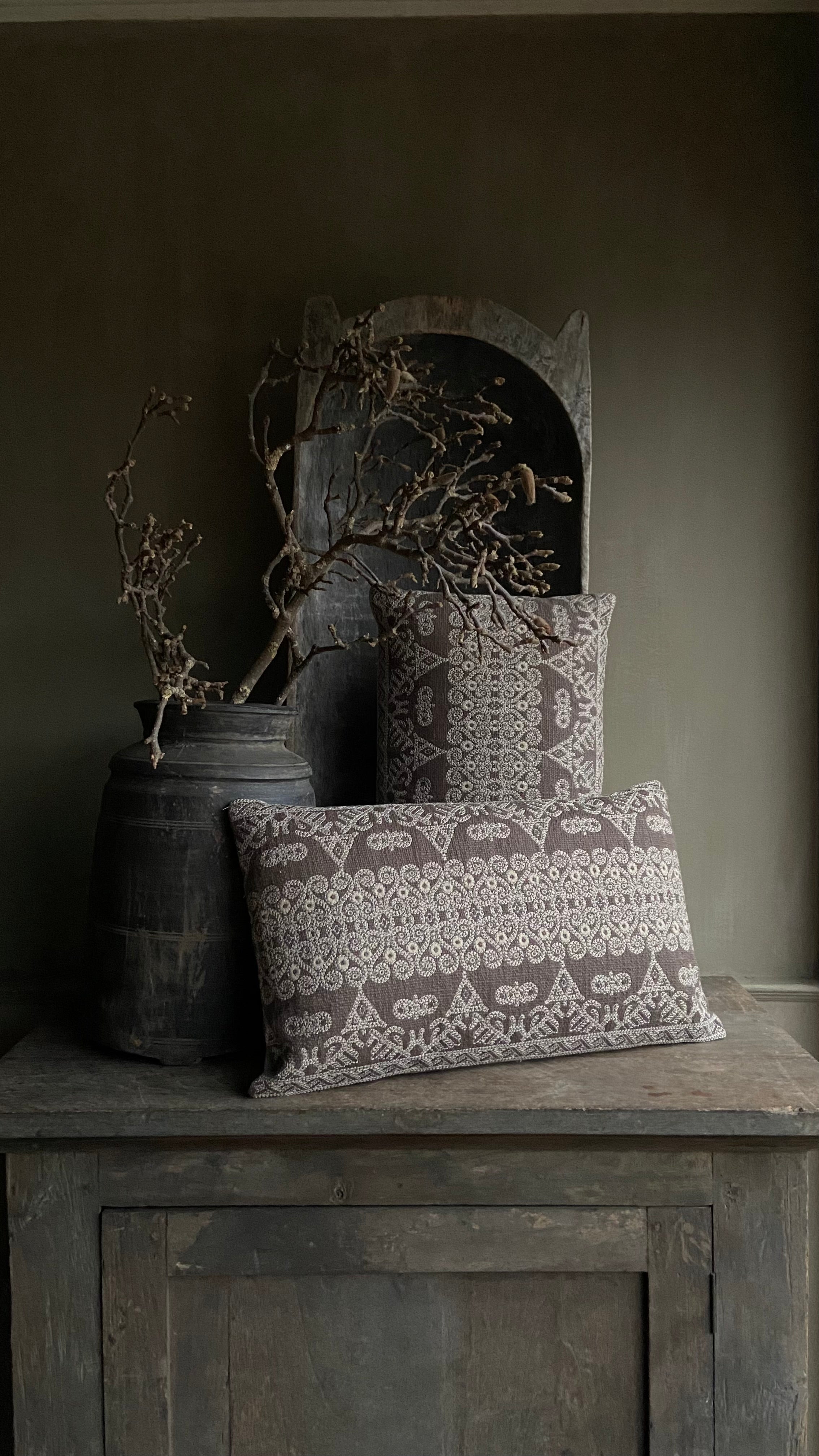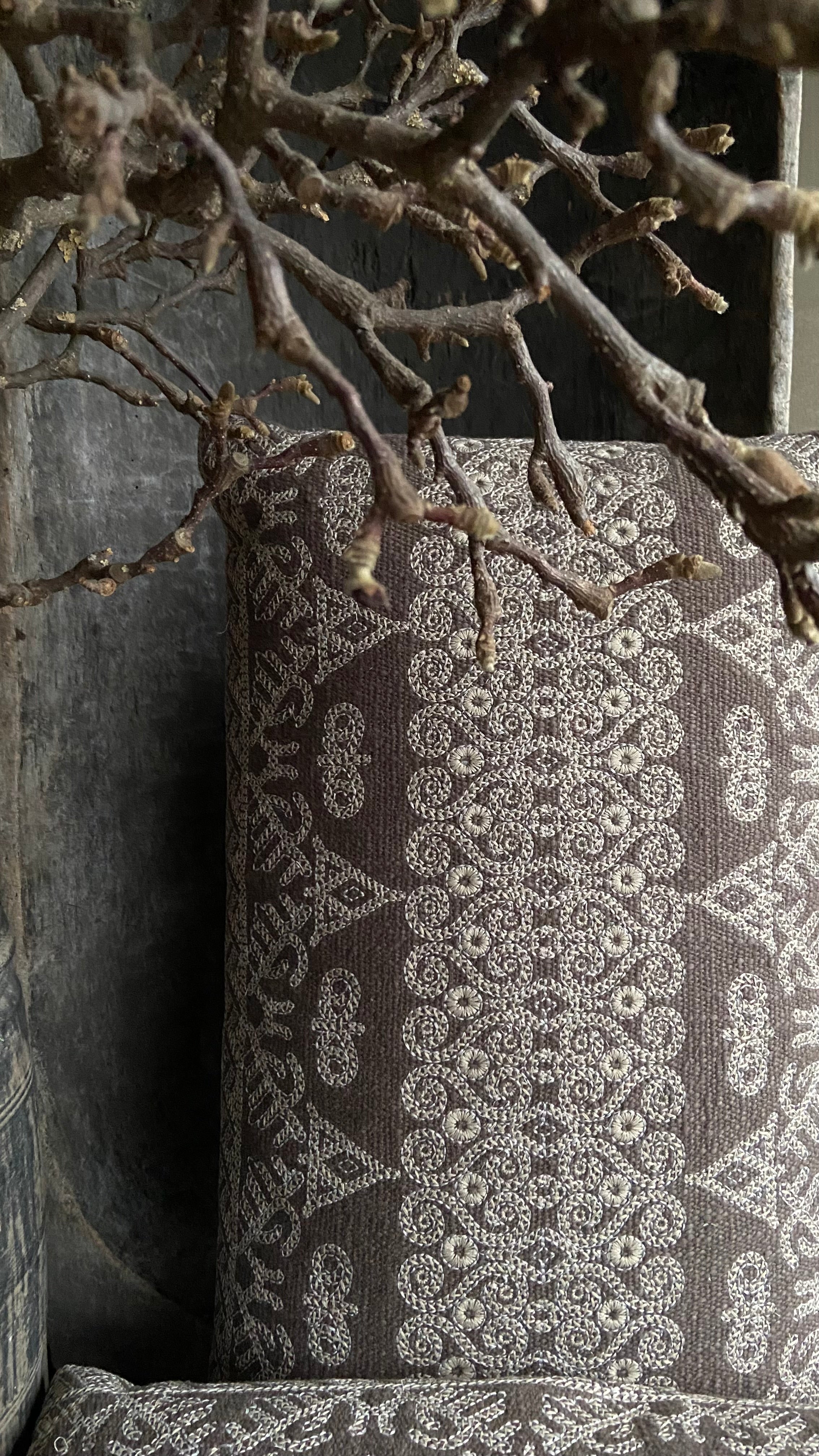 Questa bella baciare eseguito in lino con cotone ha una dura tinta talpa ed è di ottima qualità. La bella motivo ricamato conferisce al cuscino un aspetto elegante e senza tempo, ideale per qualsiasi interno.